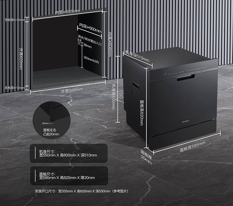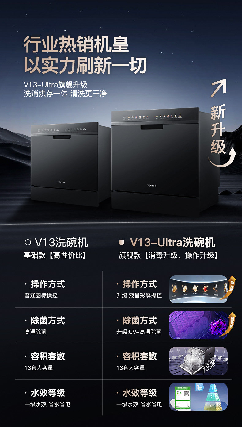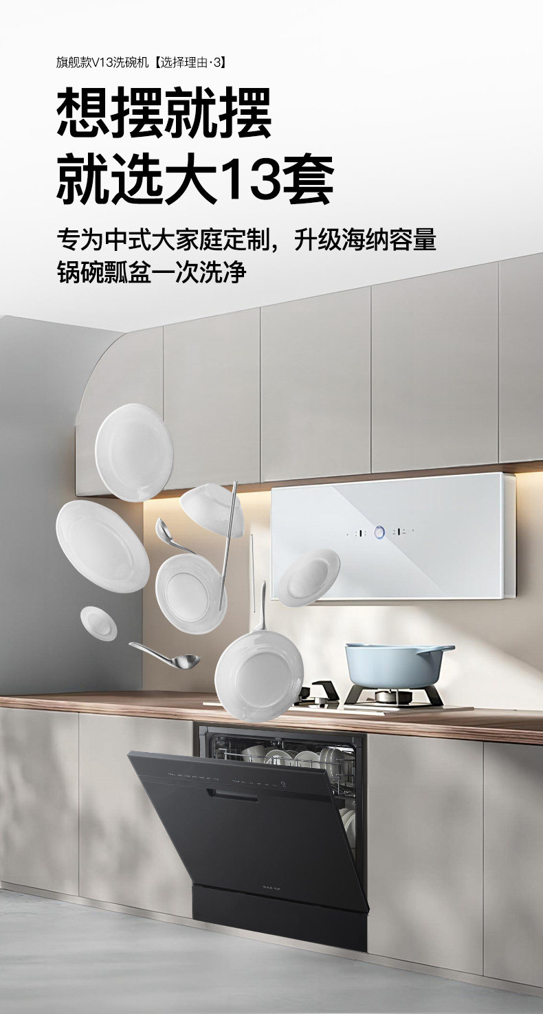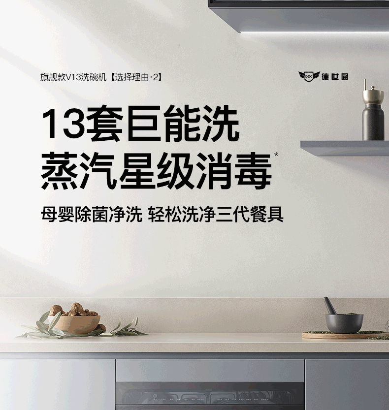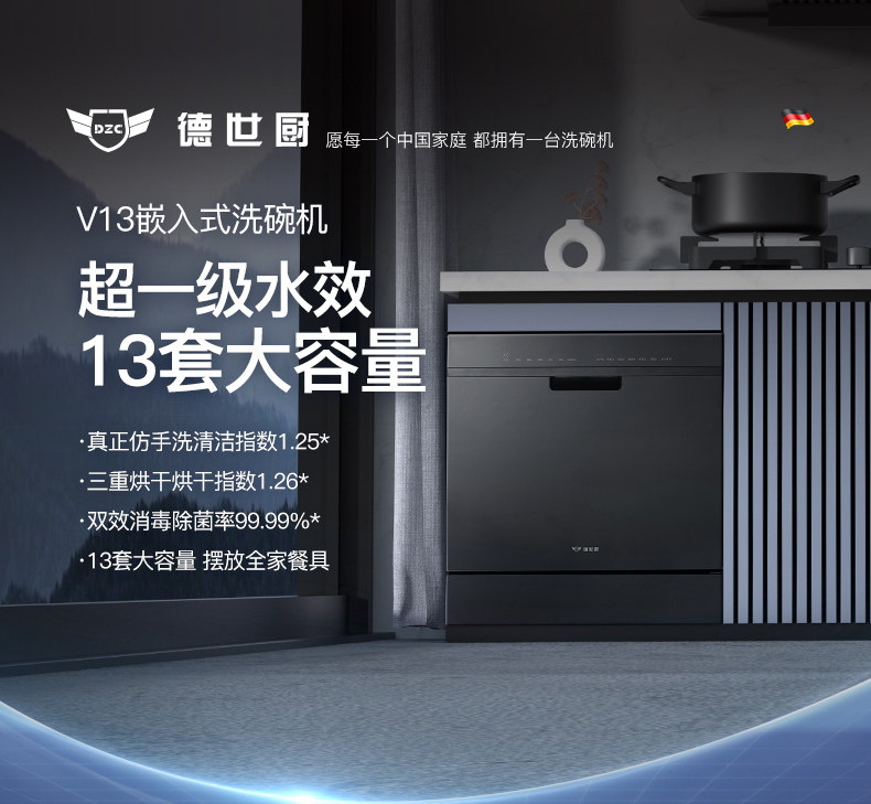 Deshi Chu V13 Set of First-Class Water-Efficiency Embedded Dishwashers with Disinfection and Drying, Smart and Fully Automatic for Home Use, Cost-Effective