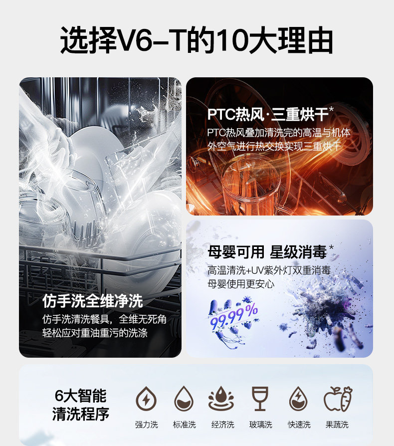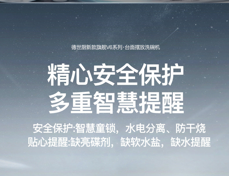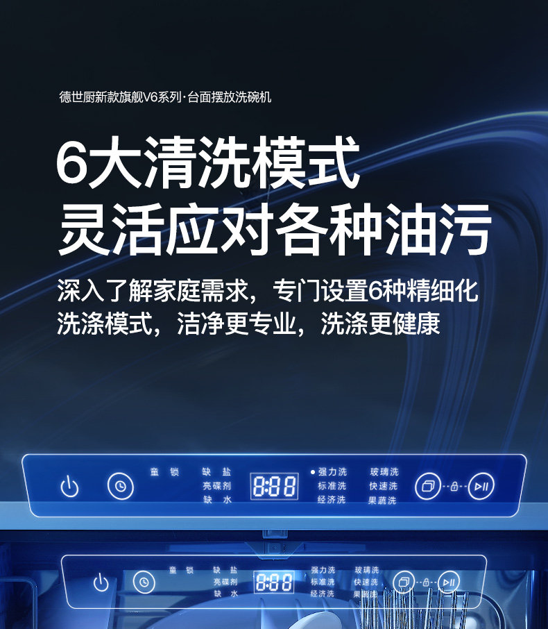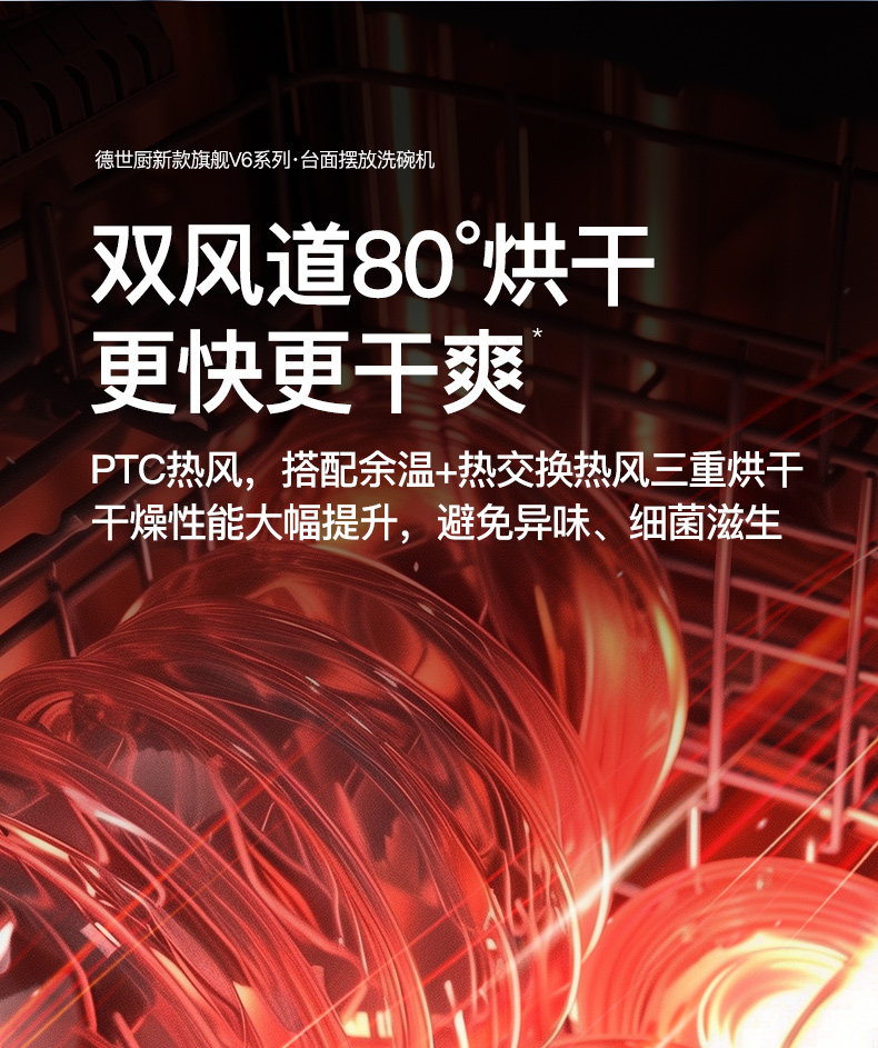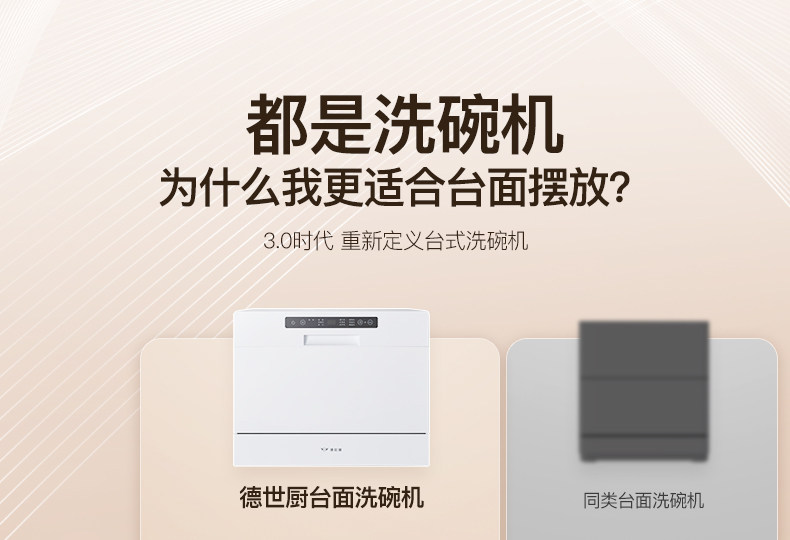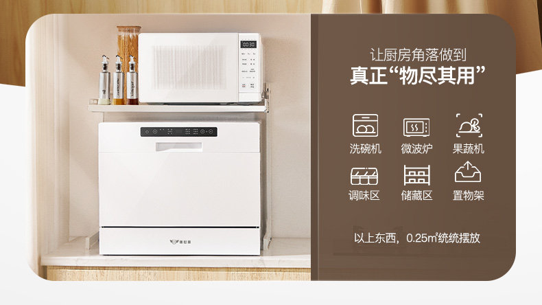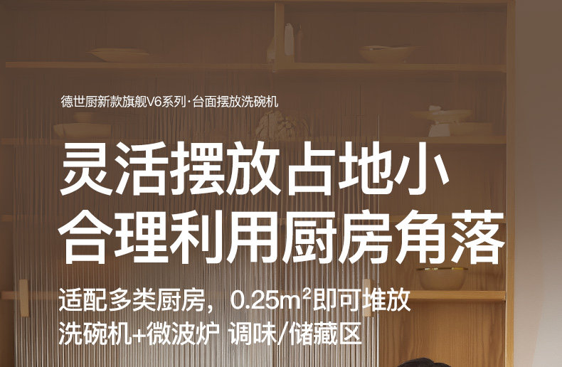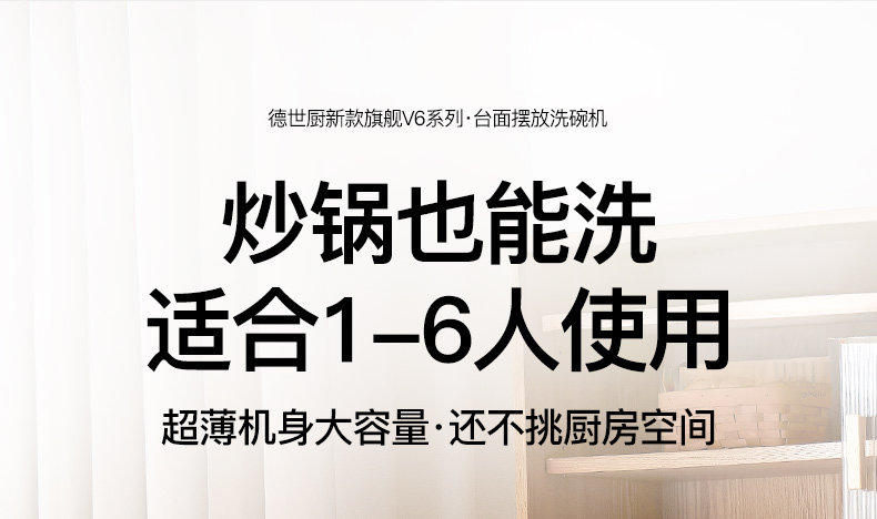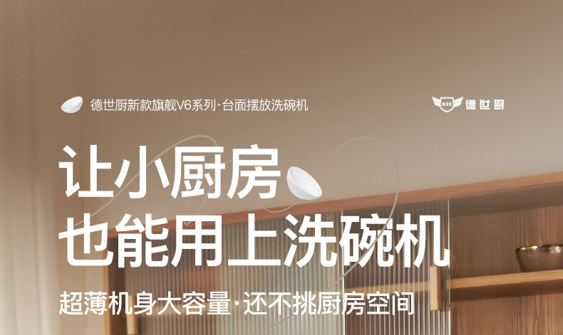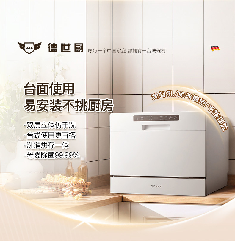Deshi Kitchen's New Product V6-T Countertop Dishwasher with Disinfection and Drying, Small Embedded Installation, Can Hold Xiaomi Box, Saves Space