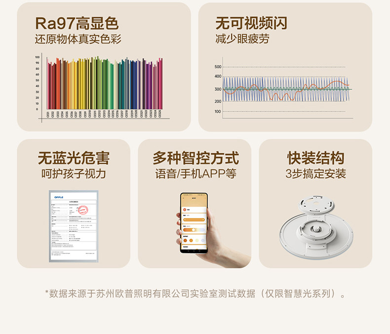 Op Led Ceiling Light, Eye-Protecting, Full Spectrum, Smart Light, Living Room, Bedroom, Study, Full Set of Smart Lighting, Chenfeng 4Tc