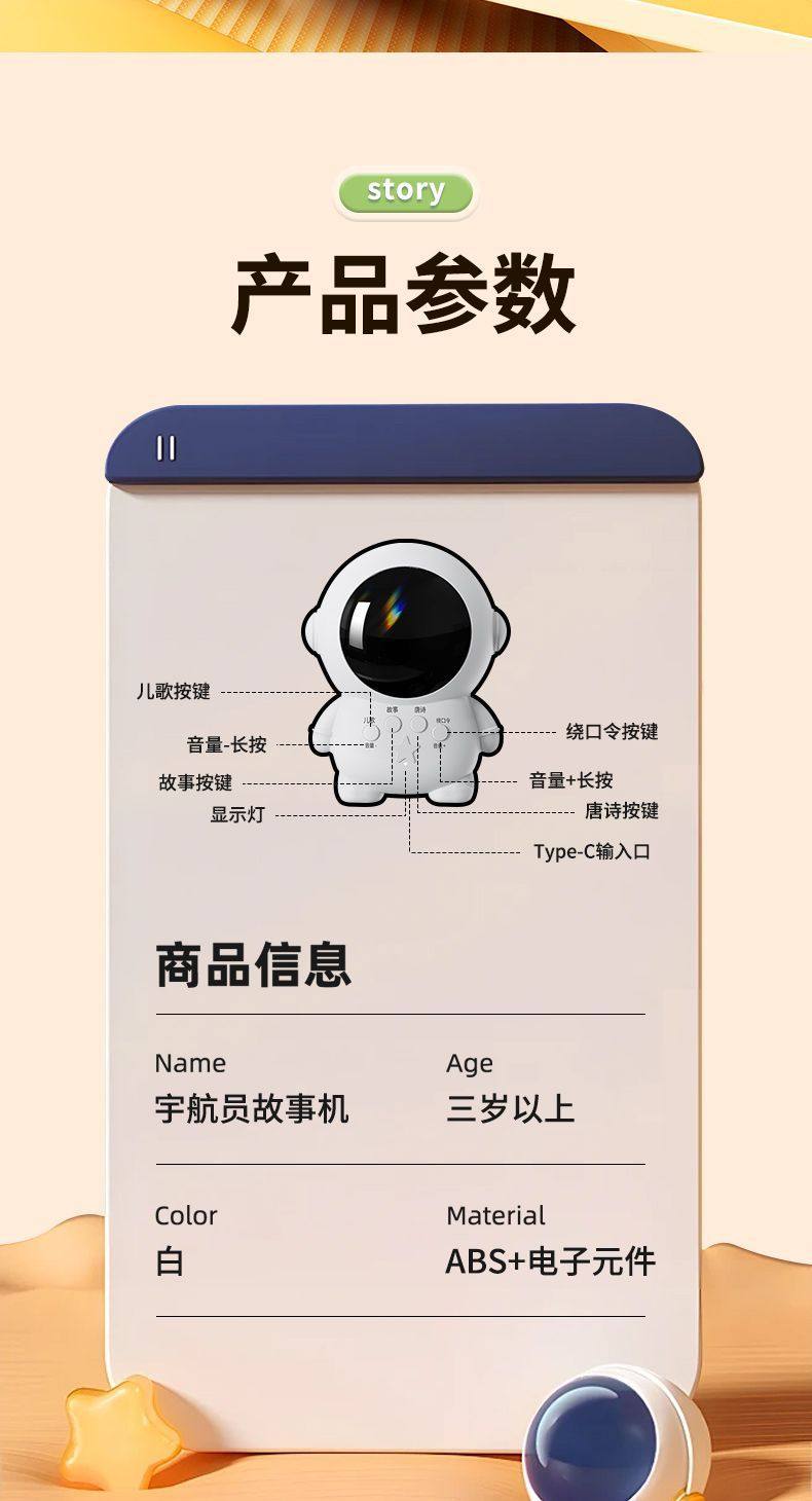 Astronaut Children's Story Machine, Enlightenment Educational Early Learning Machine, Toy for Babies and Young Children, Story and Nursery Rhymes, Parent-Child Interaction