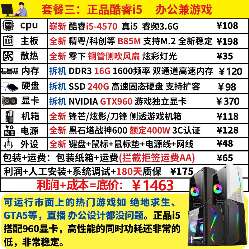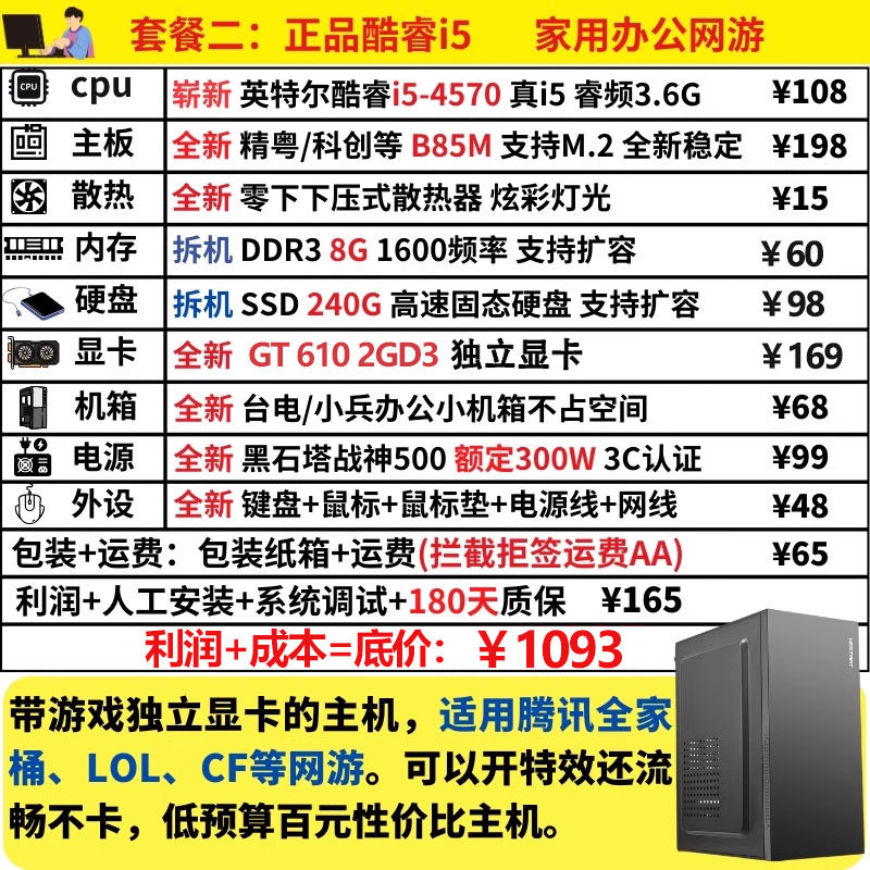 Desktop DIY Assembly Gaming Computer I5I7 Computer Host Quad-Core Octa-Core Work Office Lol Full Set