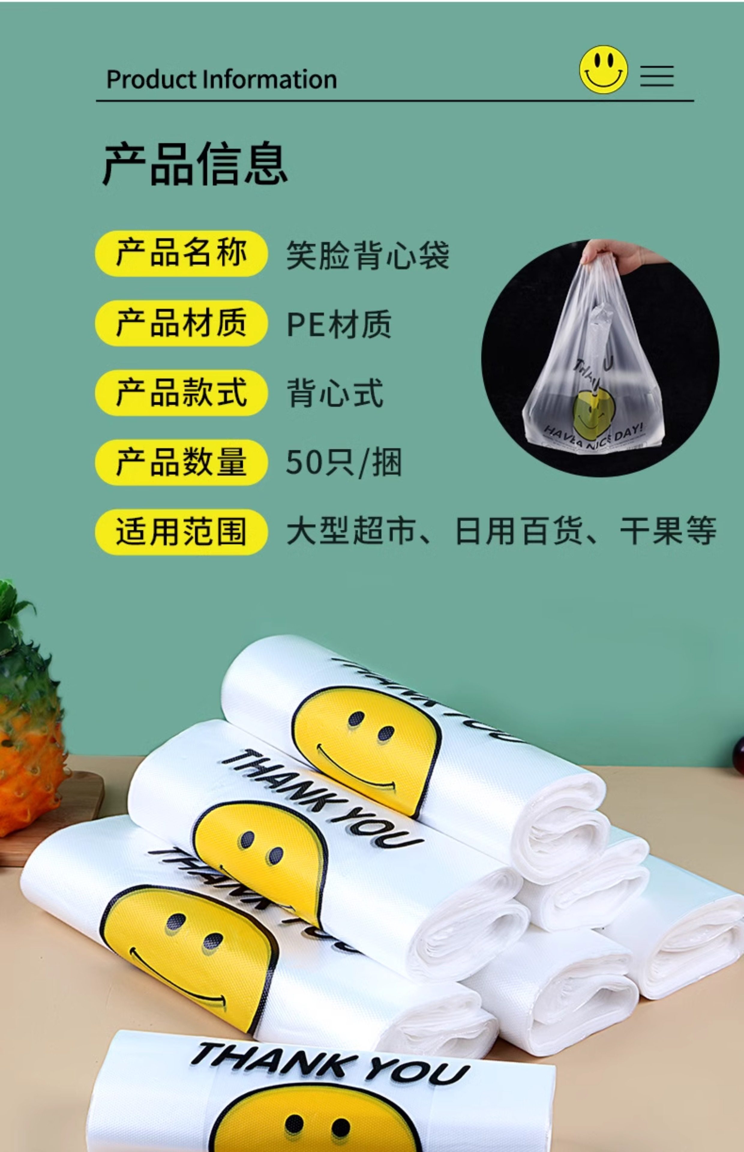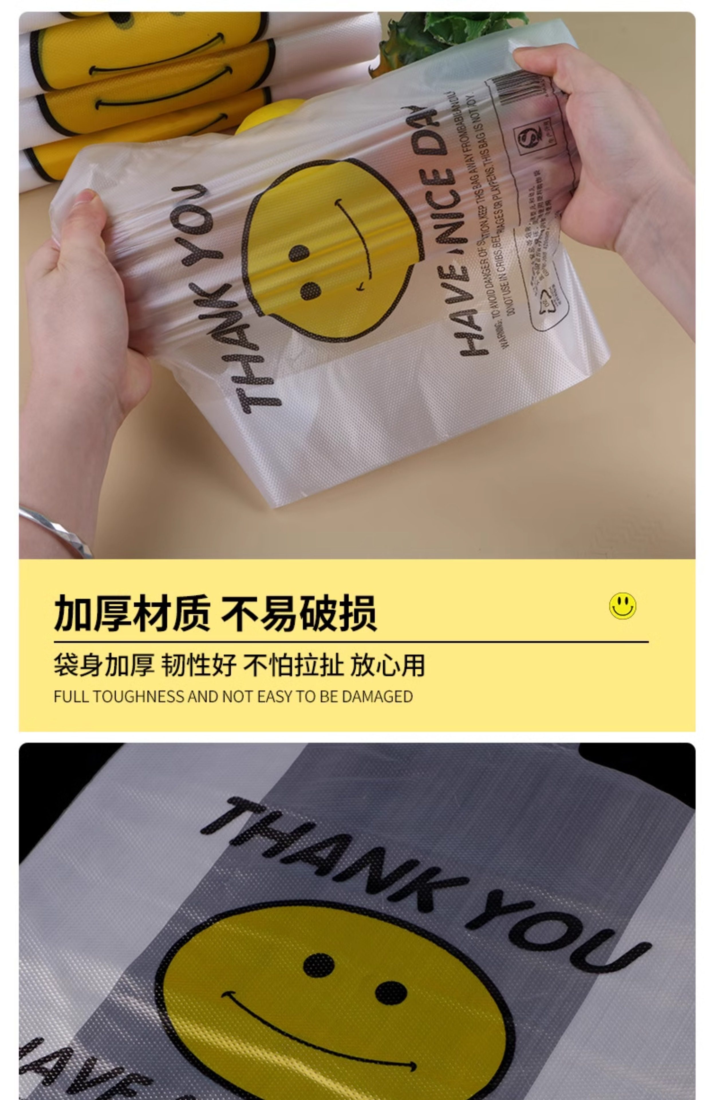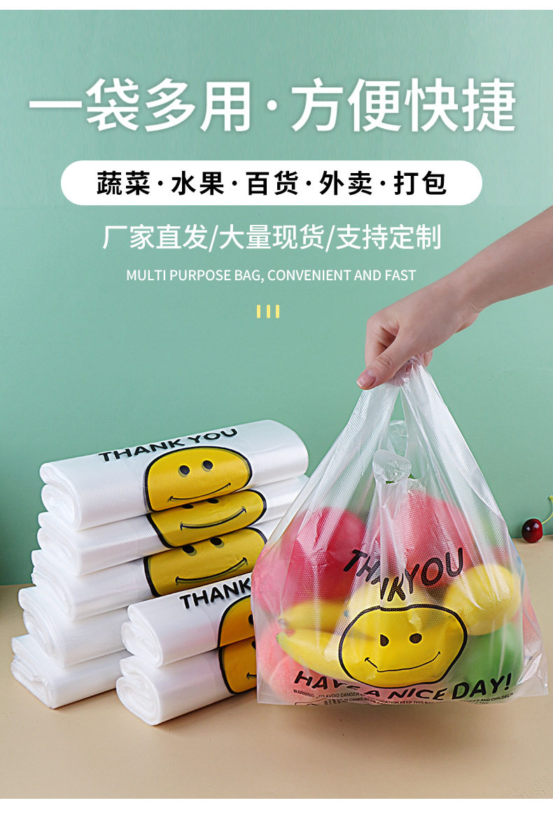 Smiley Face Plastic Bags for Food Packaging, Thickened Takeout Bags, Vest-Style Tote Bags, Convenient Bags, Transparent Fresh-Keeping Bags, Large