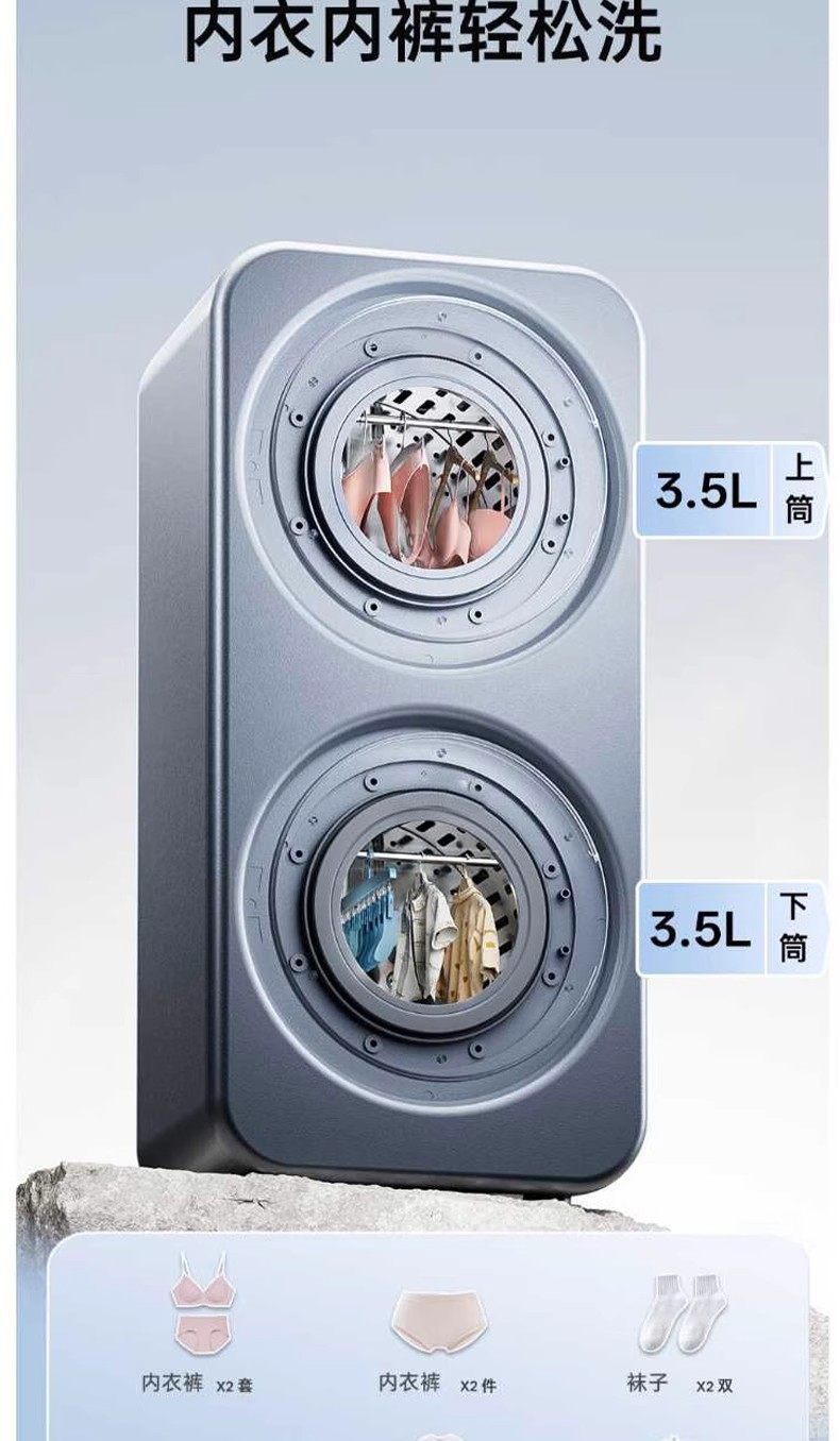 Wall-Mounted Mini Double-Cylinder Washing Machine, Fully Automatic, Specifically for Underwear, Small Washing and Drying Machine with One or Two Drums