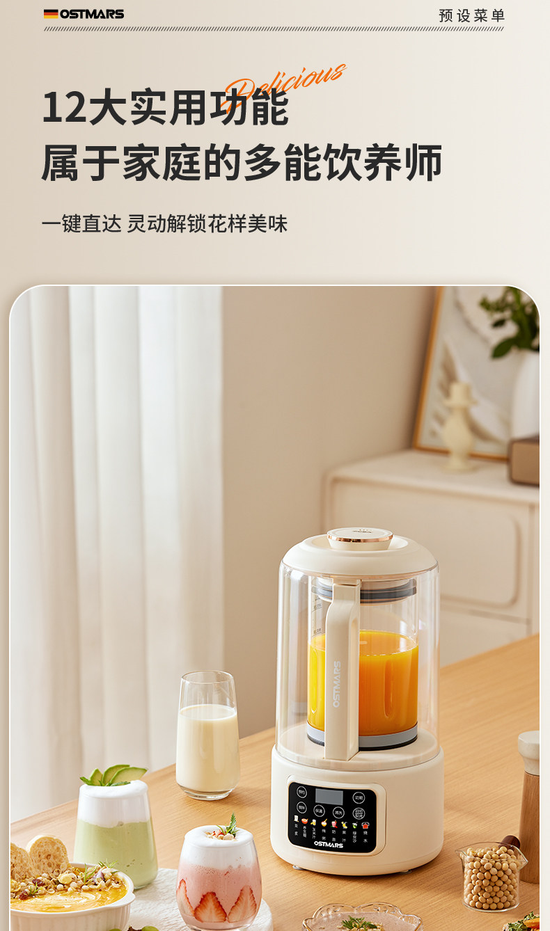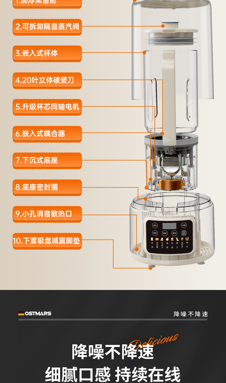 German Ostmars High-Capacity Blender for Home Use, Fully Automatic, Soundproof, Low-Noise Juicer and Food Processor