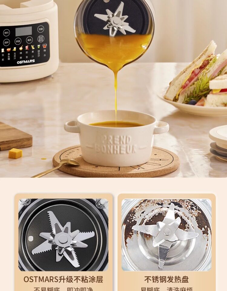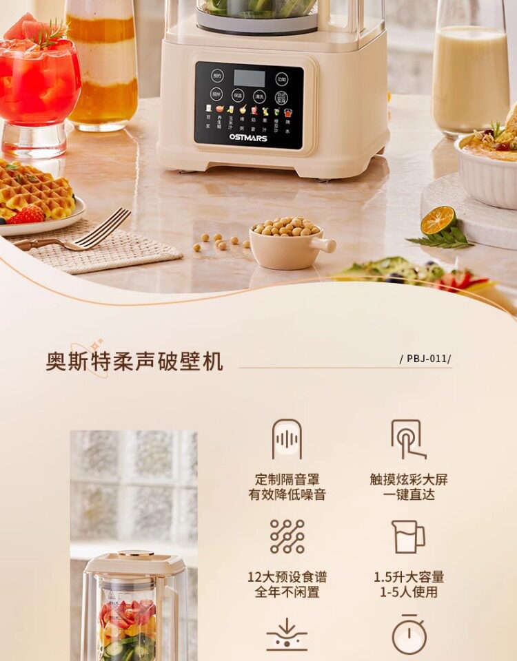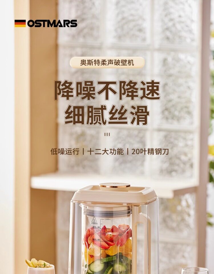 German Ostmars Quiet Blender for Home Use, Soundproof Food Processor, Fully Automatic Low-Noise Juicer and Soy Milk Maker