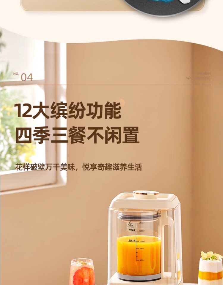 | Basic Functions | Complementary Food,Slow Simmer,Milkshake,Crushed Ice,Soy Milk,Rice Cereal,Grinding,Juicing,Automatic Cleaning,Thick Soup,Corn Juice |