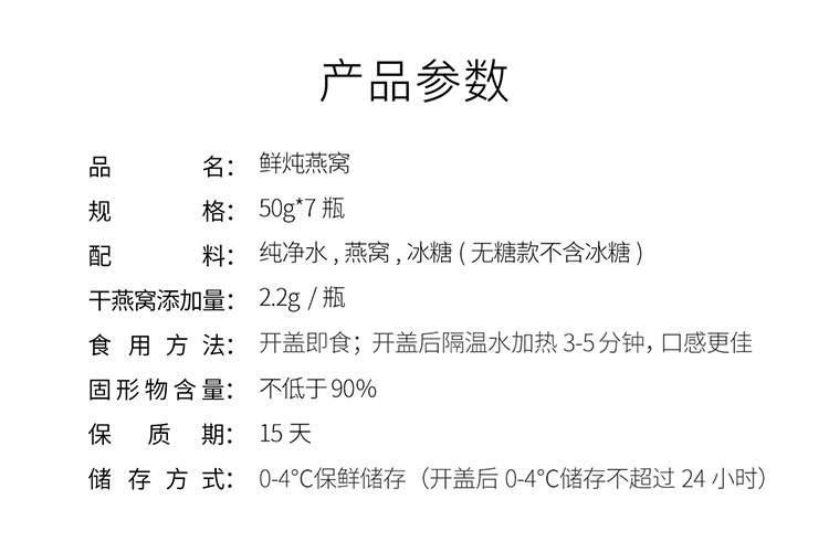 | Dried Bird's Nest Content | 2.2g |