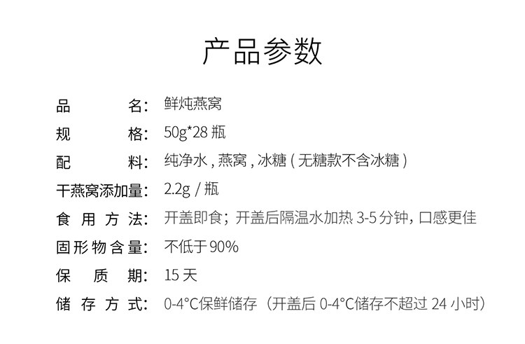 | Dried Bird's Nest Content | 2.2g |