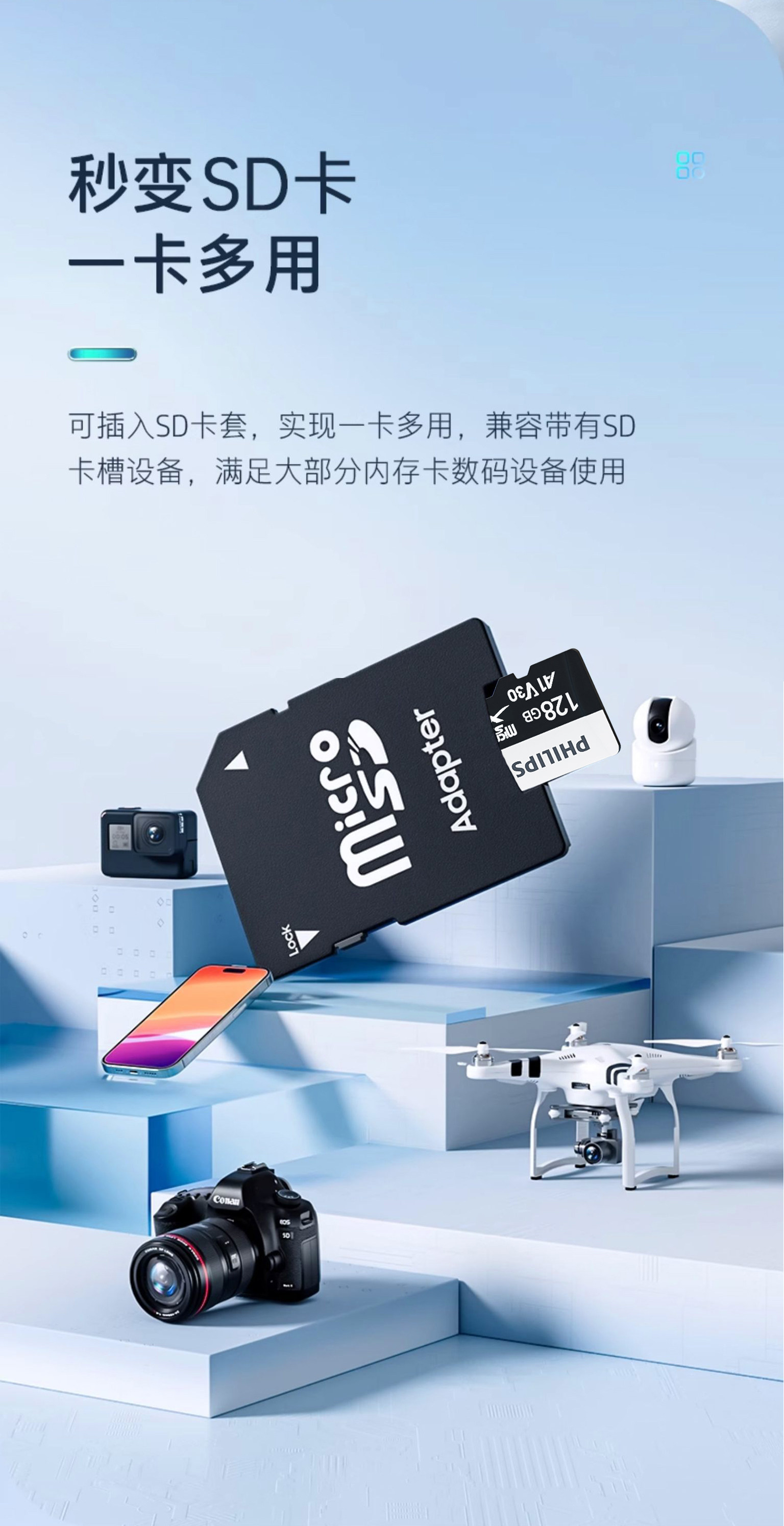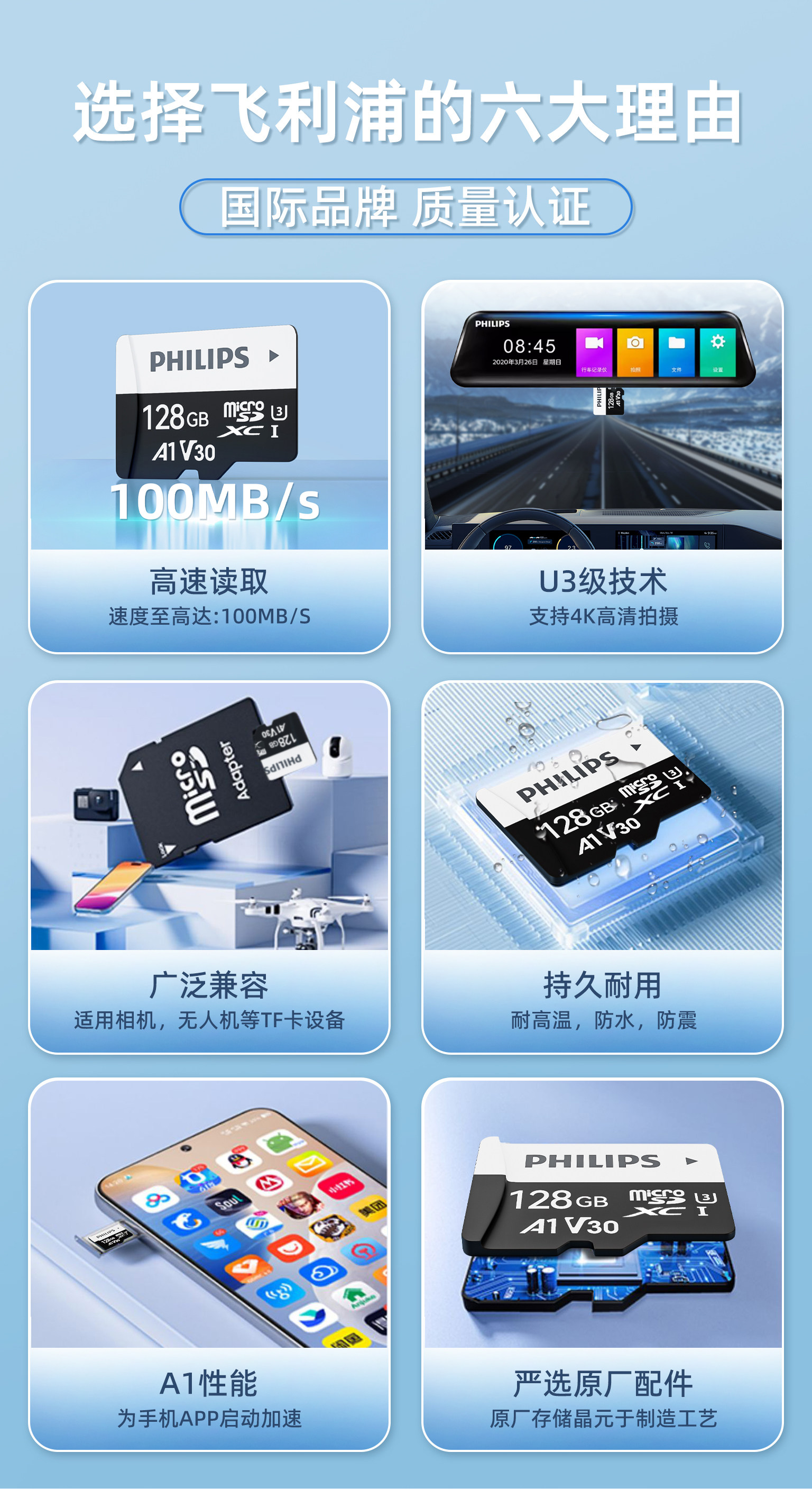 Philips Memory Card Tf Card Driving Recorder Surveillance Memory Card 128g High-Speed Sd Card 64g Camera Mobile Phone