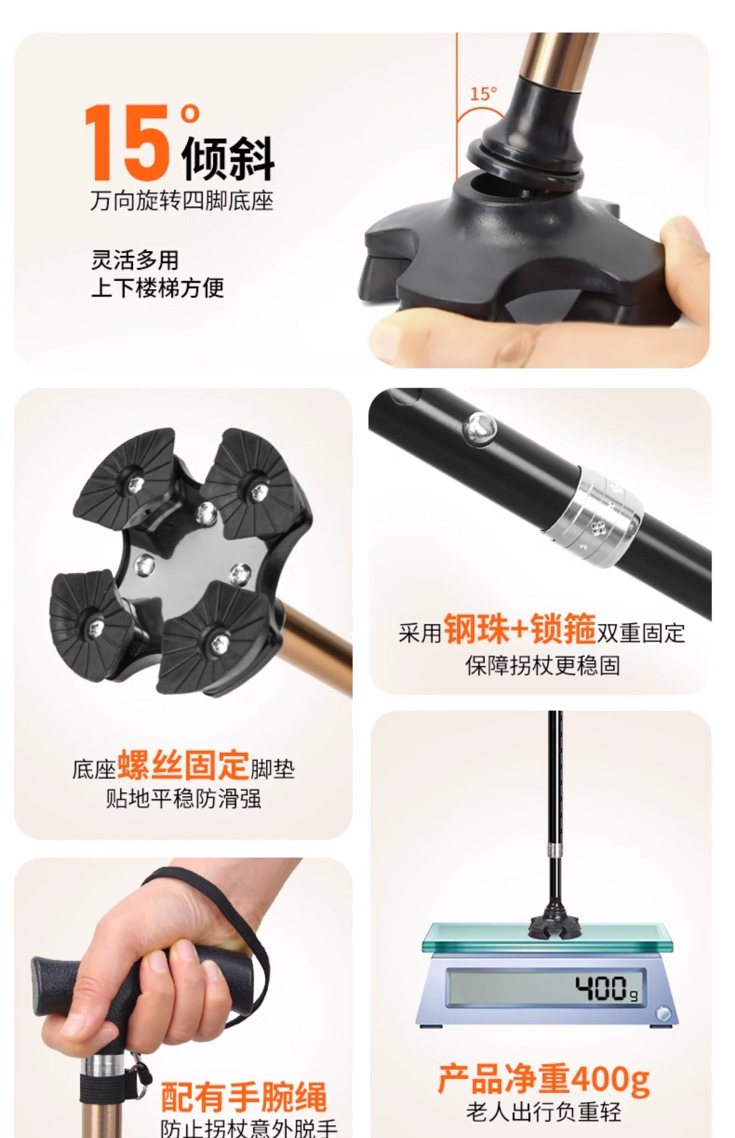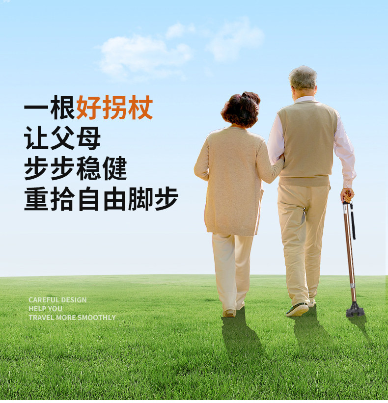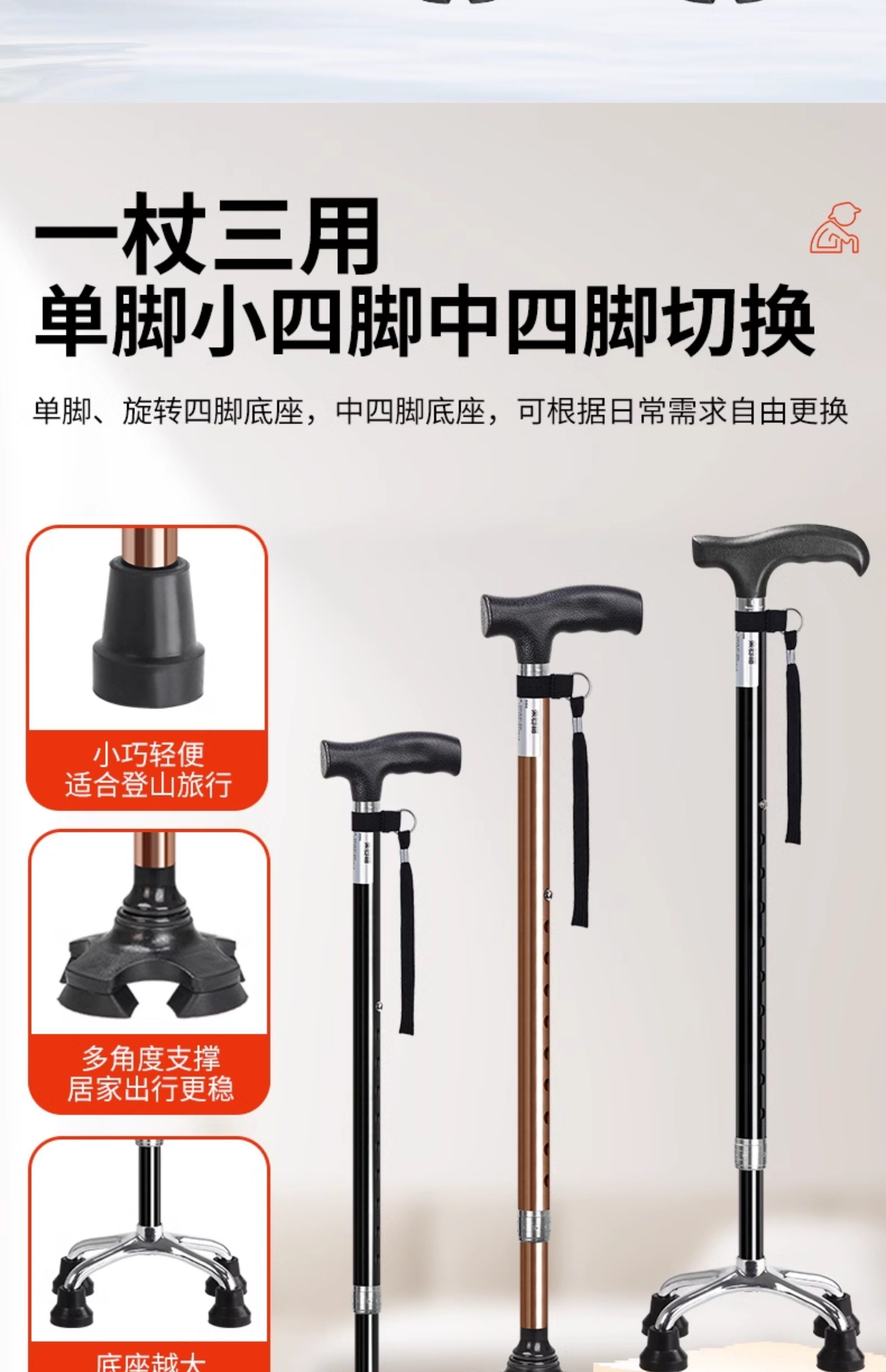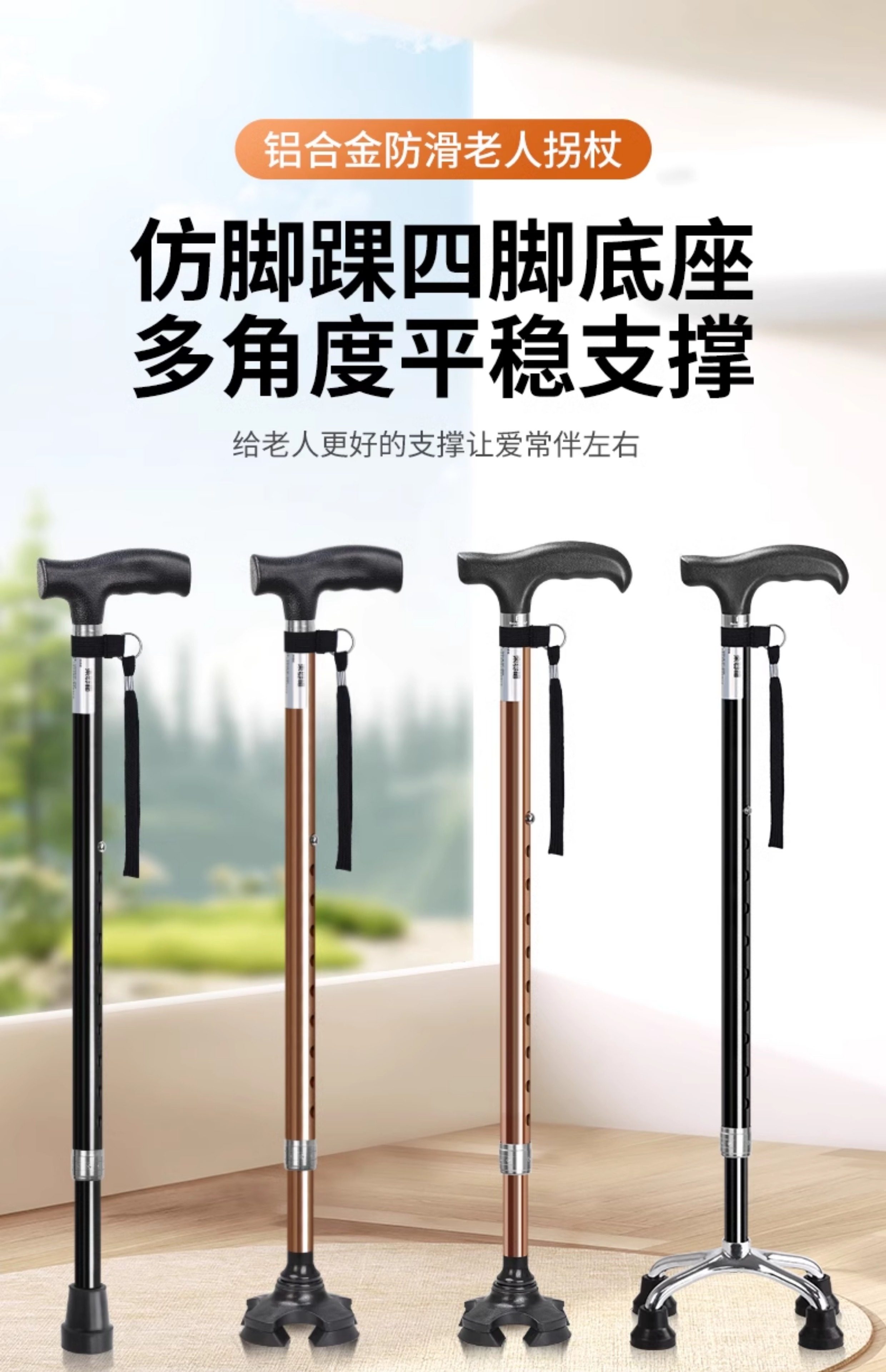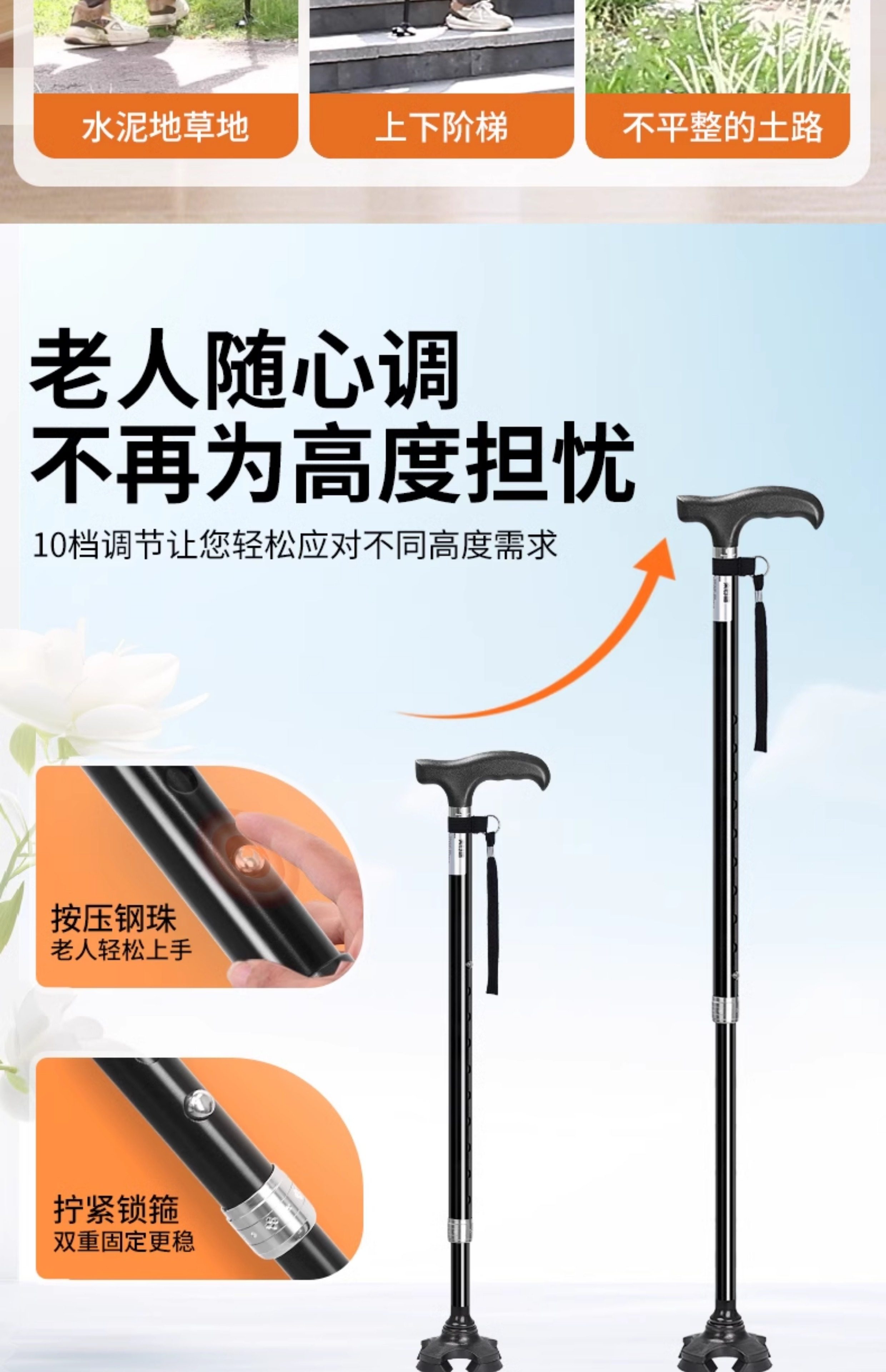 Le Laifu Elderly Walking Stick, Telescopic Four-Legged Walking Stick for the Elderly, Lightweight, Stable, Non-Slip Cane, Walking Aid for the Elderly