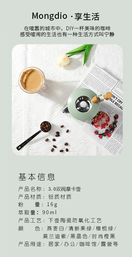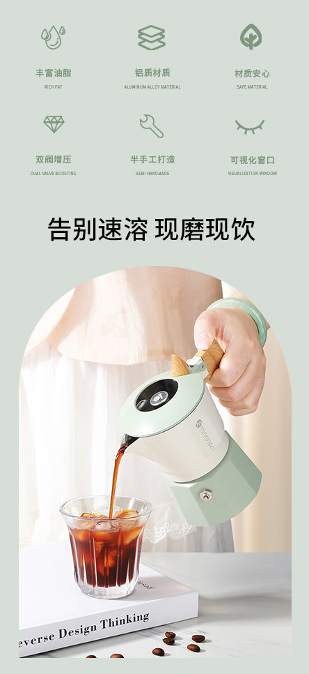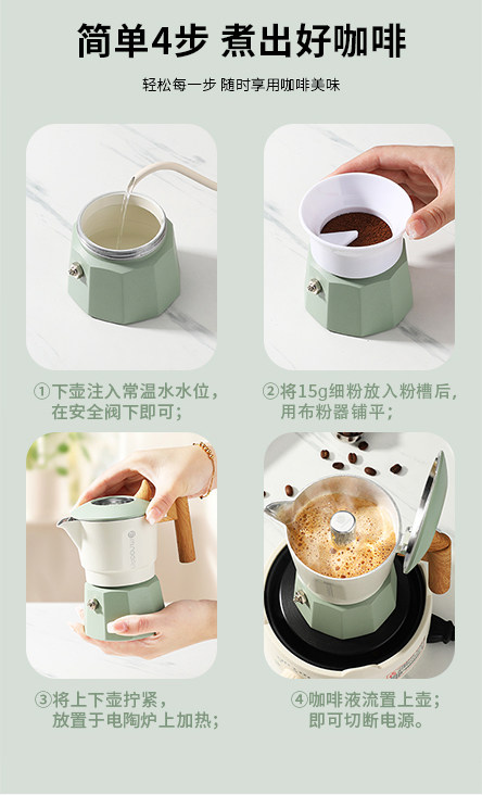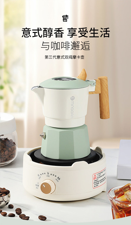 Mongdio Moka Pot Double Valve Home Coffee Maker Italian Espresso Small Coffee Machine Extraction Pot Set