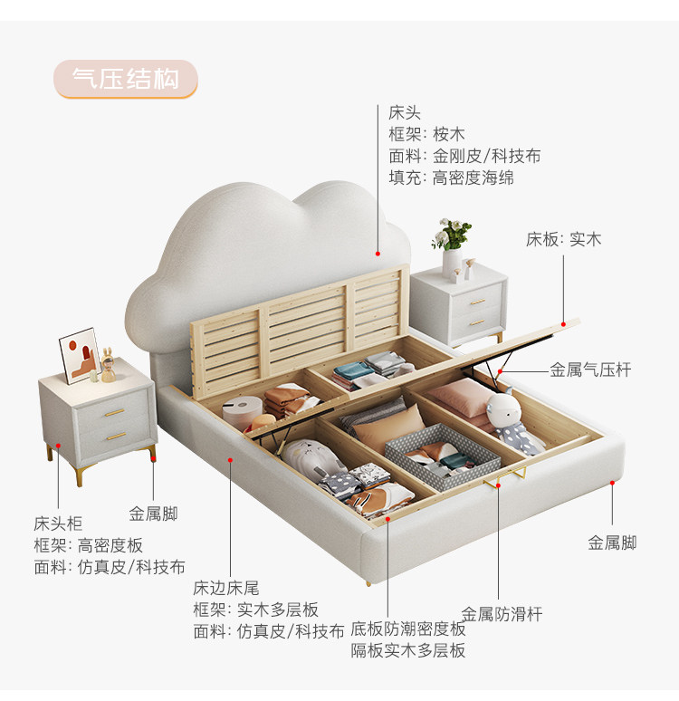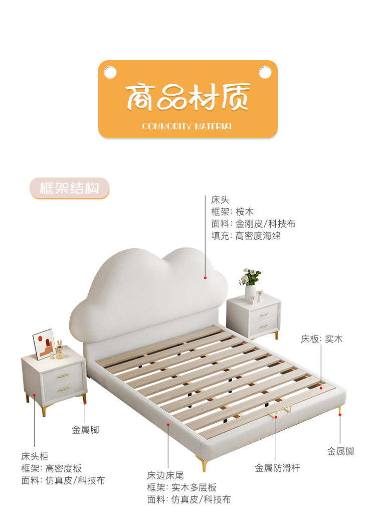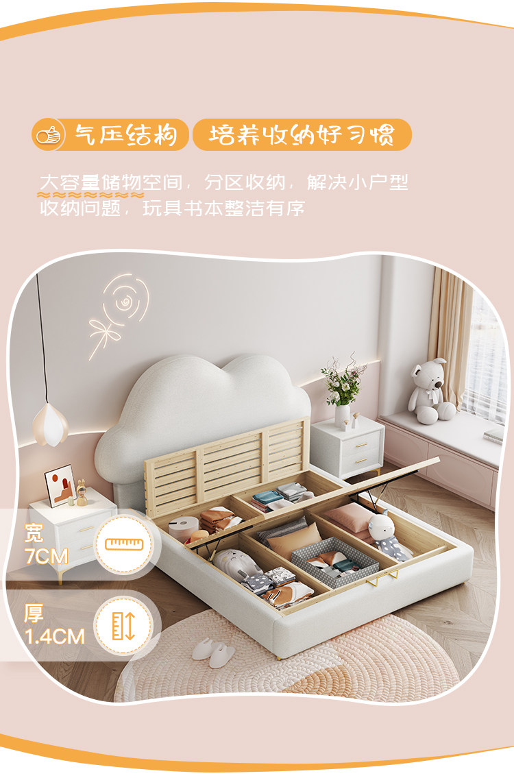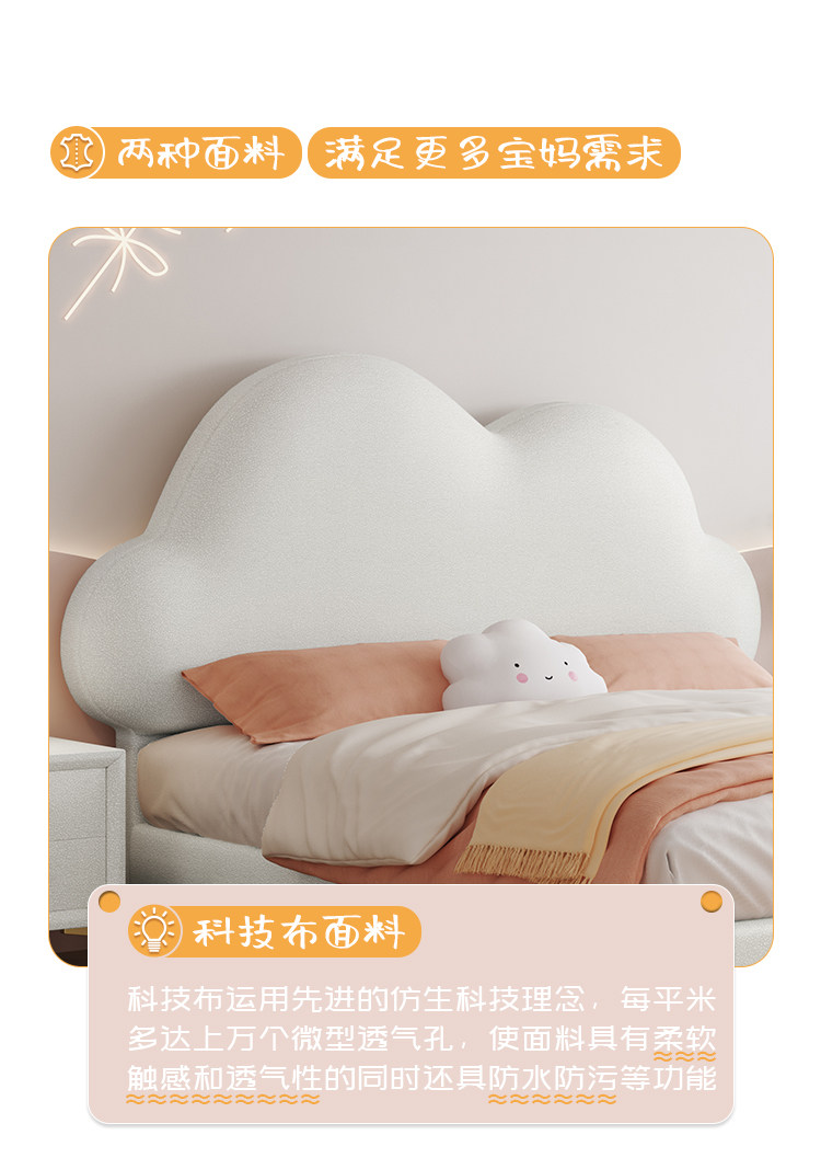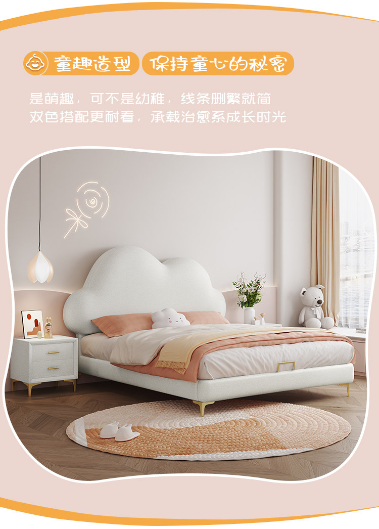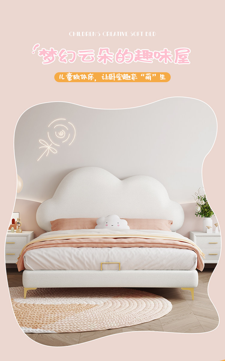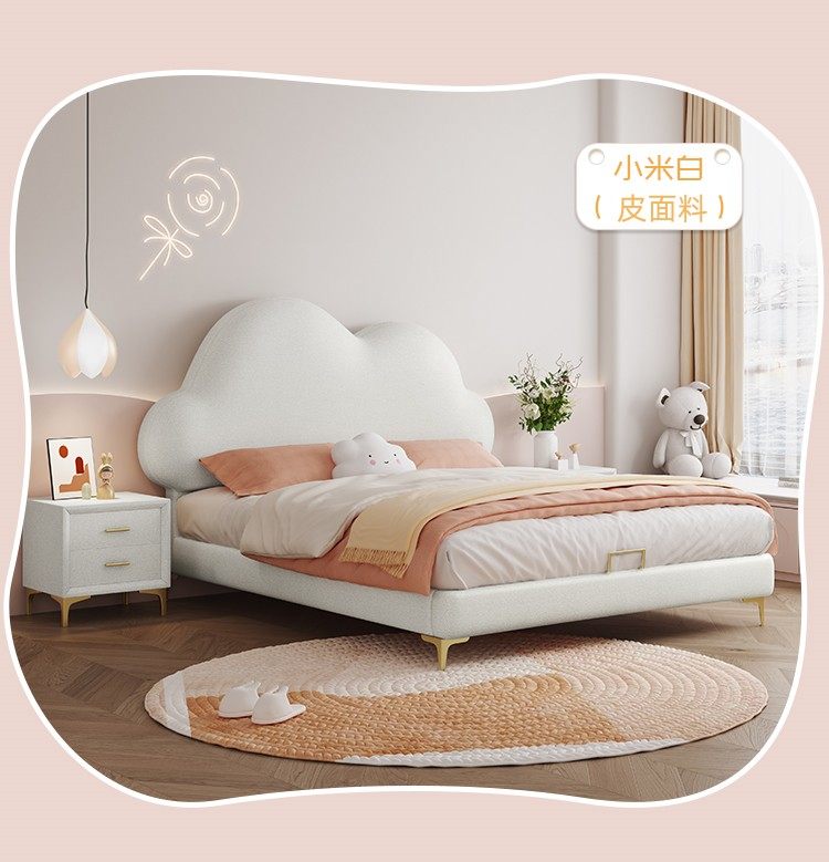 Children's Bed, Girl's Cloud Leather Bed, Boy's Light Luxury Soft Bed, Teenager's Single Modern Simple Bed, Princess Internet Celebrity Bed