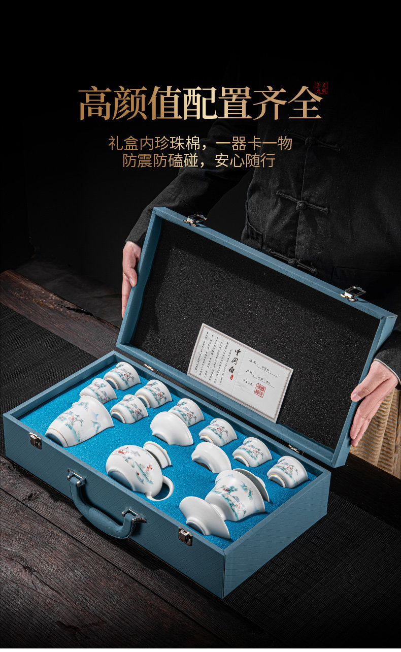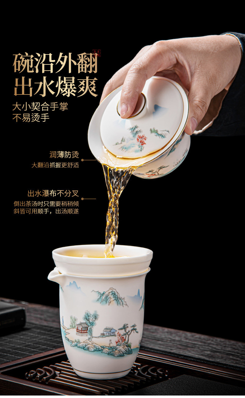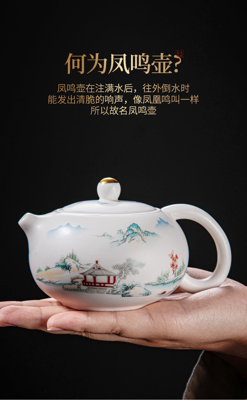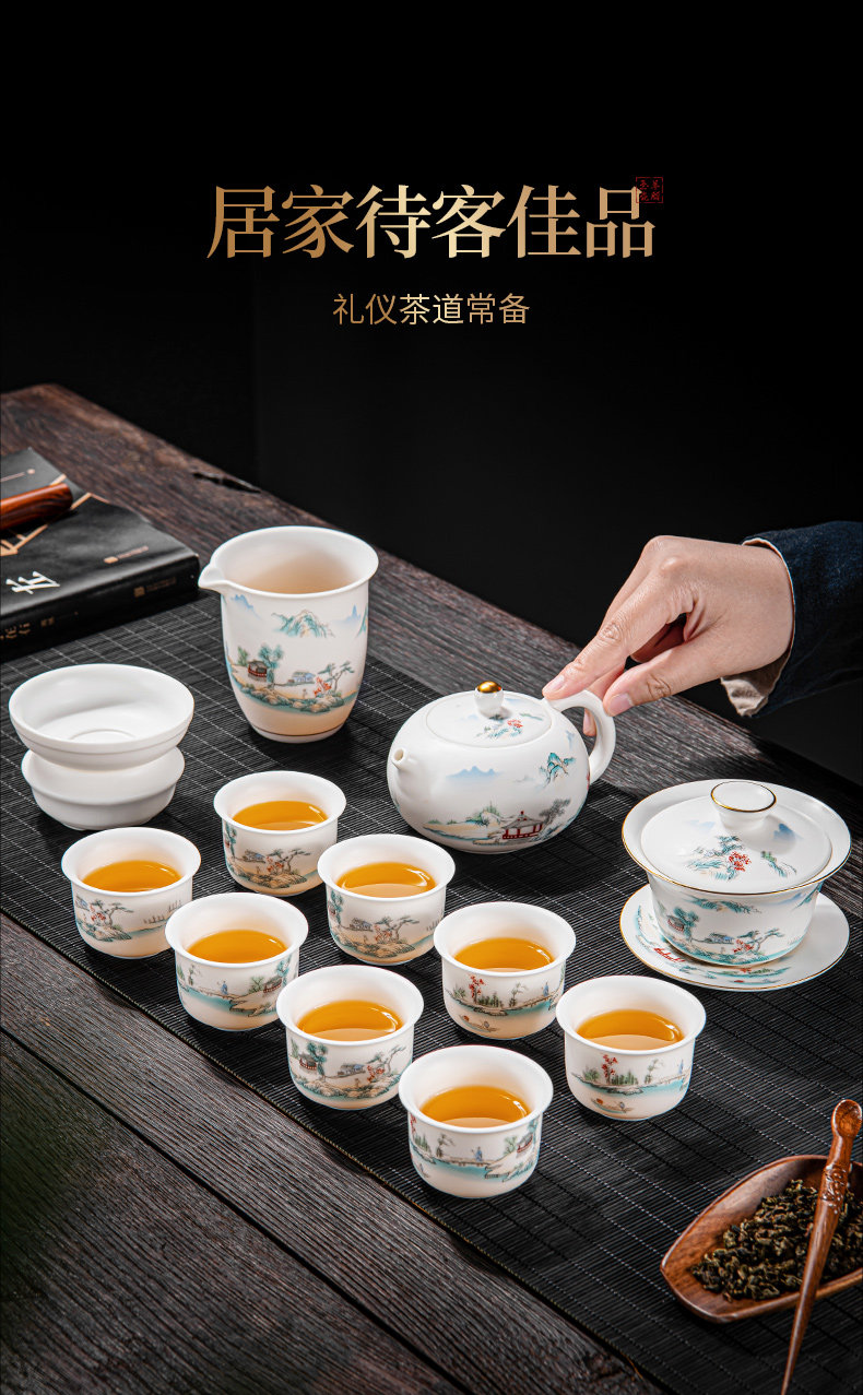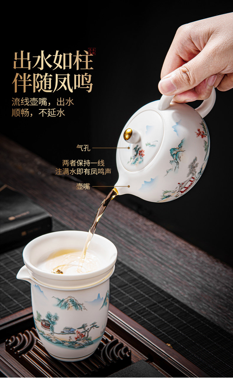 | Color Classification | Mutton Fat Jade Porcelain Splendid Rivers and Mountains Tureen with Six Cups 9-Piece Set (Green Model),Mutton Fat Jade Porcelain Splendid Rivers and Mountains Fengming Pot Six Cups 9-Piece Set (Green Style),Mutton Fat Jade Porcelain Splendid Rivers and Mountains Fengming Teapot Lid Bowl Eight Cups 12-Piece Set (Green Model),Mutton Fat Jade Porcelain Splendid River West River Shih Pot Lid Bowl Eight Cups 12-Piece Set (Green Style) + Chinese Bai Fengming Jiutian Gift Box,Mutton Fat Jade Porcelain Splendid River West River Shih Pot Lid Bowl Eight Cups 12-Piece Set (Ink Style) + Chinese Bai Fengming Jiutian Gift Box |