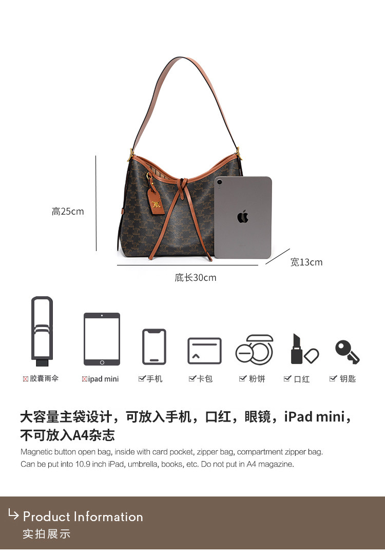 Combatc&King Underarm Bag for Women 2025 New Model Arc De Triomphe Monogram Tote Commuter Large Capacity Crossbody Bag