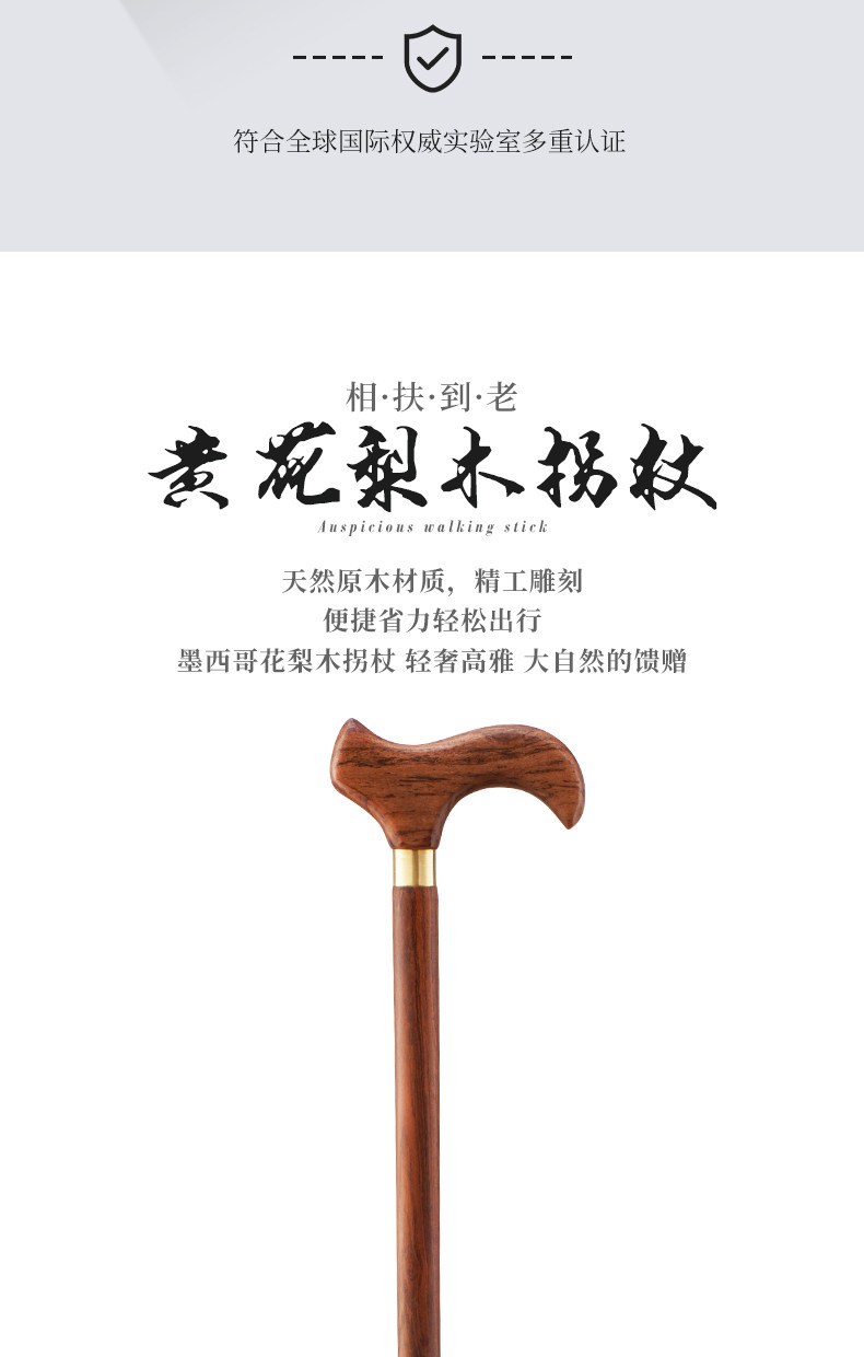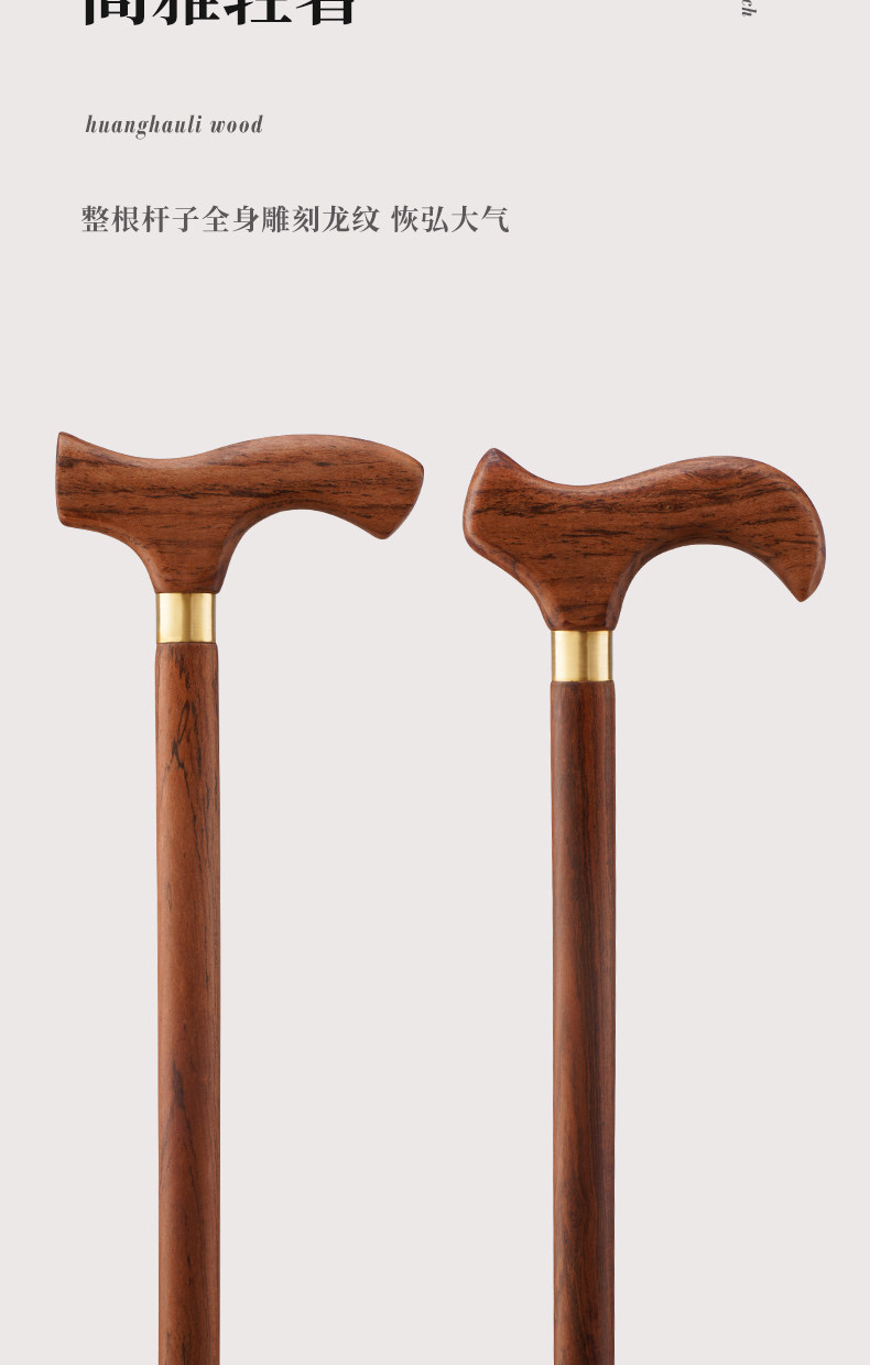 Authentic Huanghuali Wood Cane, Rosewood Walking Stick for the Elderly, Solid Wood Walking Stick, High-End Wooden, Lightweight, Four-Legged, Non-Slip