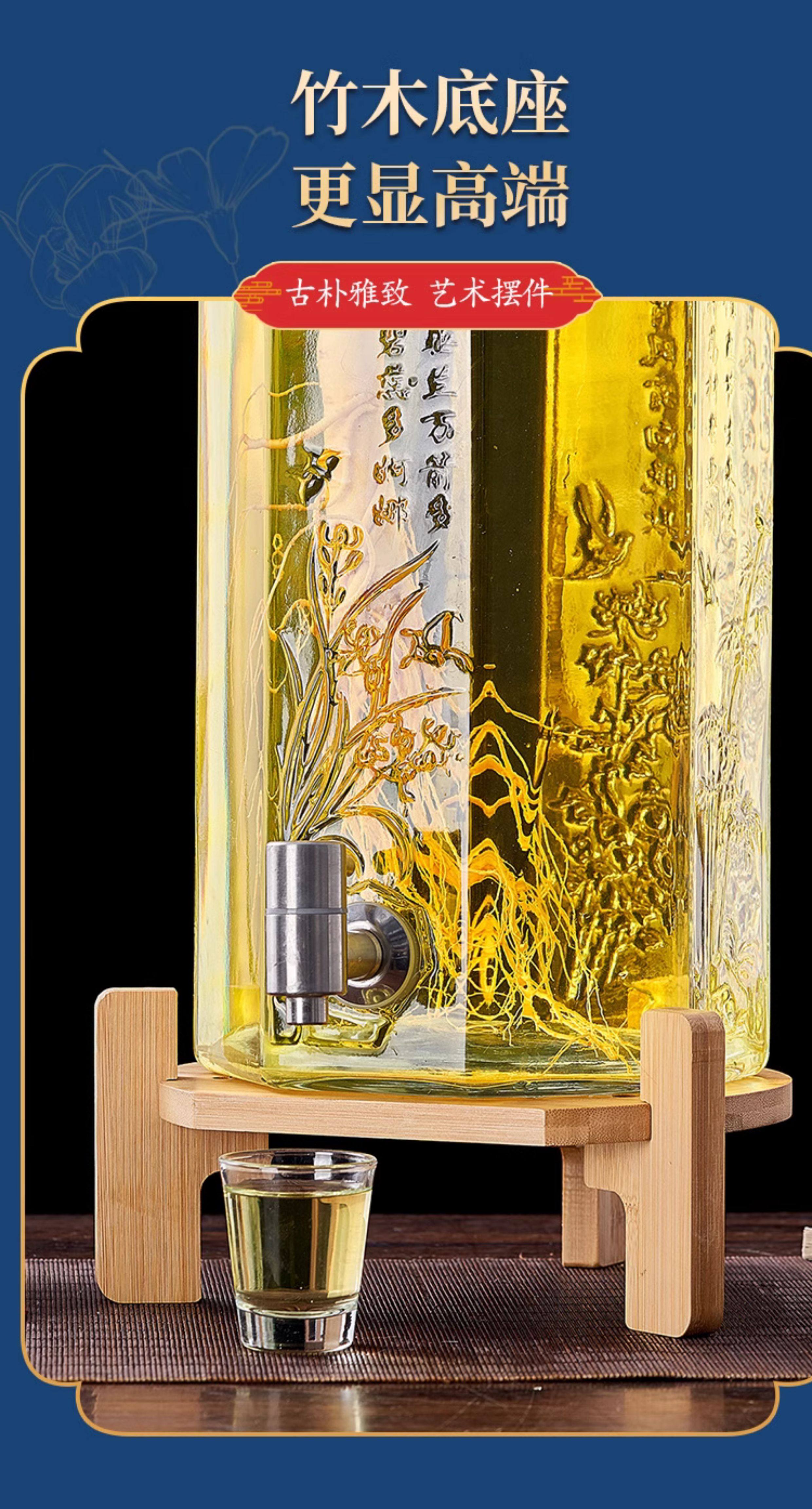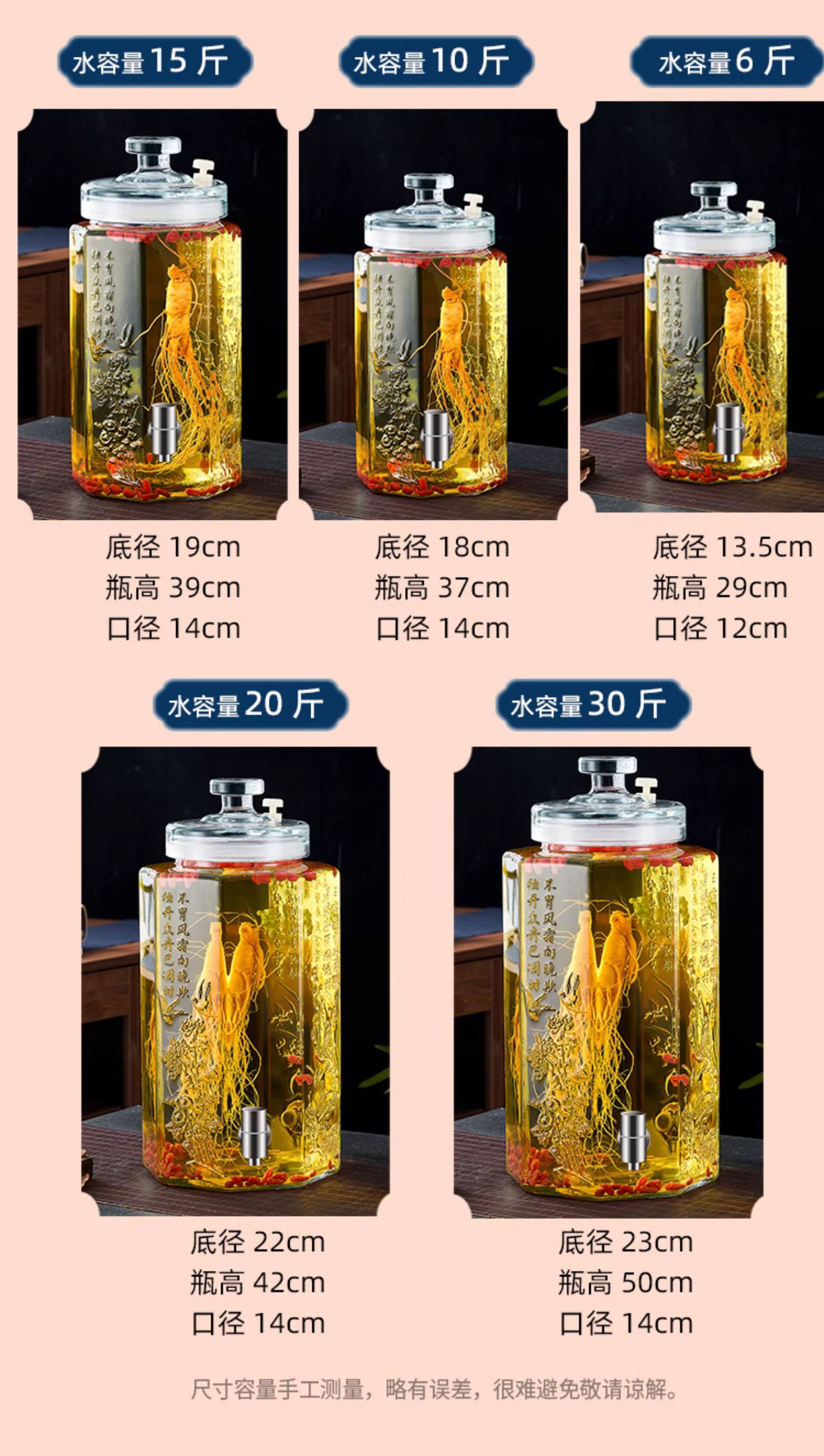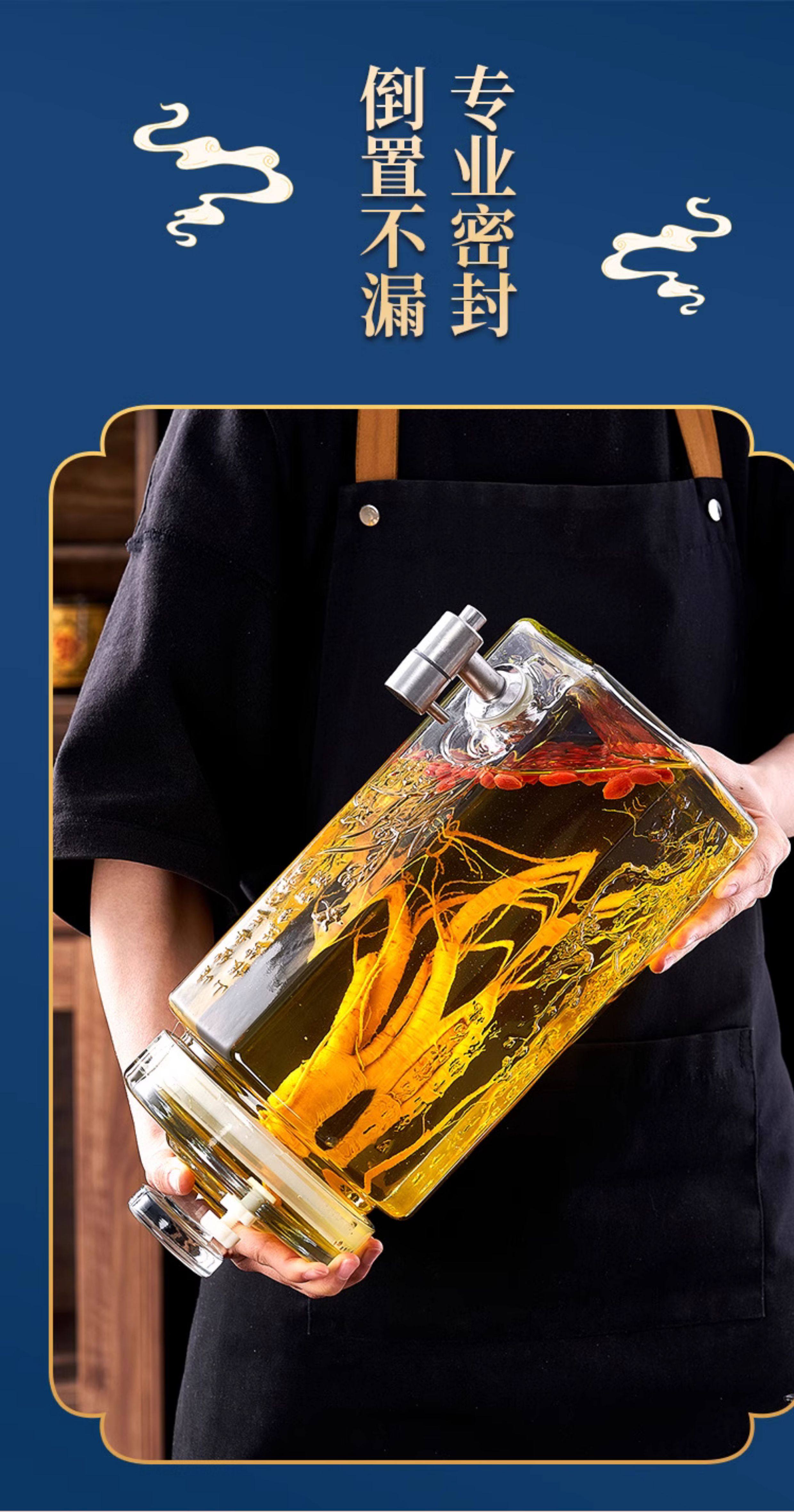 Glass Bottle for Soaking Liquor, Household Sealed Container, Medicinal Liquor Jar, Wine Jar, Liquor Jar with Spigot, High-End Special-Purpose Liquor Bottle