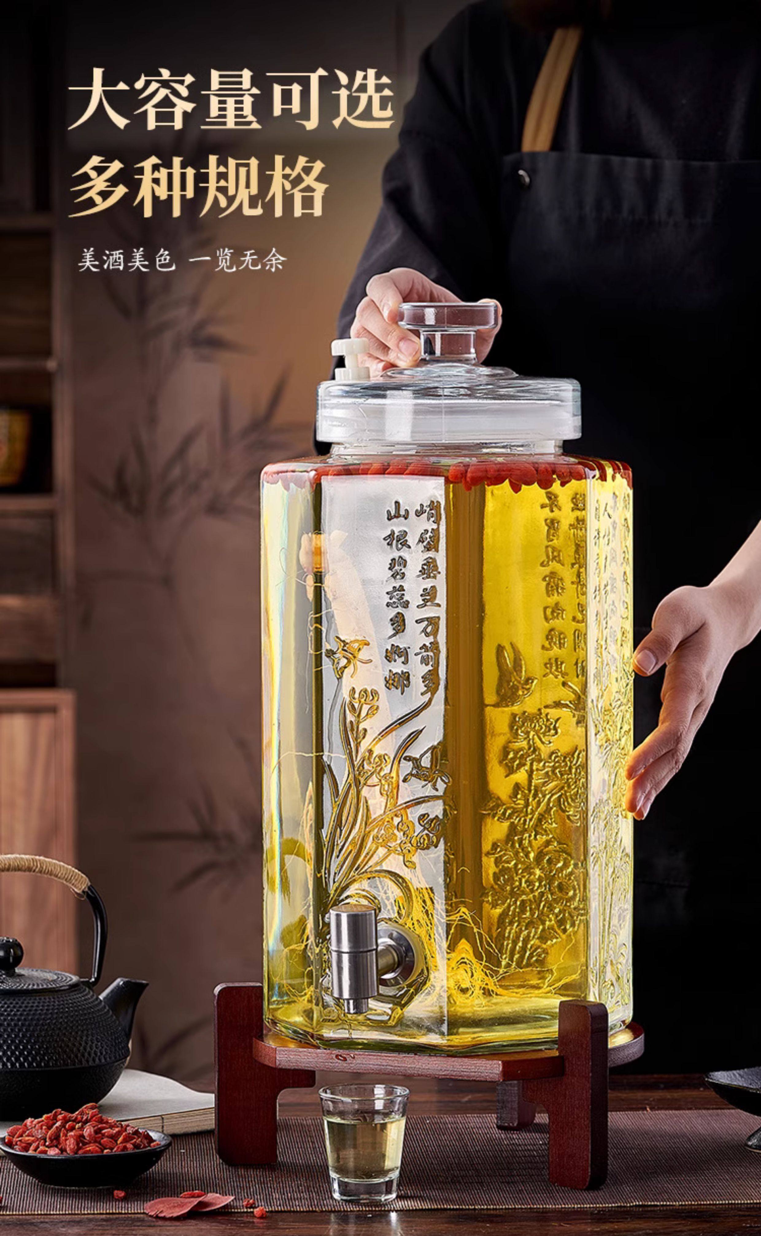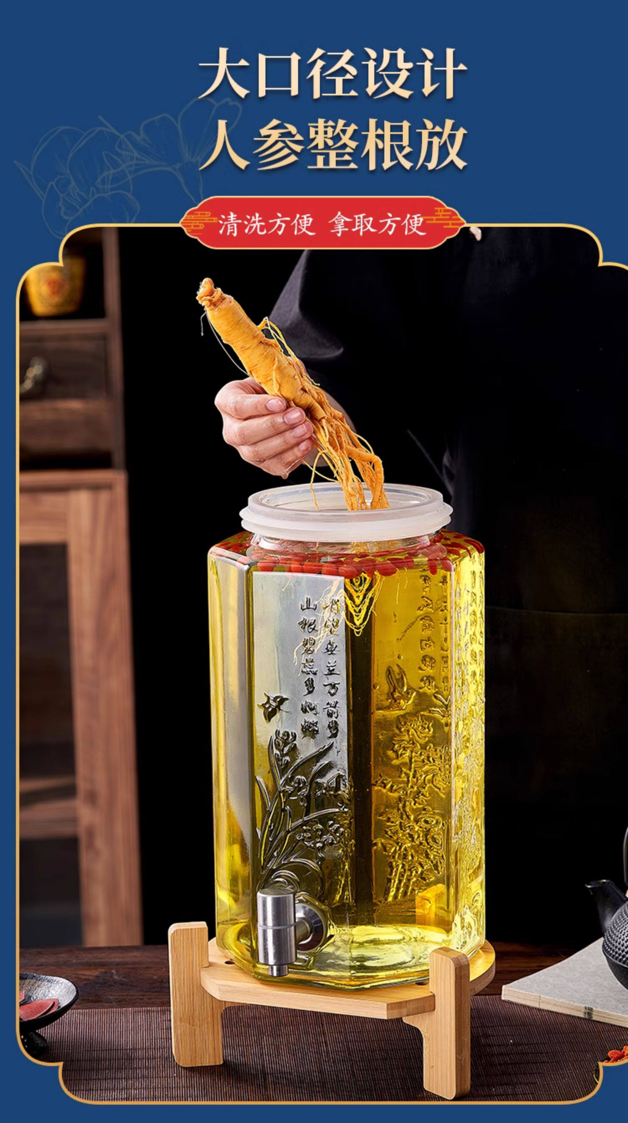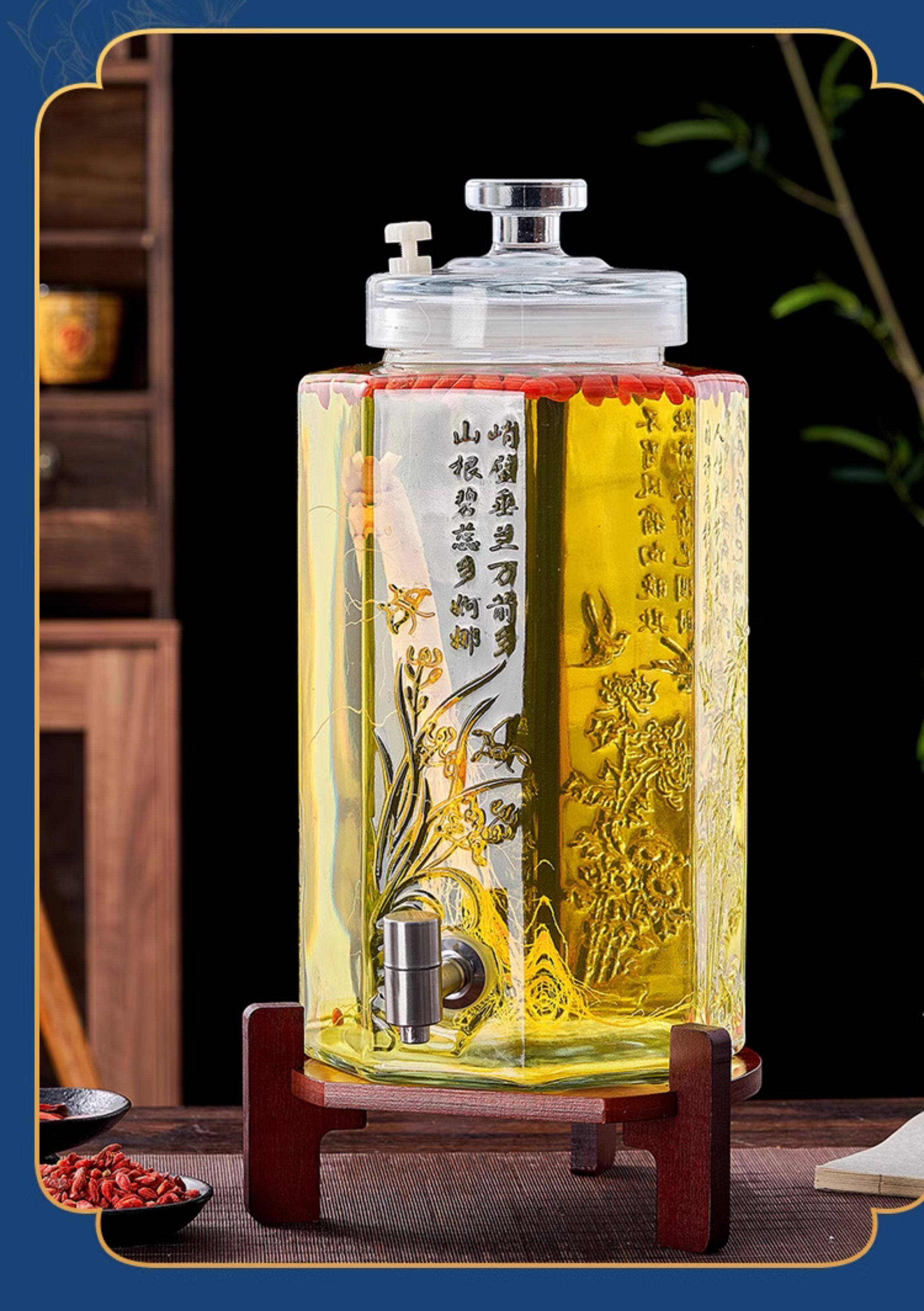 Glass Bottle for Soaking Liquor, Household Sealed Container, Medicinal Liquor Jar, Wine Jar, Liquor Jar with Spigot, High-End Special-Purpose Liquor Bottle