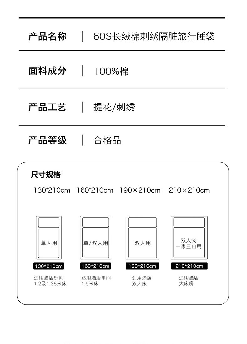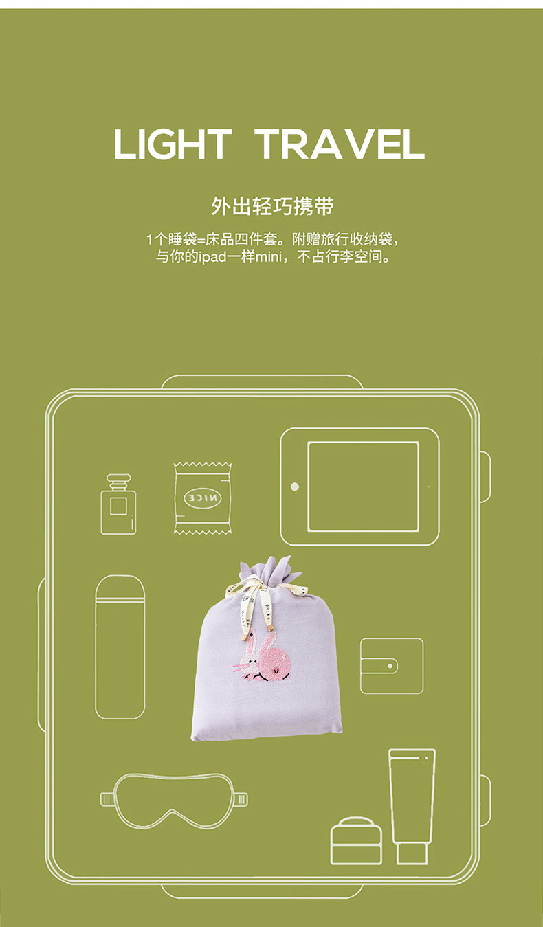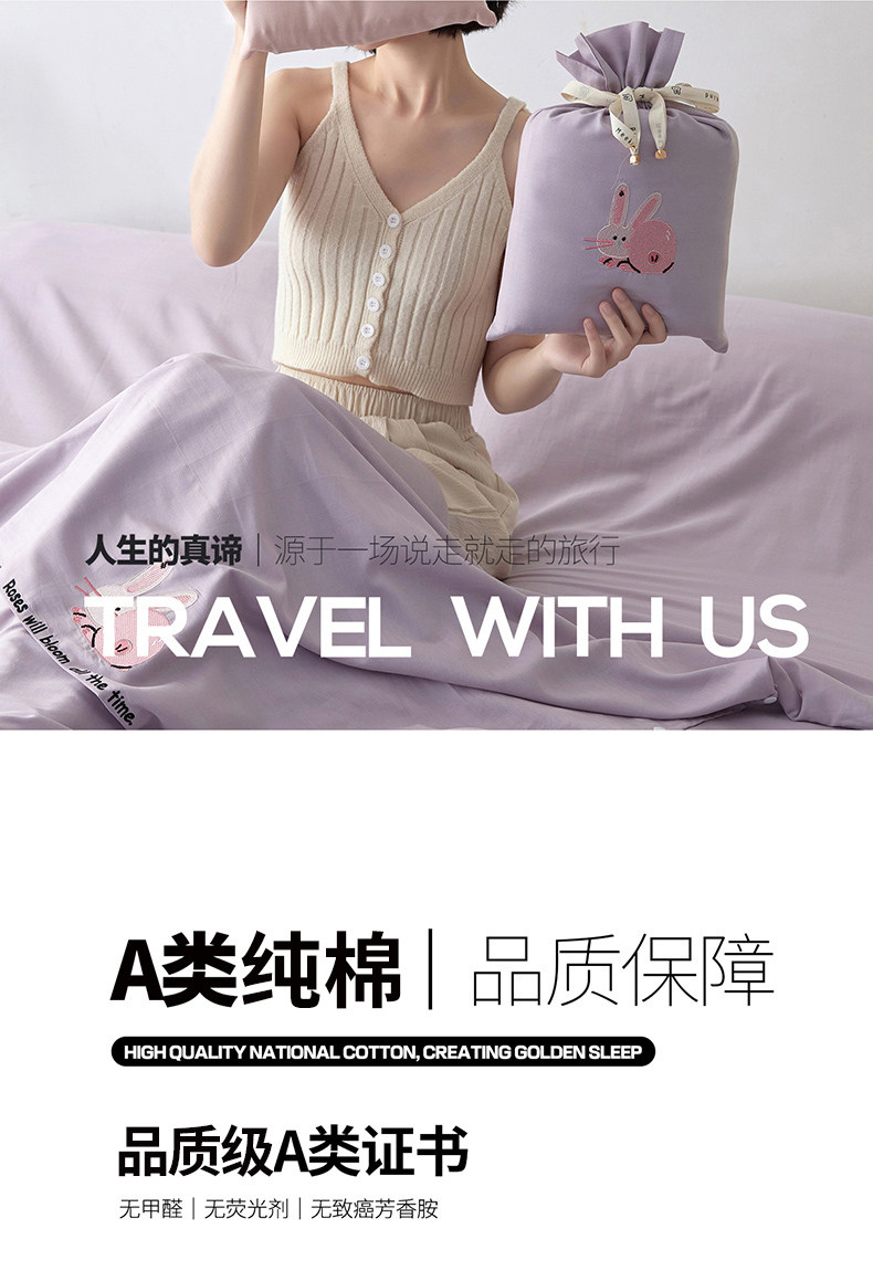Muji Class a 60S Long-Staple Cotton Hotel Anti-Dirt Sleeping Bag Pure Cotton Travel Bed Sheet Duvet Cover Four-Piece Set Portable