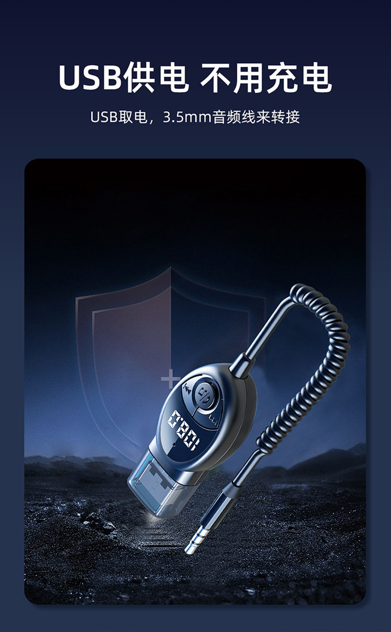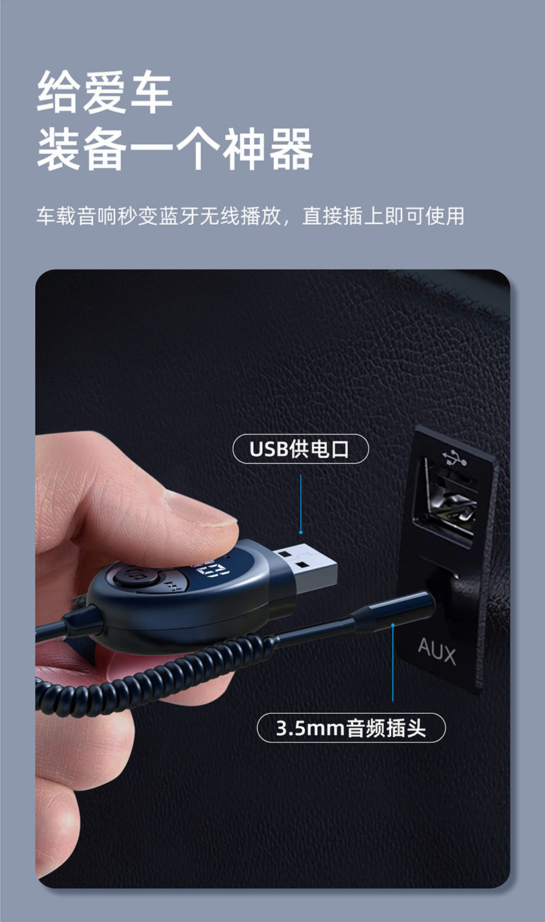 5.3 Car Bluetooth Receiver Aux Audio Cable Fm Car Audio Converter USB to 3.5mm Adapter Module