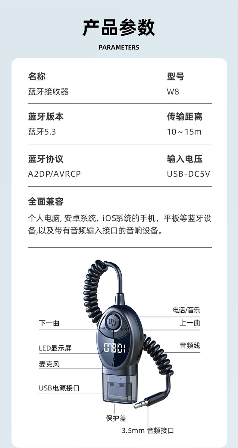 | Color Classification | 5.3 Bluetooth Receiver Fm+Aux |