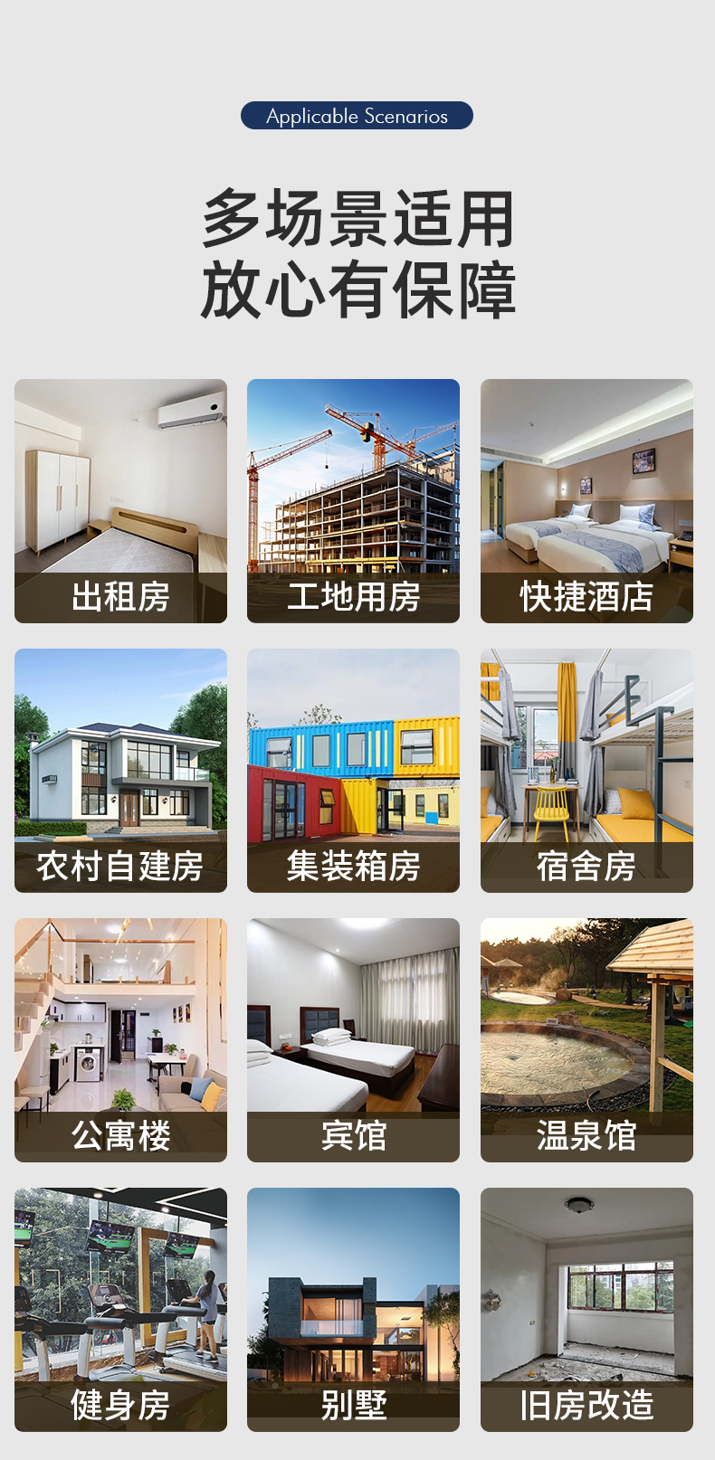 | Applicable Scenarios | Villa/Large Flat Floor,Self-Built House,Hotel,Dormitory,Bed and Breakfast,Rural Housing,Construction Site Temporary House |