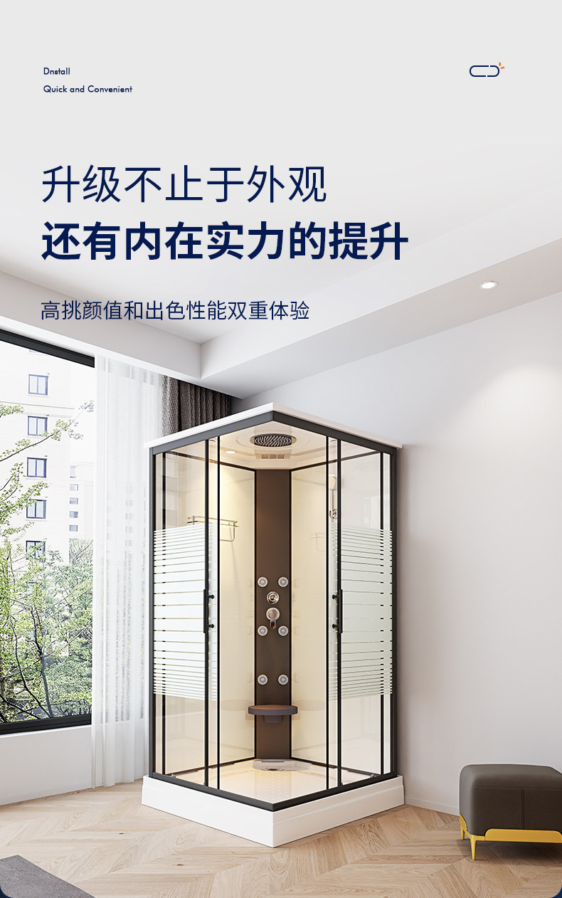 Shower Room Integrated with Bottom Basin Right-Angle Base for the Elderly Bedroom Warm Indoor Square Assembled Bath Room