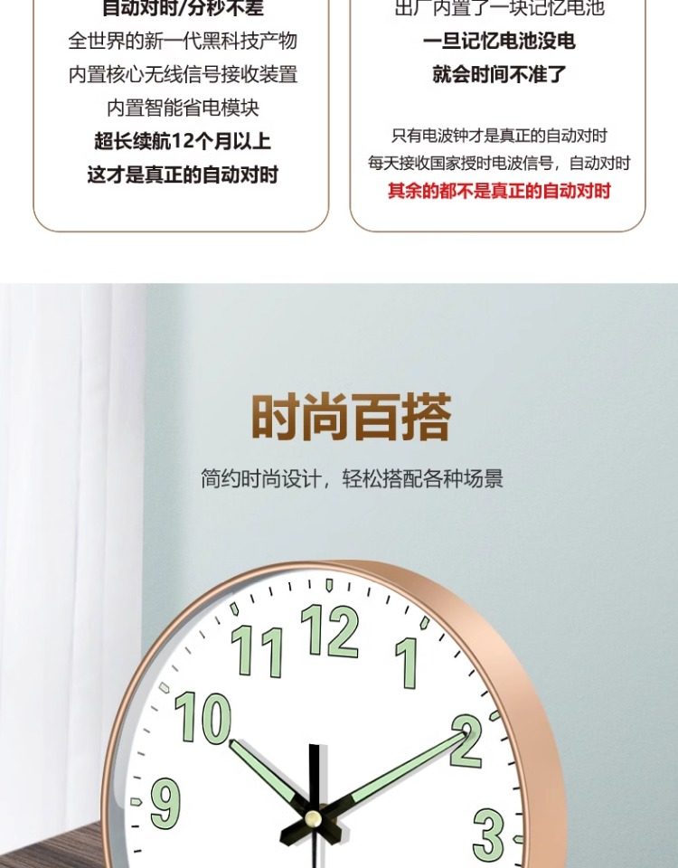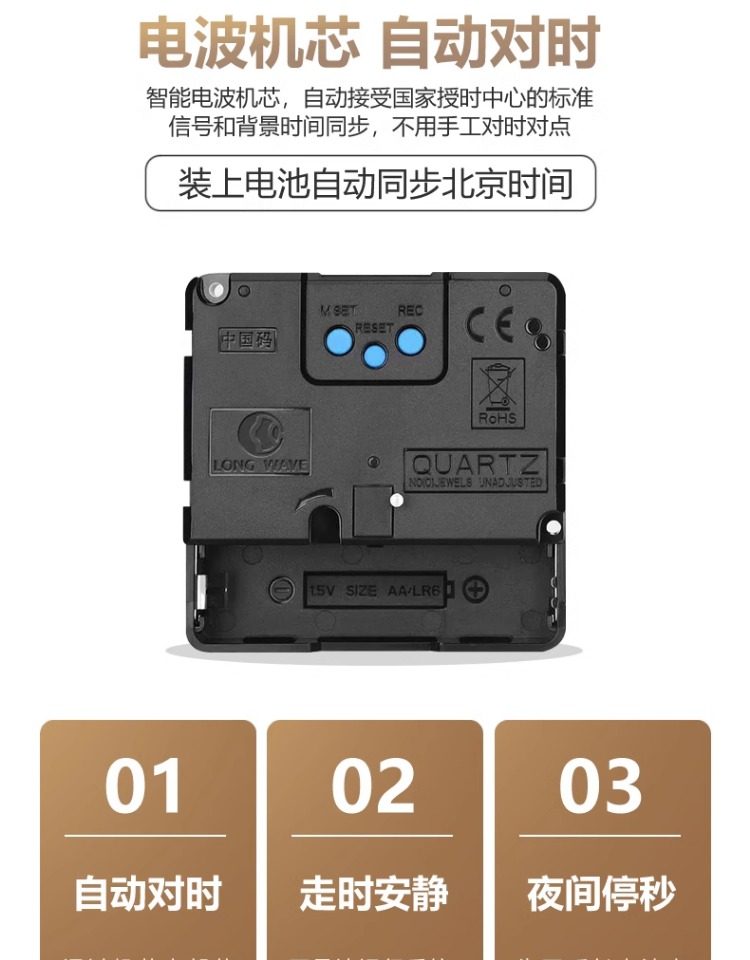 Luminous Automatic Time-Setting Wall Clock, Modern Creative Clock, Bedroom Living Room Radio-Controlled Clock, Calendar Clock, Light Luxury Wall Clock