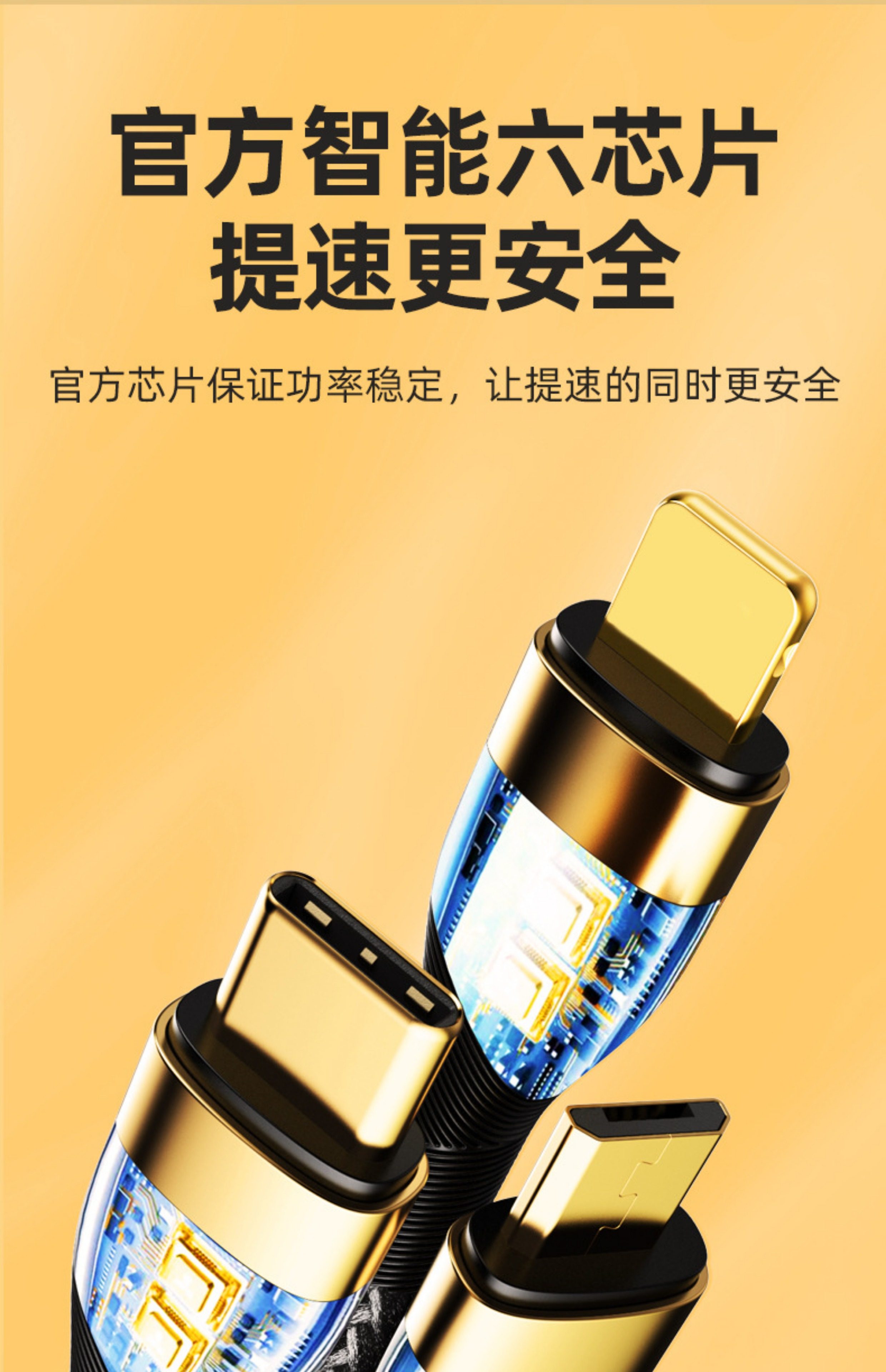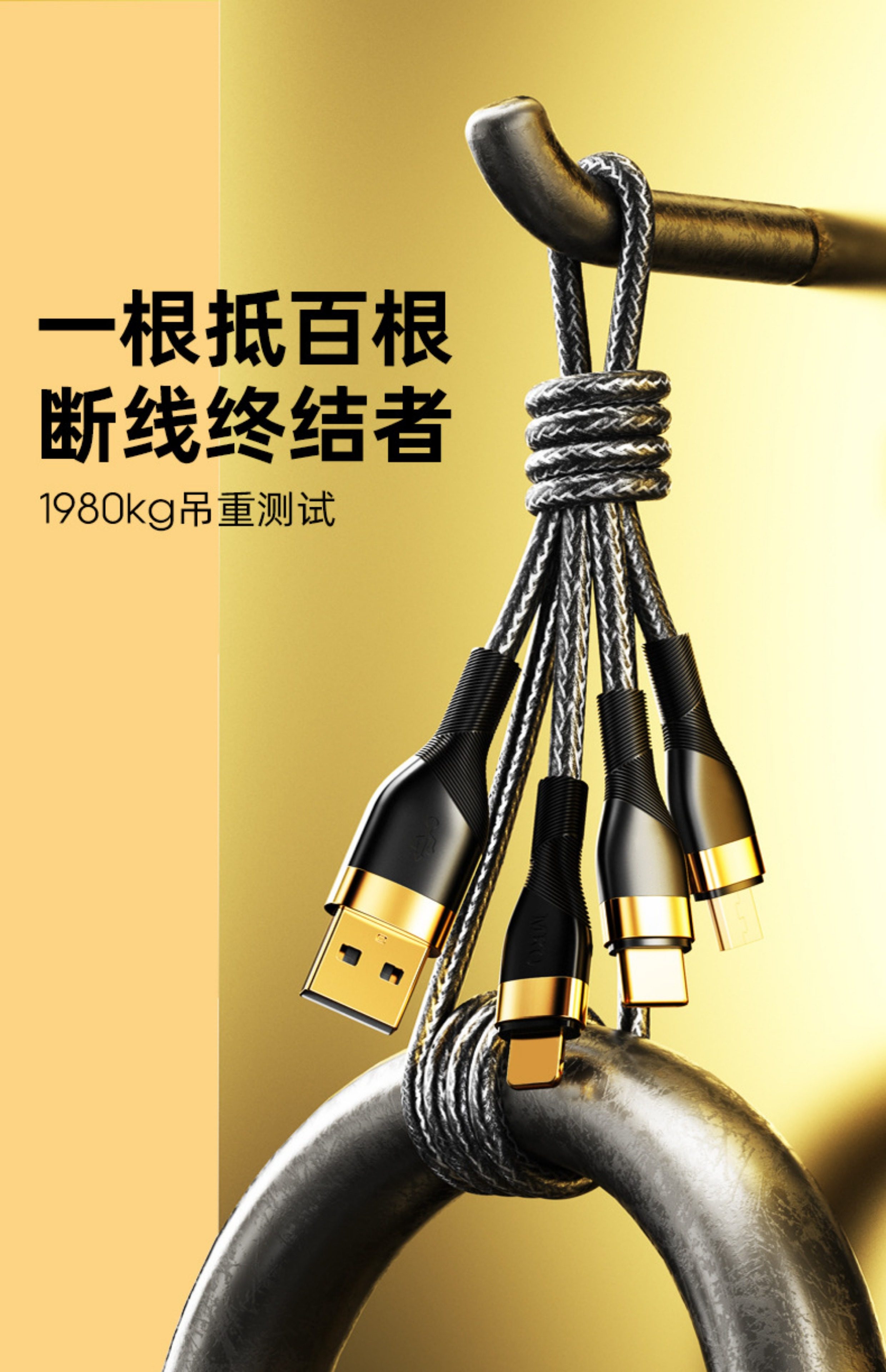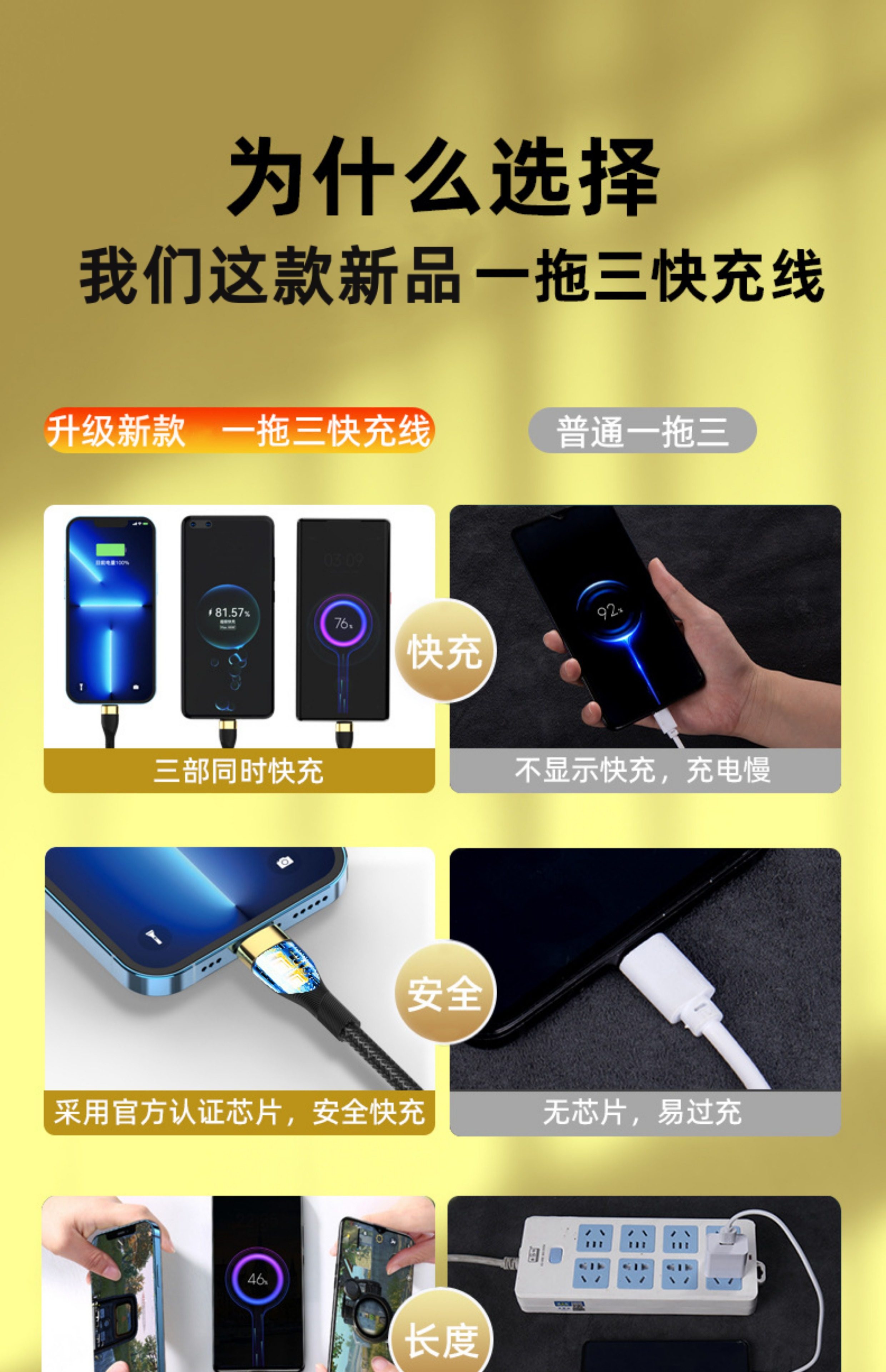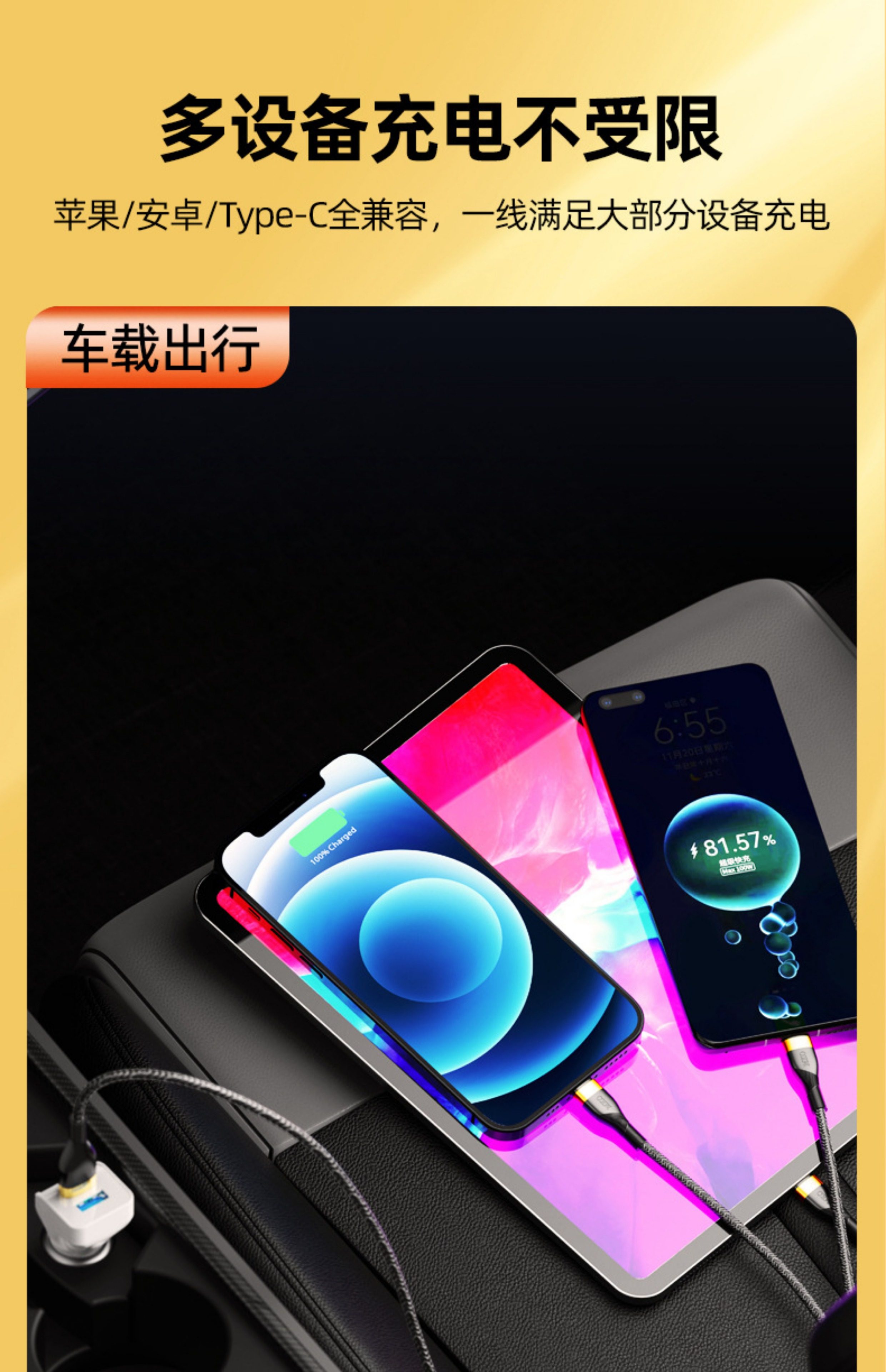 Super Fast Charging 8800W Charging Cable, One-To-Three USB Car Data Cable Charger, 6A Charging Suitable for Apple, Huawei, Honor, Samsung, Multi-Head 3-in-1 Multifunctional Power Bank Plug