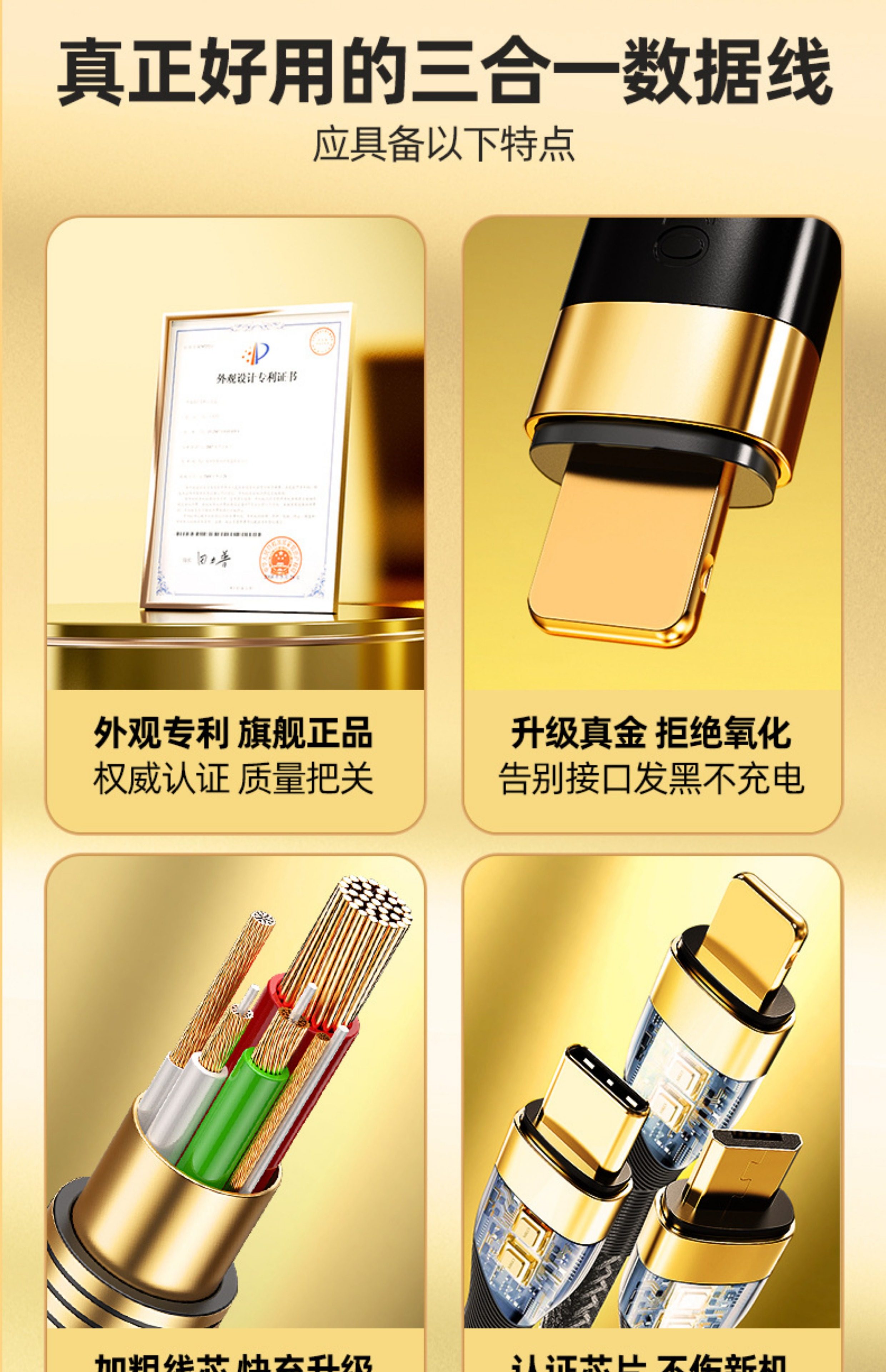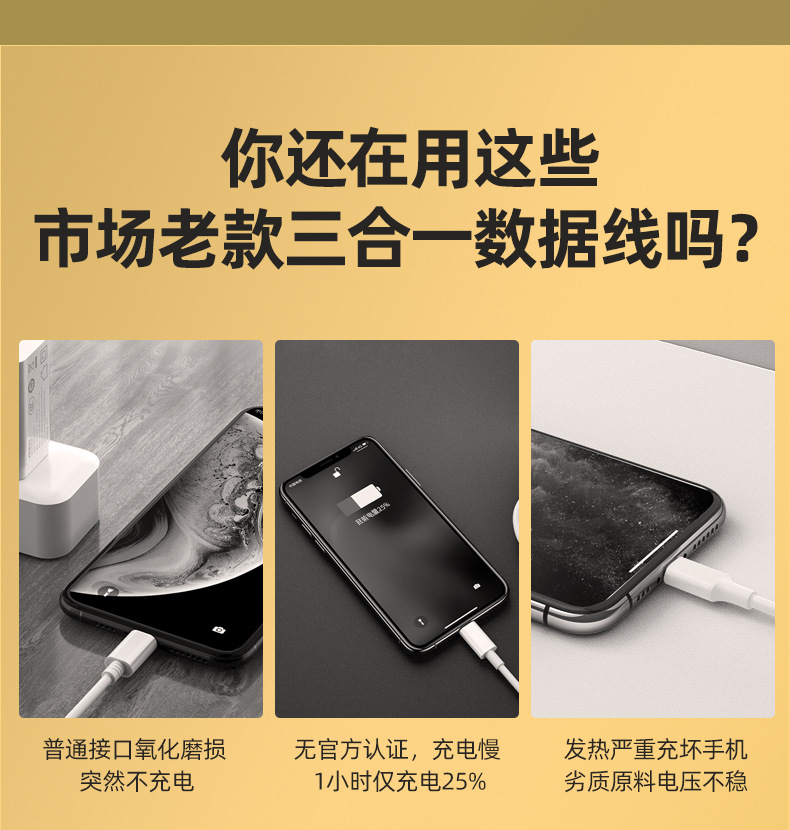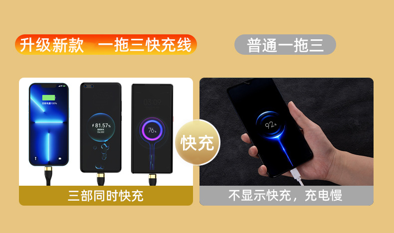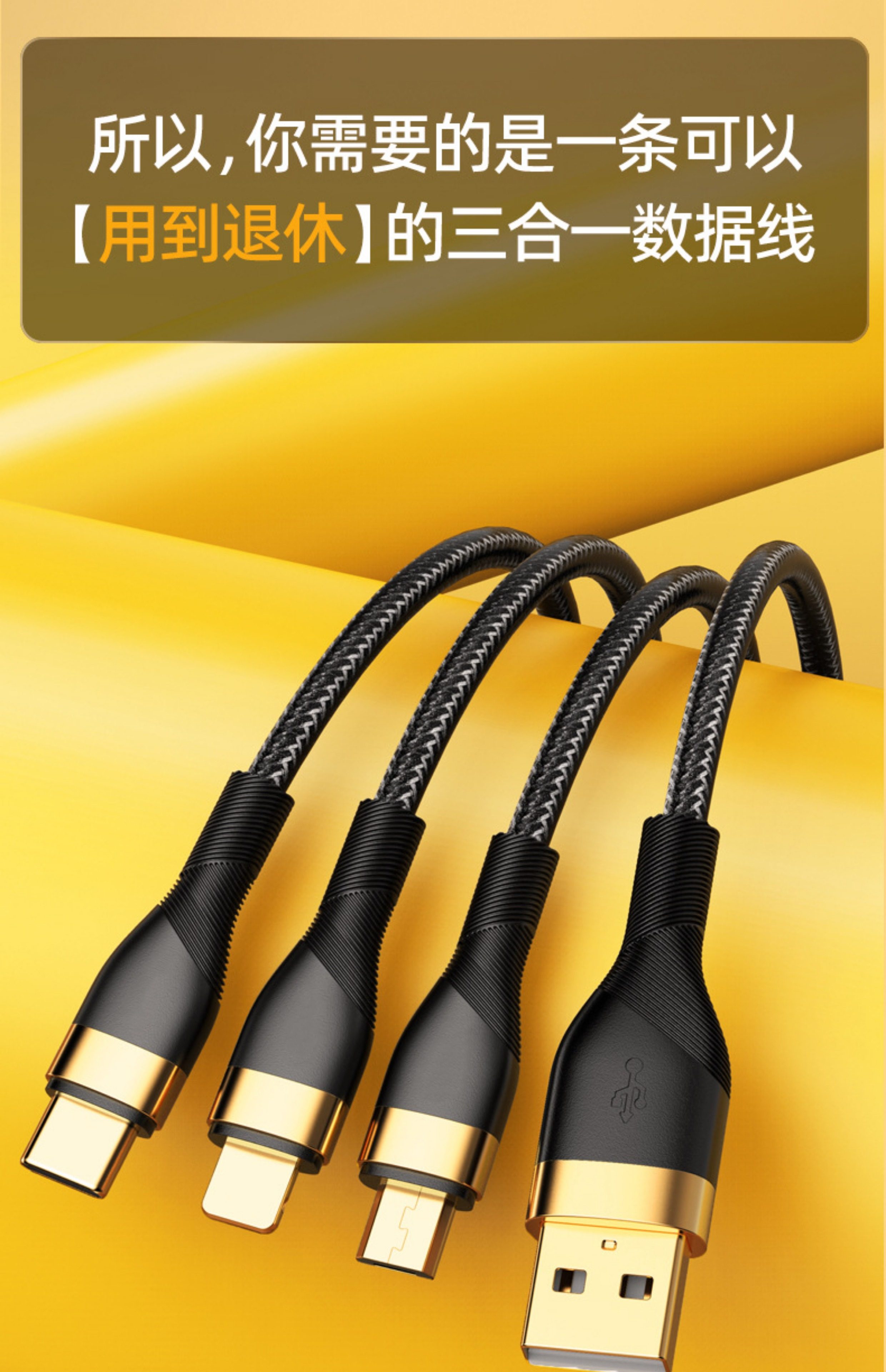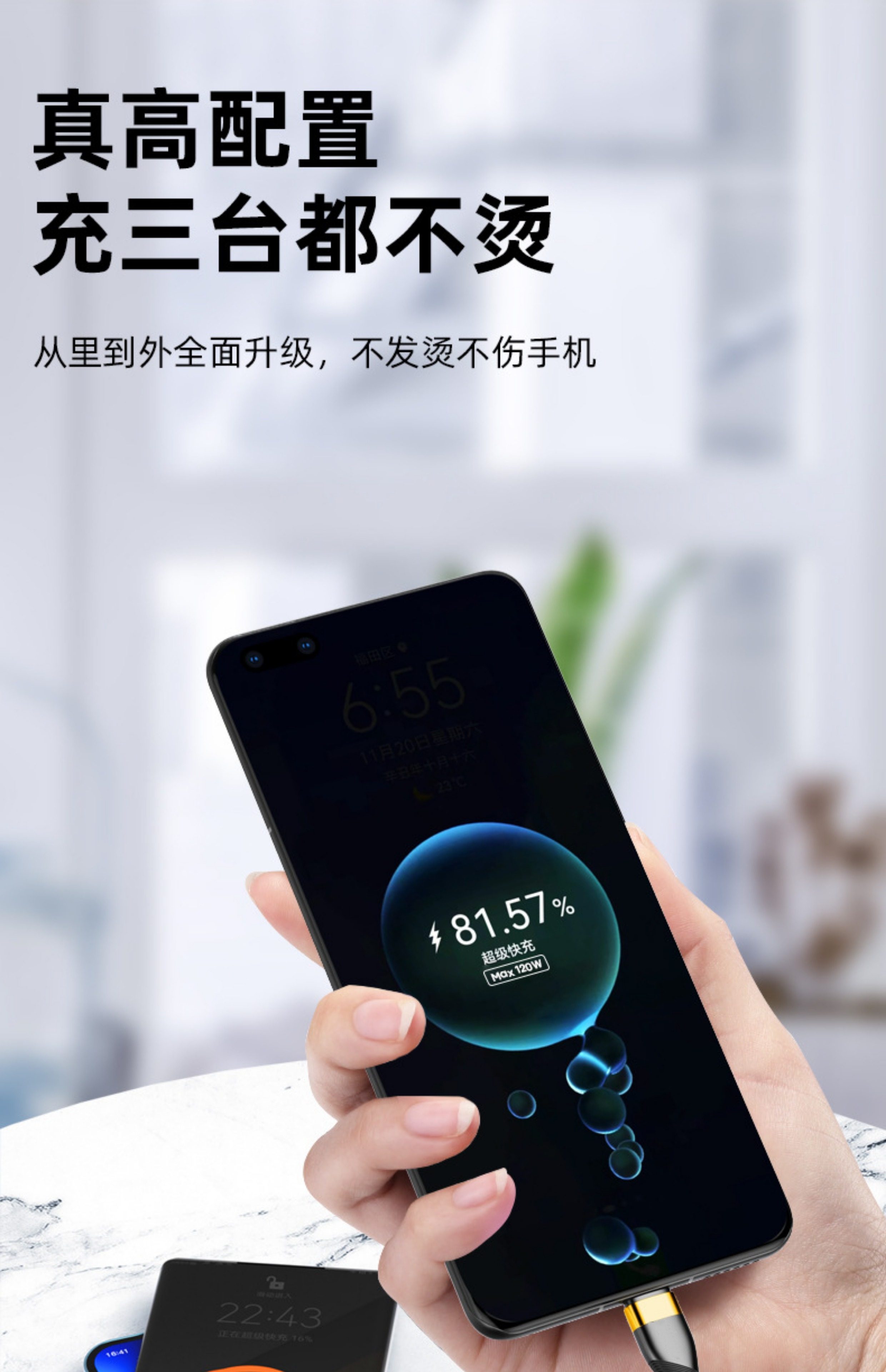 Super Fast Charging 8800W Charging Cable, One-To-Three USB Car Data Cable Charger, 6A Charging Suitable for Apple, Huawei, Honor, Samsung, Multi-Head 3-in-1 Multifunctional Power Bank Plug
