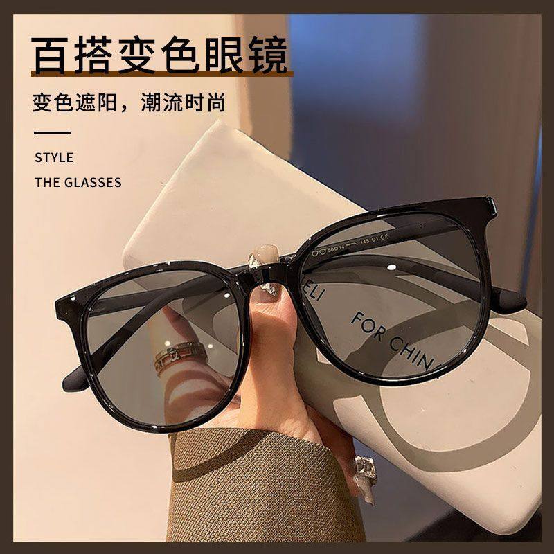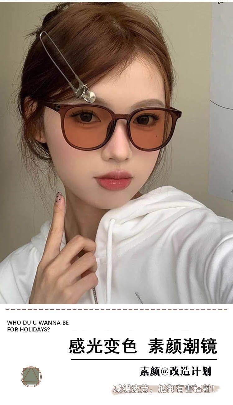 Ultra-Light Photochromic Cold Tea-Colored Frame Women's Sunglasses Can Be Fitted with Prescription Lenses, Slimming, Anti-Blue Light, Eye-Protecting Sunglasses for Men