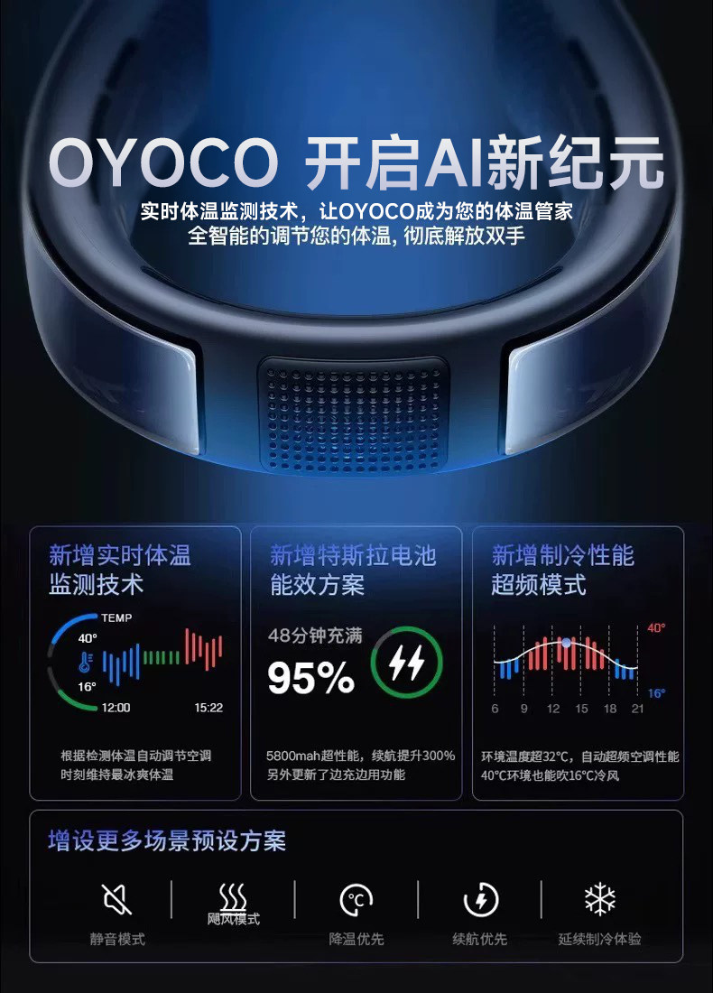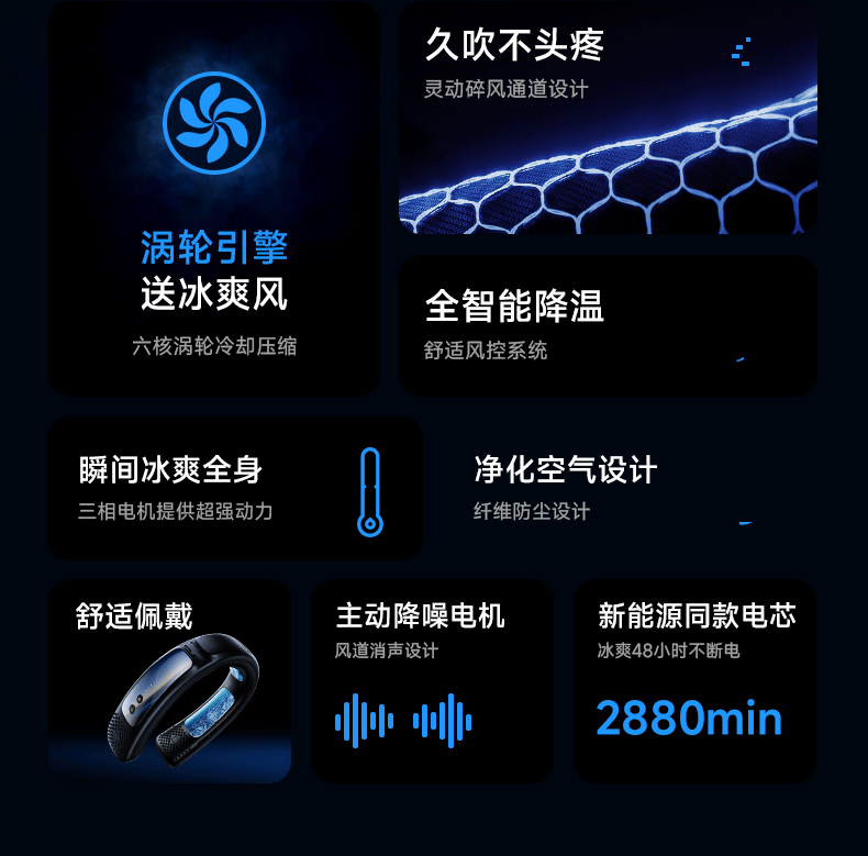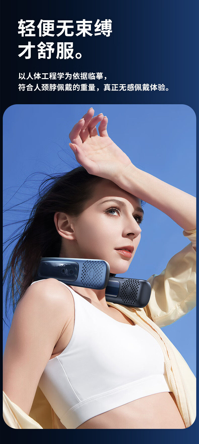 Neck-Hanging Fan Air Conditioner Cooling 2025 New Model Silent Long-Lasting Strong Wind Air Conditioning Fan USB Rechargeable Bladeless Mini Portable Outdoor Student Neck-Hanging Office Cooling Device