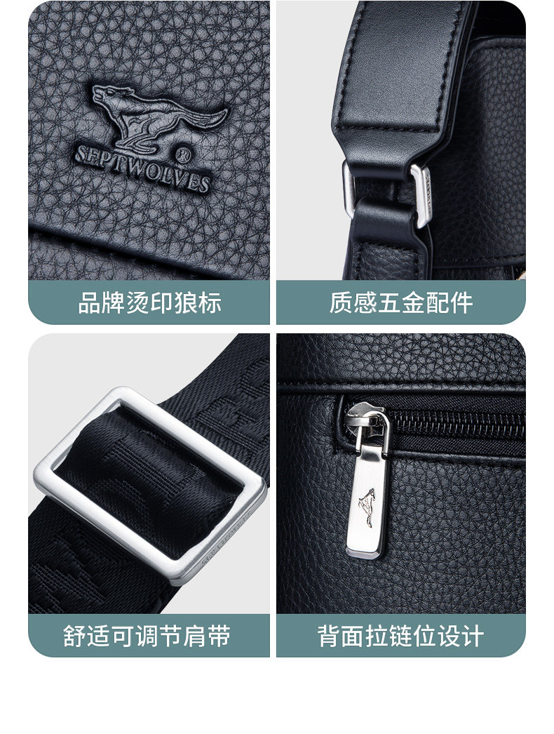 Septwolves Leather Crossbody Bag 2025 Men's Large Capacity Waterproof Business Casual Multifunctional Shoulder Briefcase