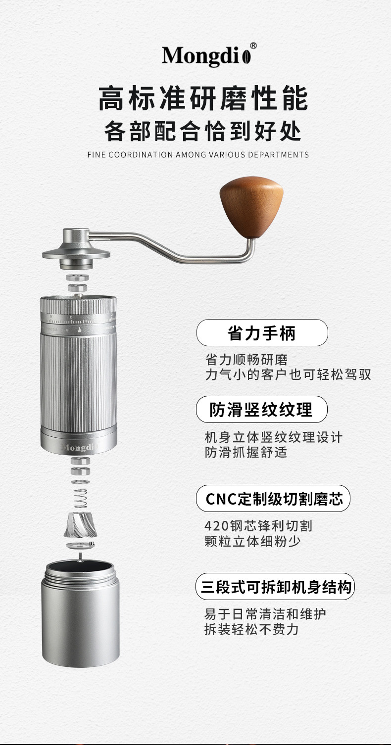 Mongdio Hermit X1 Hand-Cranked Coffee Grinder Coffee Bean Grinder Manual Coffee Machine Portable Hand Grinder