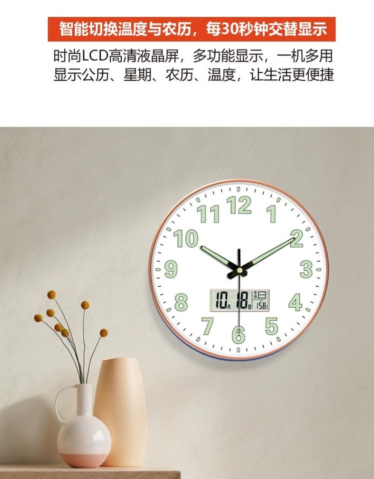 Living Room Perpetual Calendar Modern Creative Quartz Clock Luminous Wall Clock Home Clock Simple and Elegant Radio-Controlled Light Luxury Clock