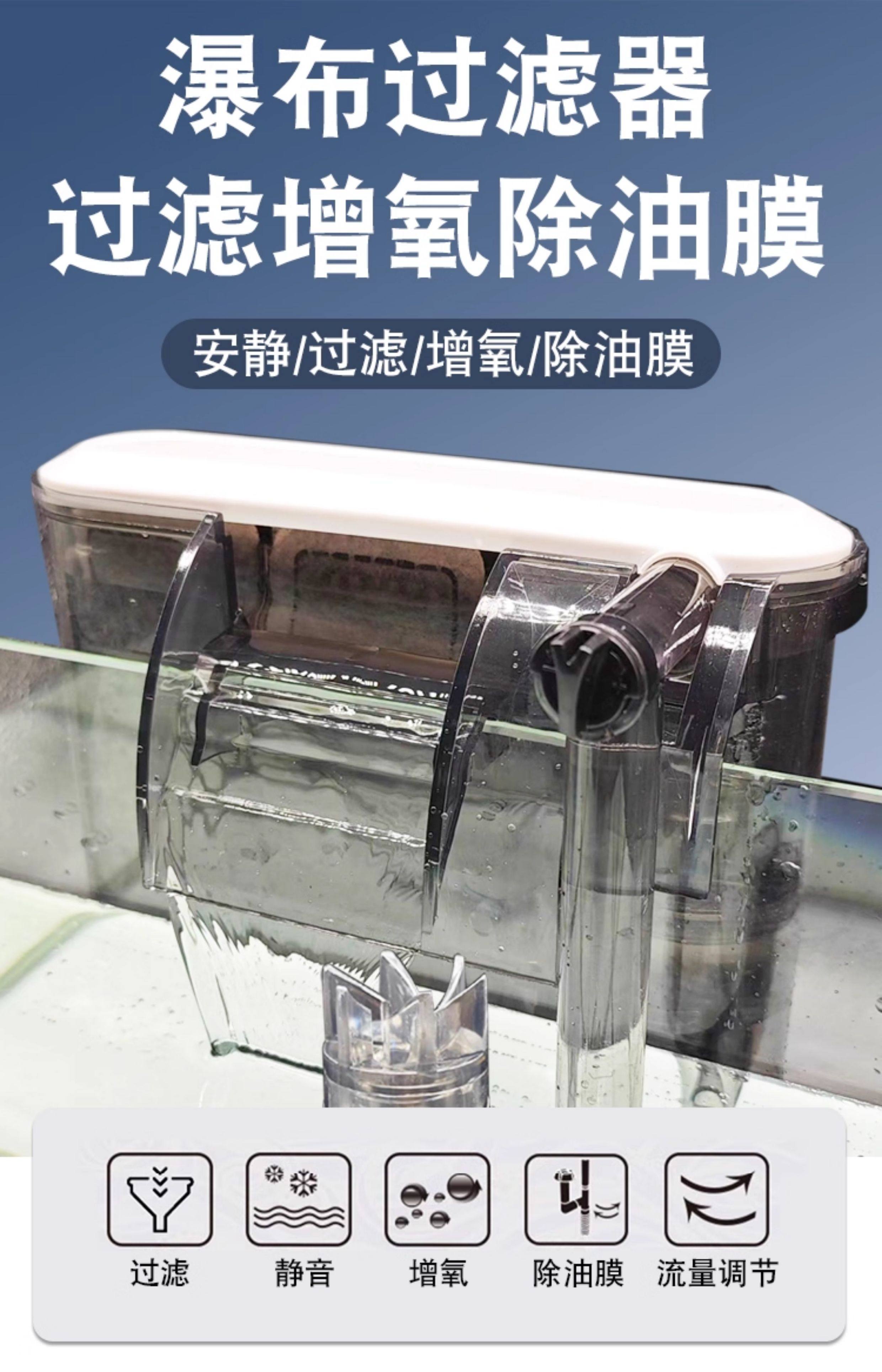 Fish Tank Filter, Filtration Circulation Water Pump, Oxygen Generator All-In-One Machine, Small Fish Tank Wall-Mounted Small Three-In-One Waterfall Type