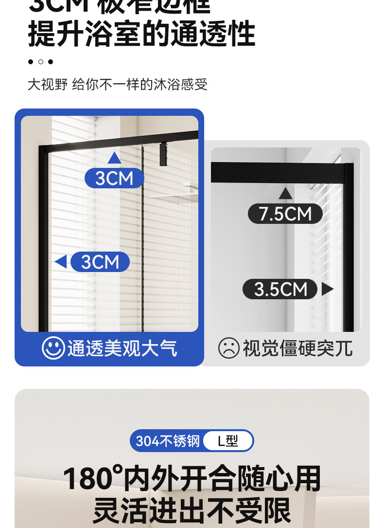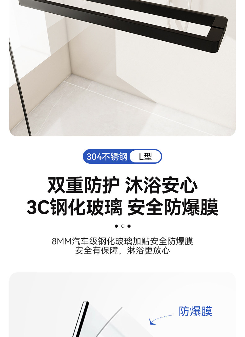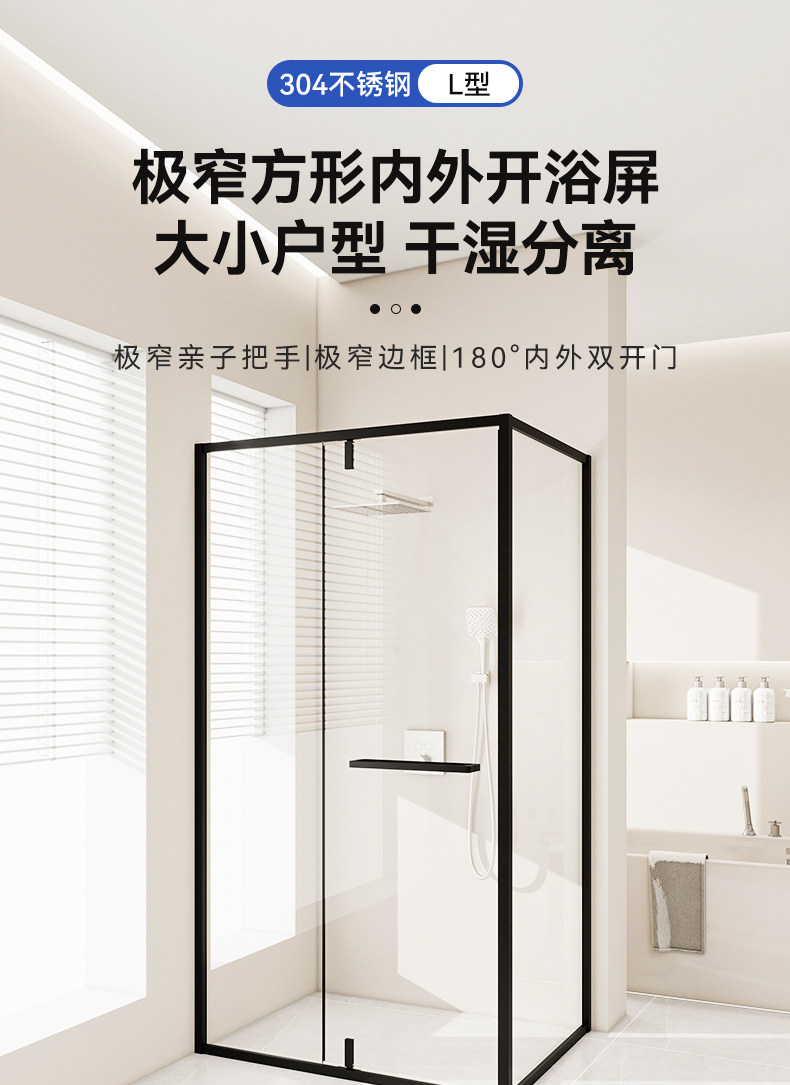 L-Shaped Shower Room Glass Partition Bathroom Glass Door Bathroom Screen Simple Home Bath Room Shower Flat Opening