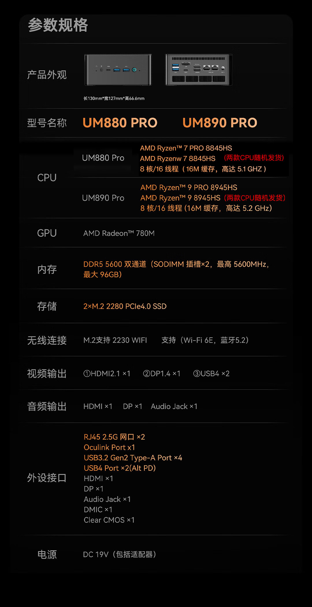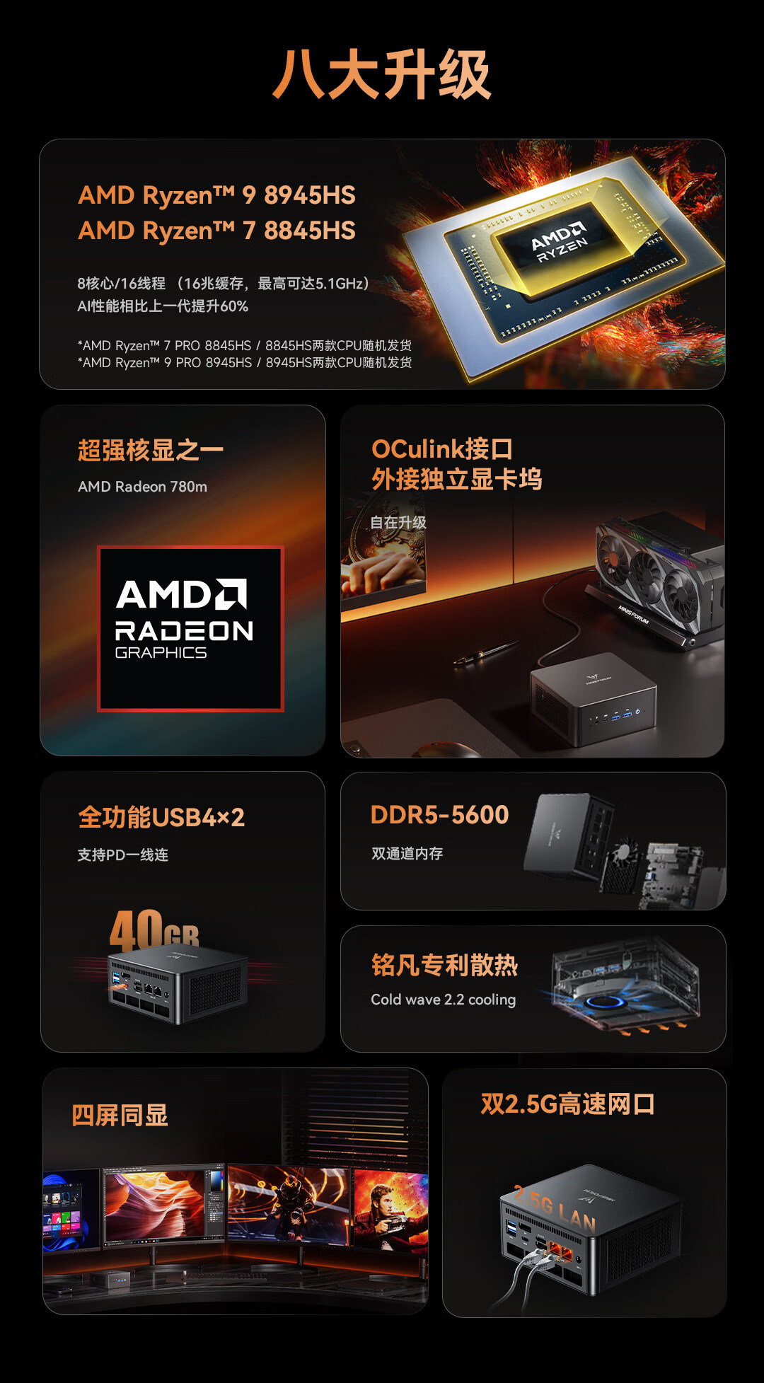 | Color Classification | Um880Pro National Standard (R7-8845Hs),Um880Pro National Standard + Oculink Graphics Card Docking Station,Um890Pro National Standard (R9-8945Hs),Um890Pro National Standard + Oculink Graphics Card Docking Station |