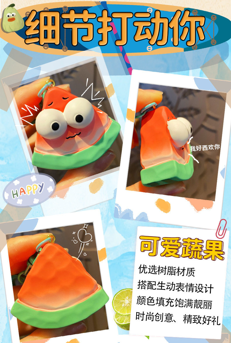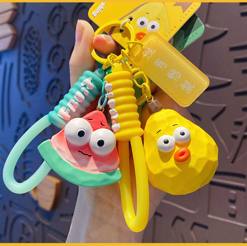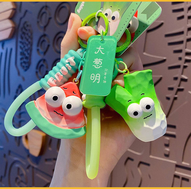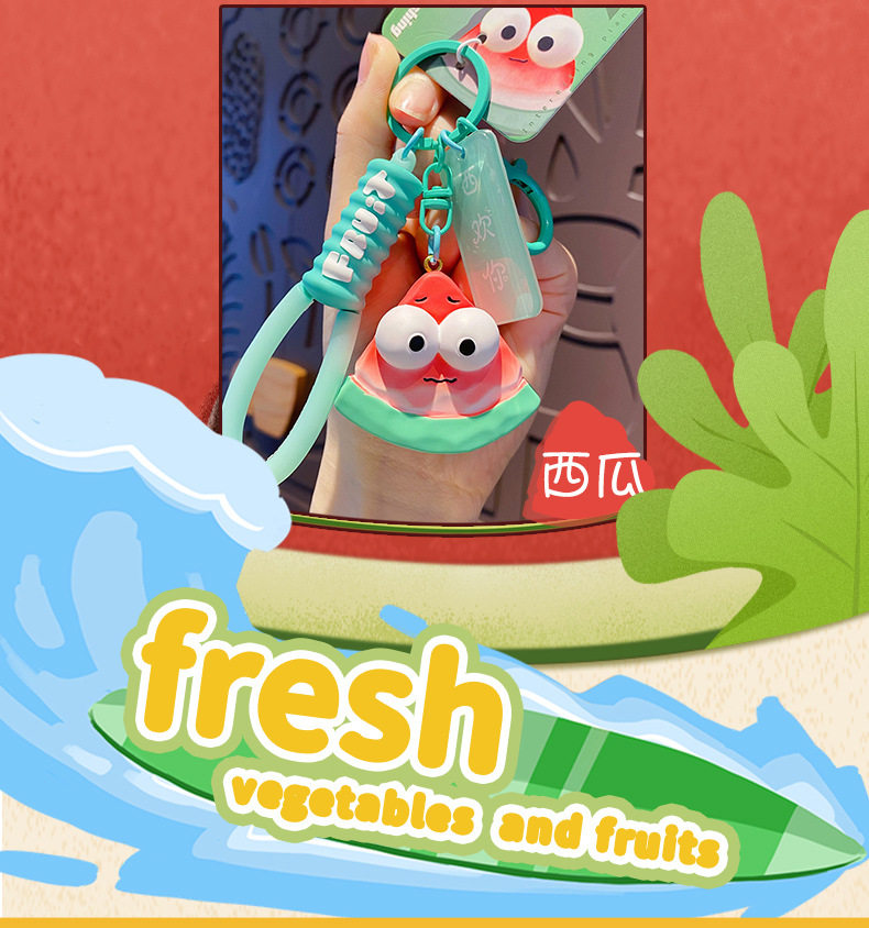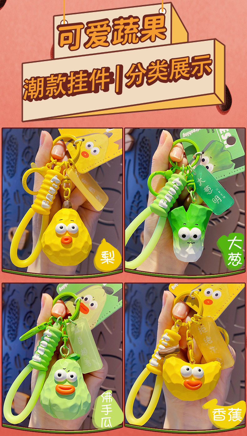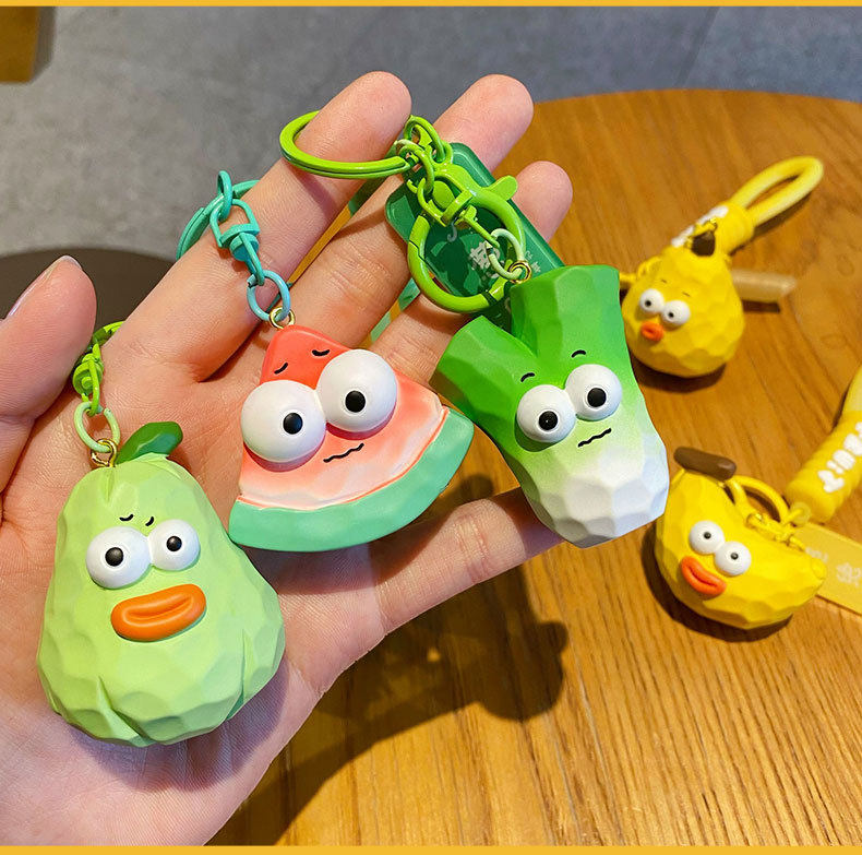 Trendy Wood Carving Fruit and Vegetable Keychain Car Pendant for Women, Exquisite, Creative, Cute, Backpack Accessory for Couples, Boys' Hanging Ornament