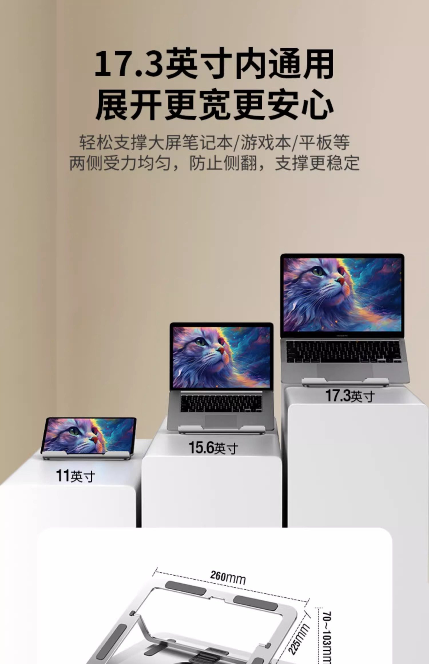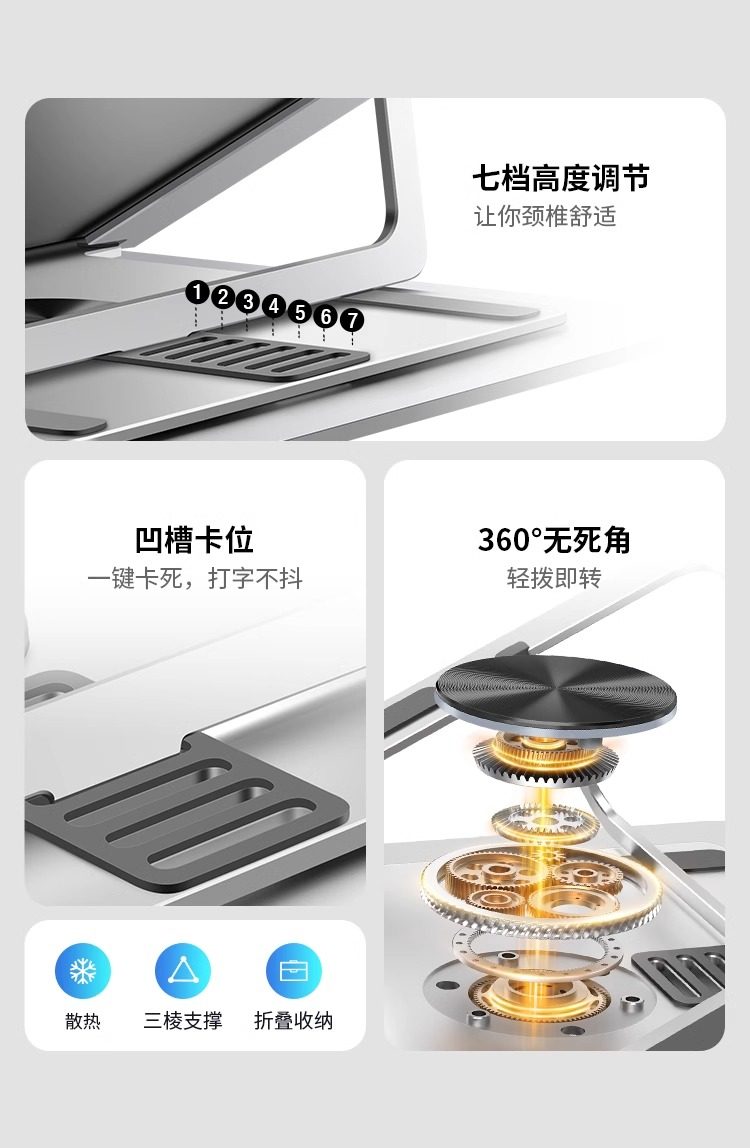 | Color Classification | Space Gray[Aluminum Alloy]Folding Lift_4-Speed Adjustment_Upgraded Stability_Universal 17.3inch Notebook /Tablet,Temperament Silver[Aluminum Alloy]Folding Lift_4-Speed Adjustment_Upgraded Stability_Universal 17.3inch Notebook /Tablet,Upgraded Model[Aluminum Alloy]360°Rotate_Folding Adjustment_Seven-Speed Adjustment_Upgraded Stability_Universal 18inch Notebook,Space Gray[Upgraded Model]Large Cooling Holes_Foldable and Portable_Infinitely Adjustable_Neutral 18inch Notebook,Flagship Model[Telescopic Support Rod]Foldable & Portable | Stepless Height Adjustment | Universal 18inch Laptop Stand,Pure Enjoyment[Aluminum Alloy]Lay Flat Without Falling_360°Rotate_Foldinglift_Infinitely Adjustable_Universal 18inch Notebook |