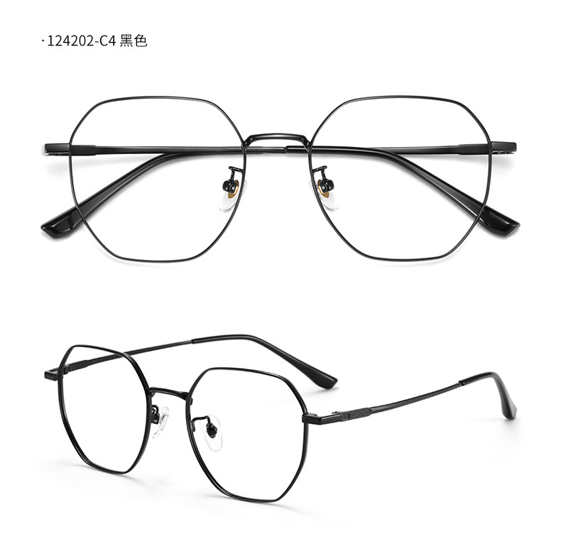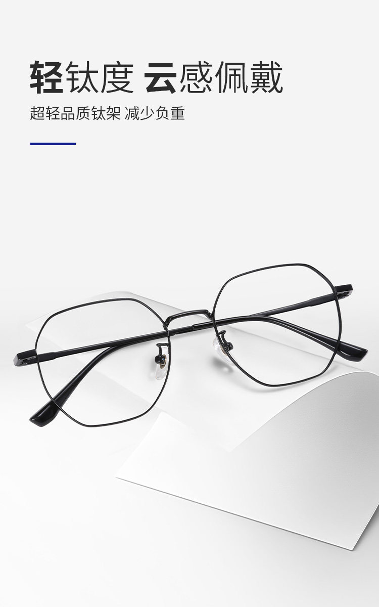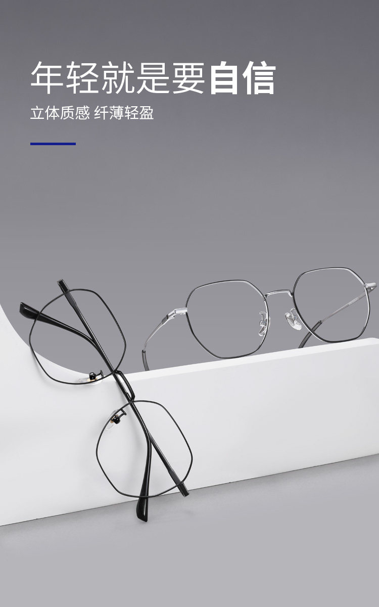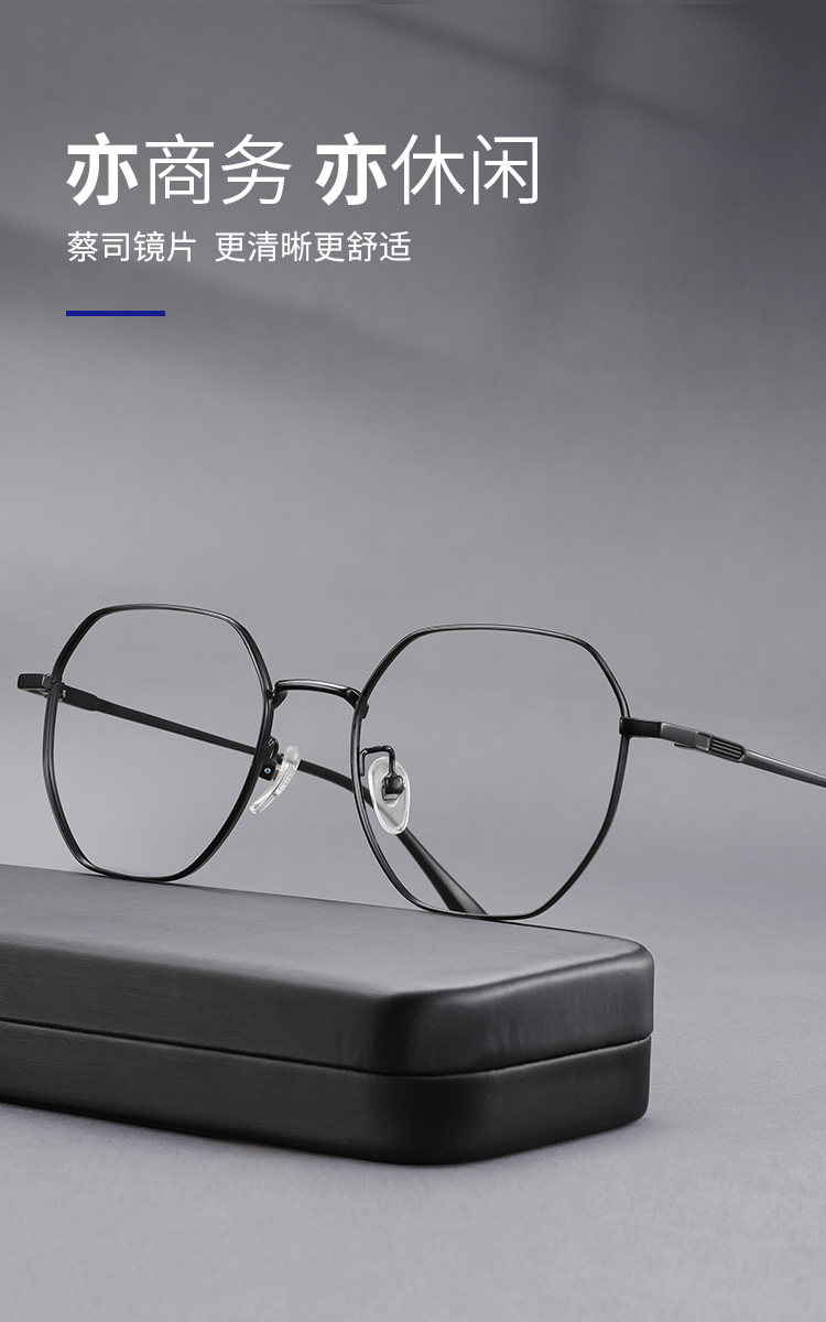 Kagamine Ultra-Light Pure Titanium Myopia Glasses for Men, Can Be Customized with Prescription, Professional Online Glasses Fitting, Black Polygonal Eyeglass Frame