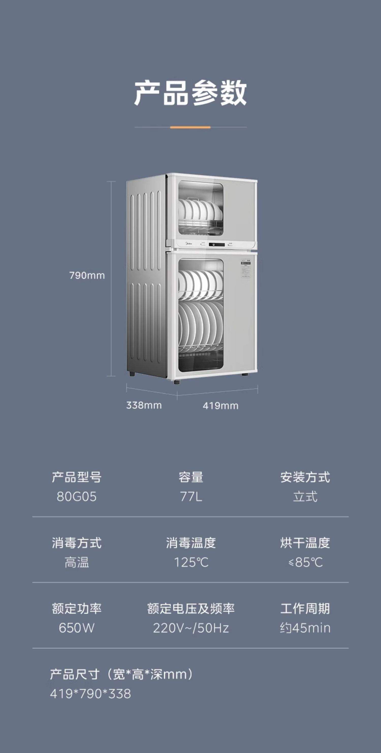 Midea Sterilizer Cabinet for Home Use, Small Drying Integrated Cabinet, Maternal and Infant Grade, for Baby Bottles, Vertical Kitchen Utensil Storage, Bowl and Chopstick Cabinet