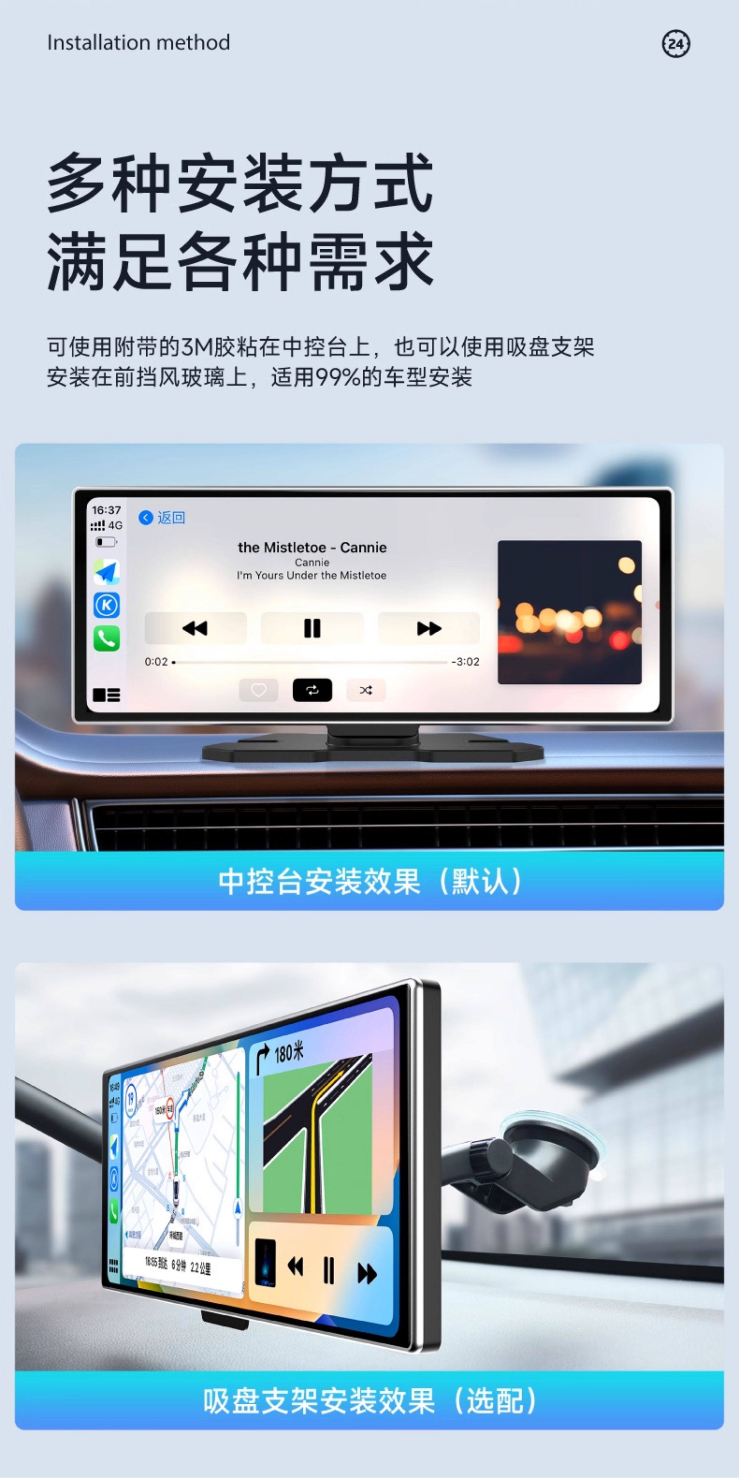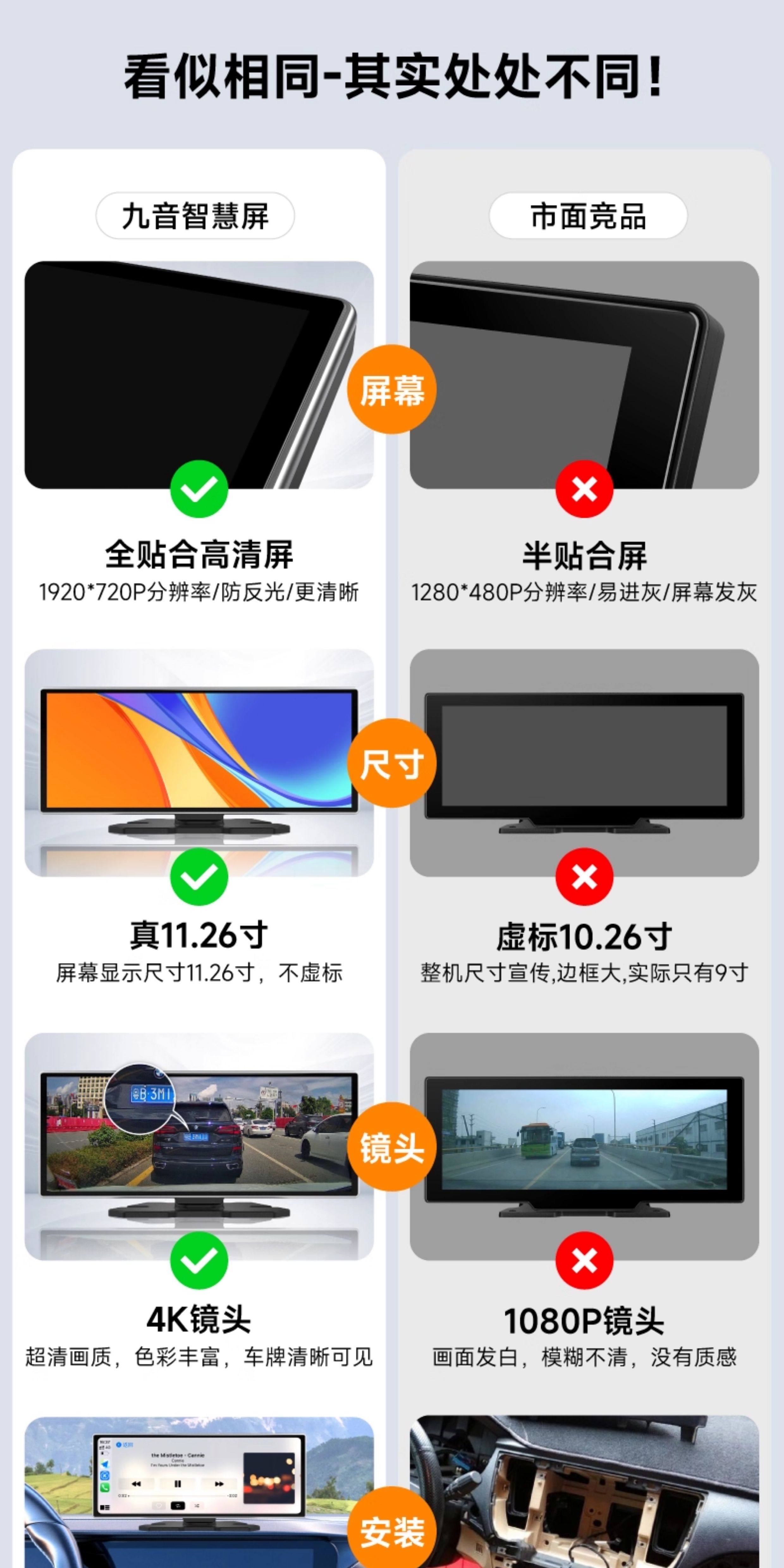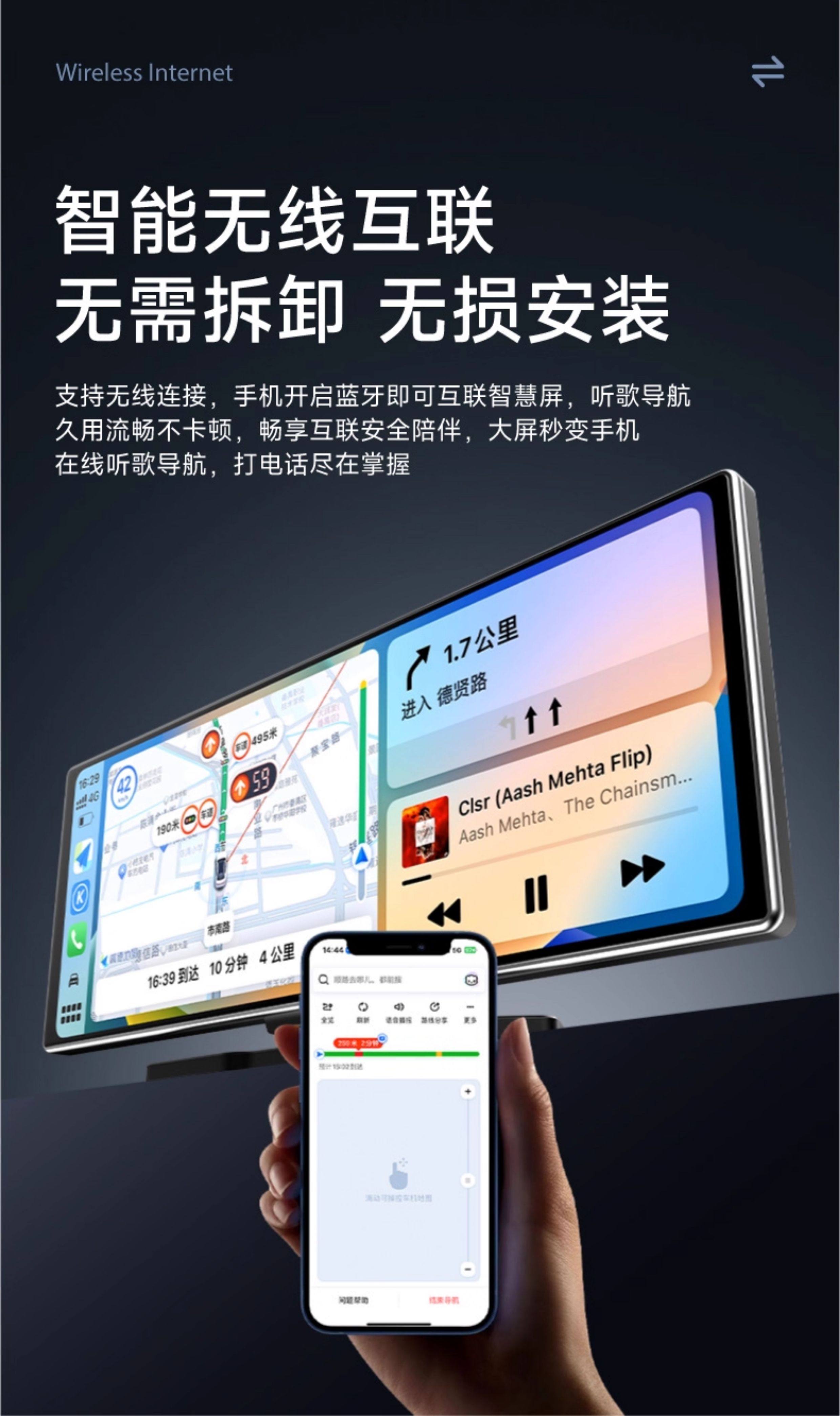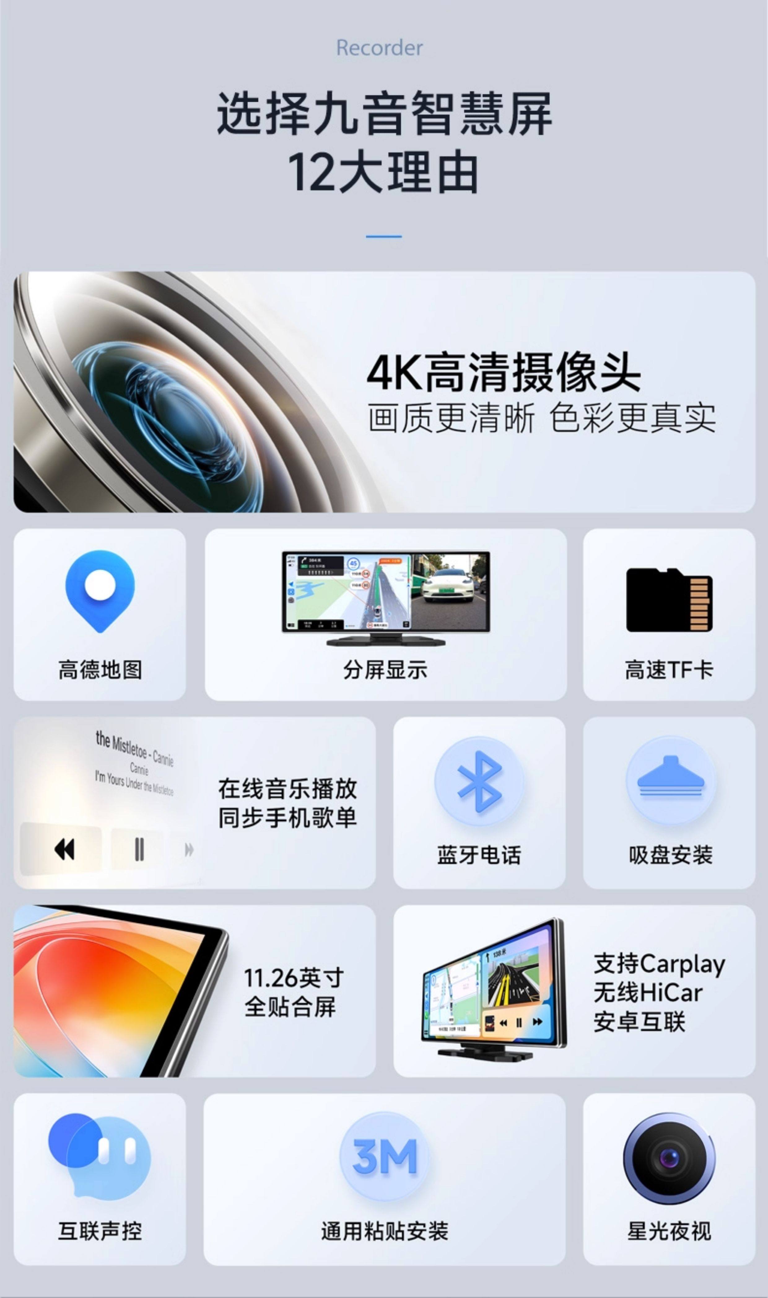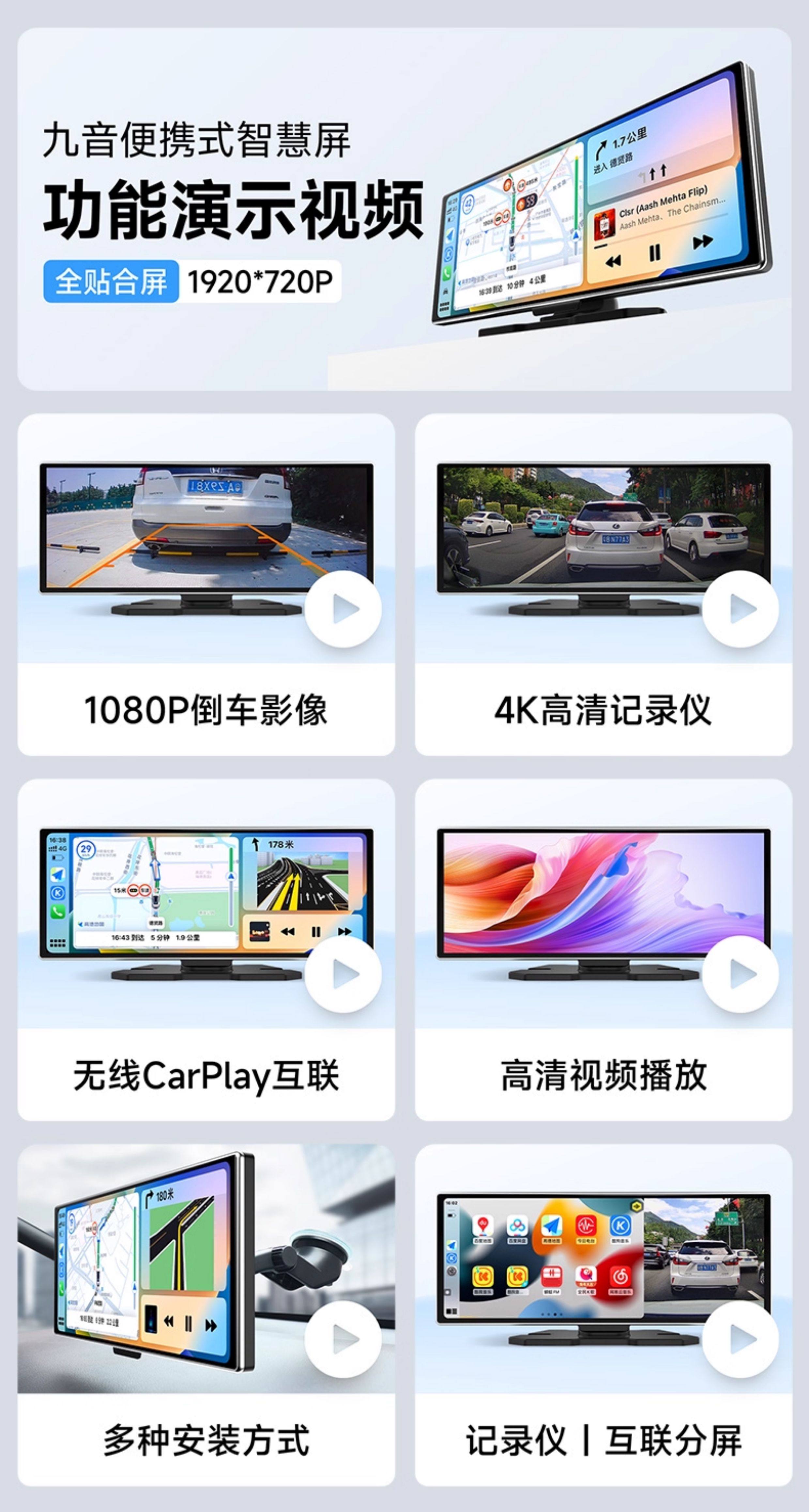 Jiuyin Carplay Portable Car Screen 2025 New Model Smart Screen Dashboard Driving Recorder Car Navigation