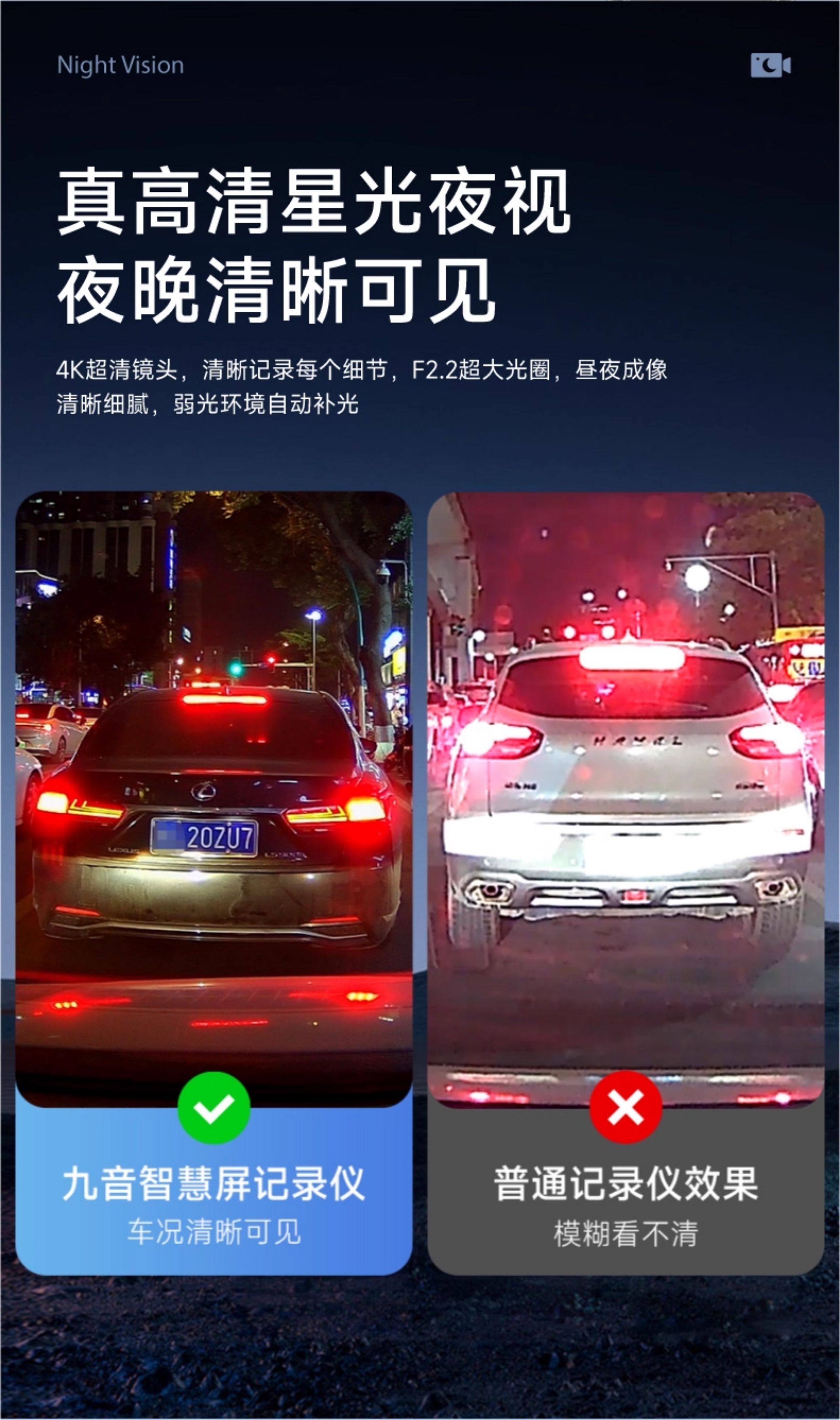 | Function | Enhanced Night Vision,Loop Recording,Bluetooth,Reversing Image,Night Vision Fill Light,Gps Navigation,Parking Monitoring,Before and after Recording,Short Video Sharing,Screen Deformation Correction |