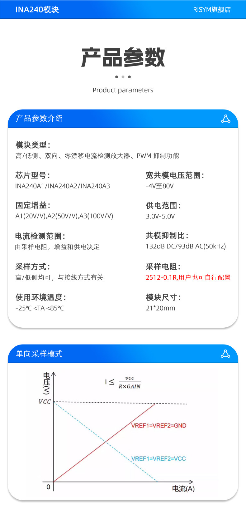 Ina240 Module Ina240A2 A1 A3 Current Detection Amplifier Current Monitoring Bidirectional Current Acquisition