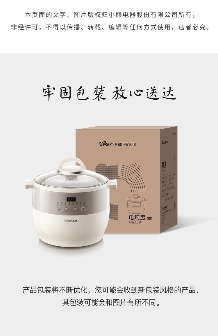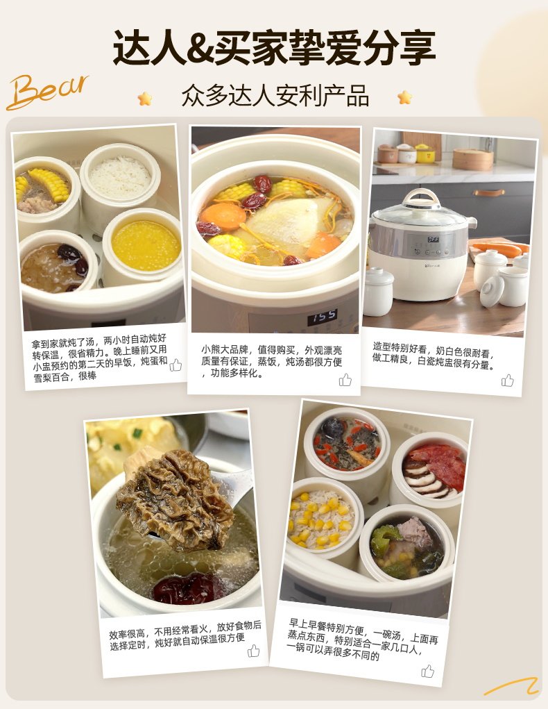 Bear Electric Stew Pot Fully Automatic Household Water-Separation Stew Cooker Ceramic Stew Pot for Cooking Bird's Nest Soup and Porridge