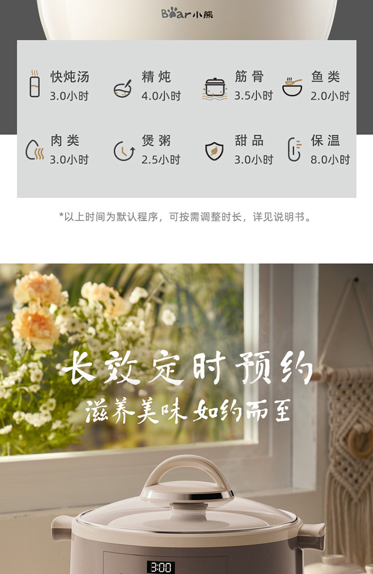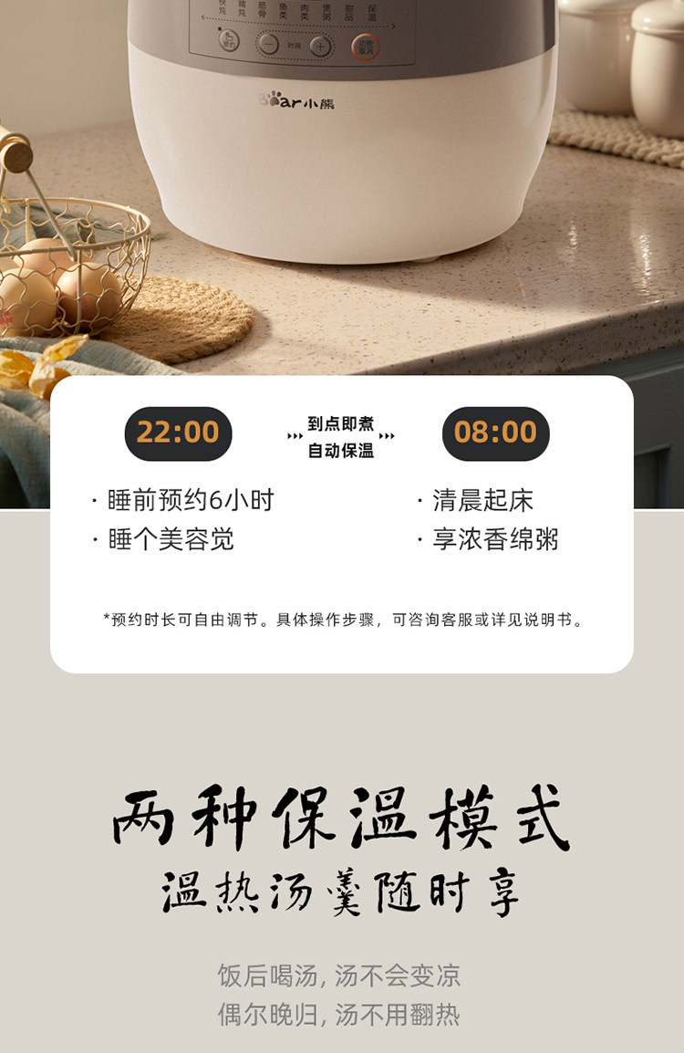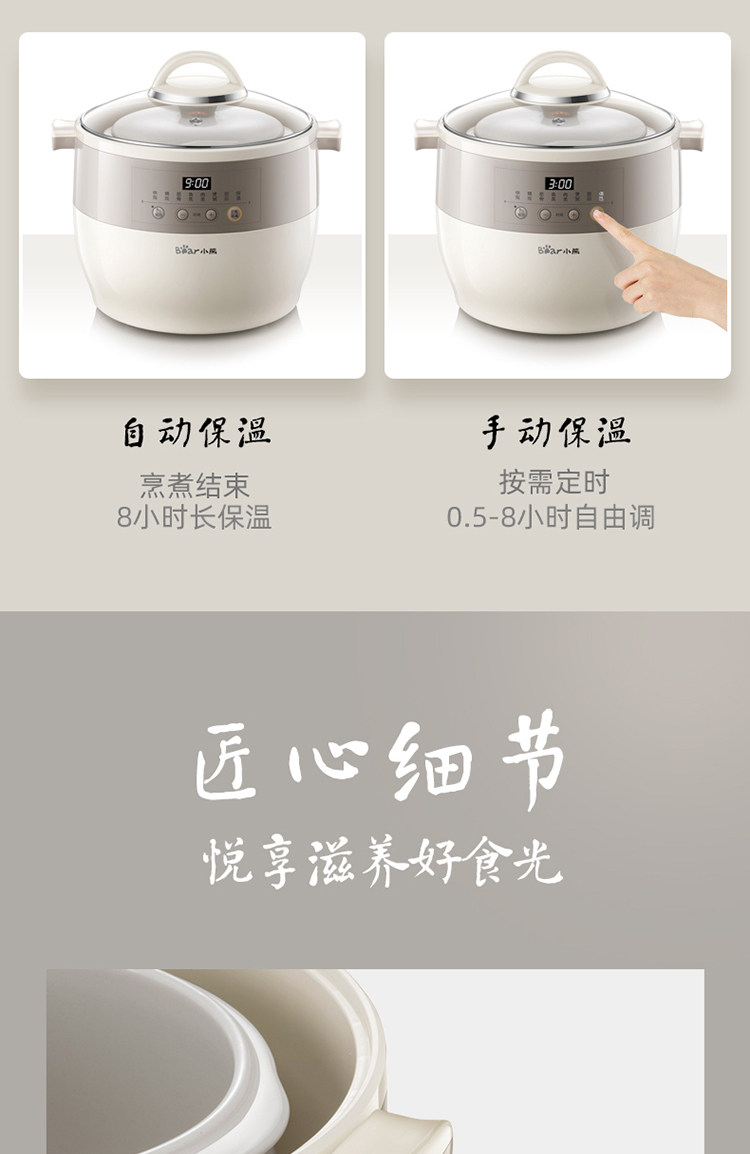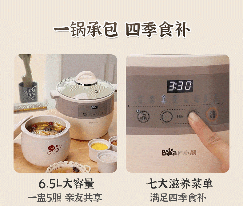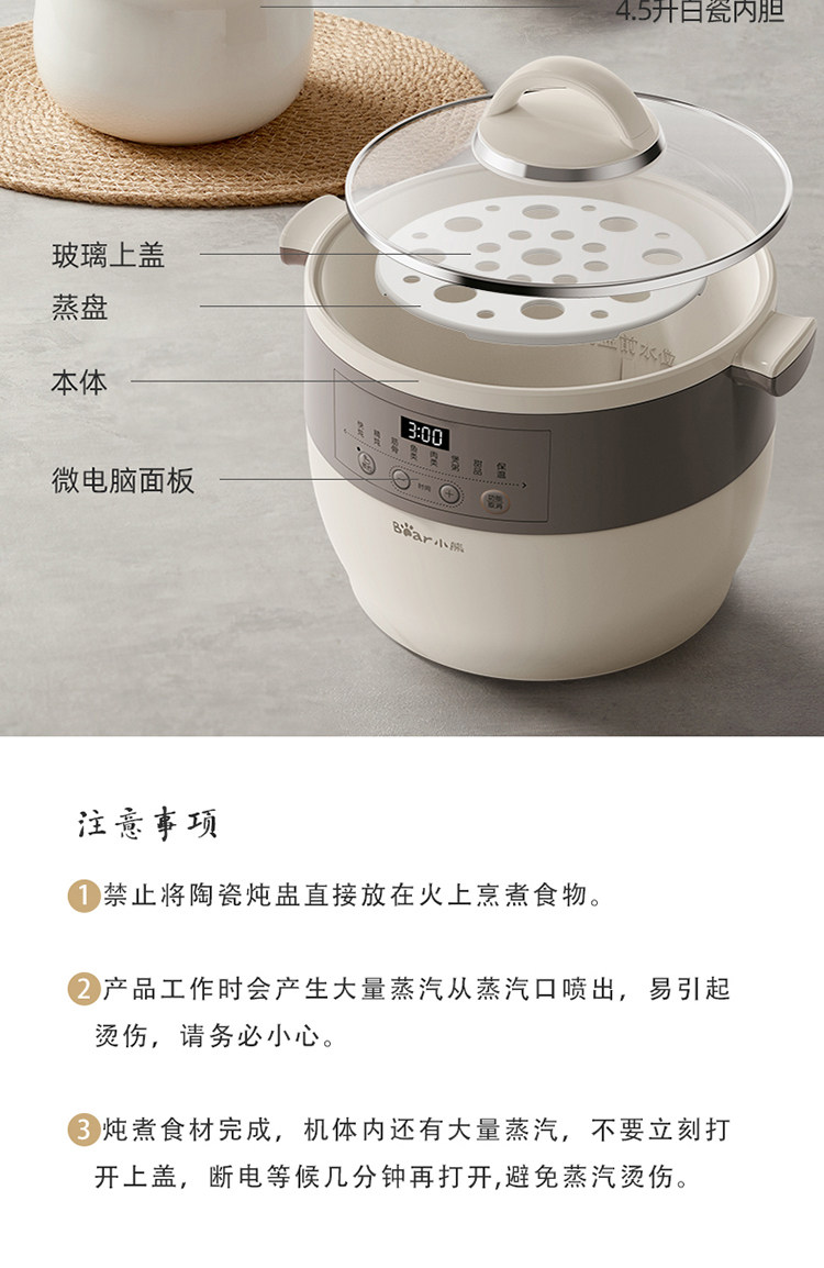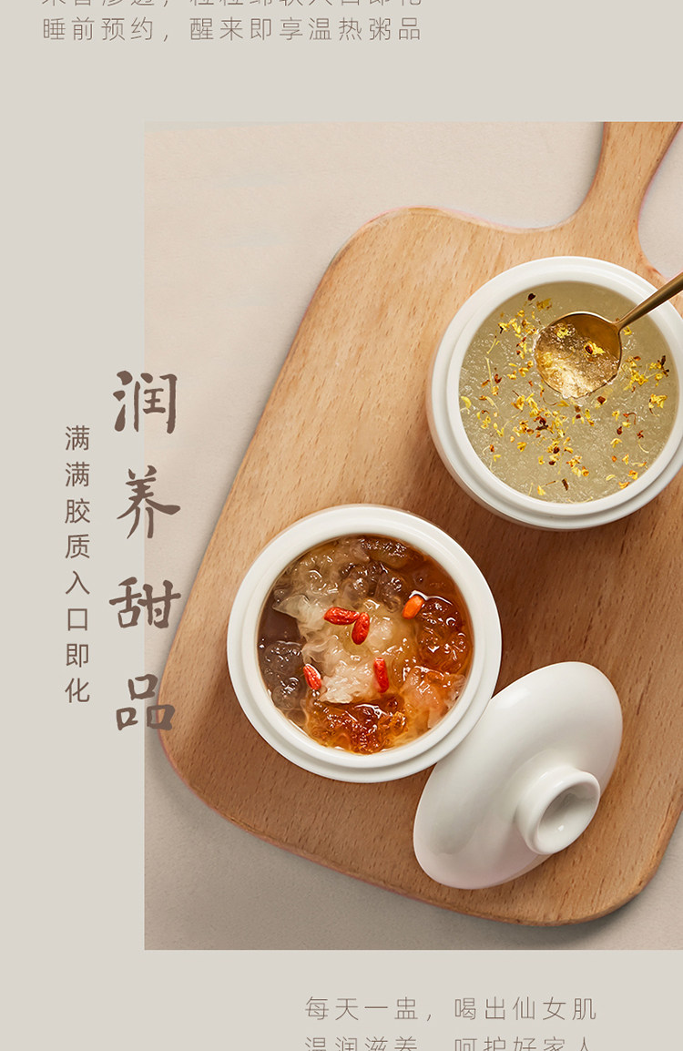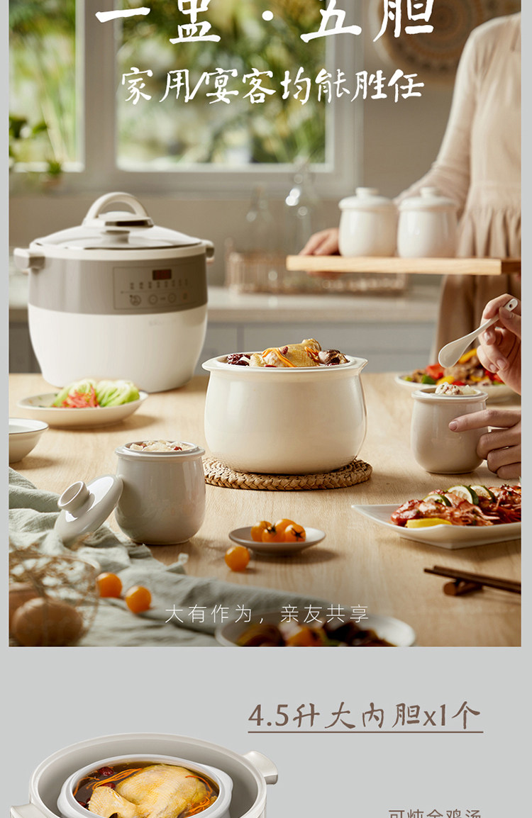 | Menu Function | Cook Multigrain Porridge,Stewed Fish Maw,Cooking Complementary Foods,Make Nutritious Soup,Bird's Nest,Stewed Dessert |