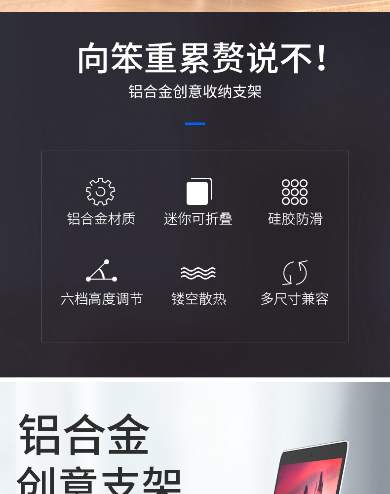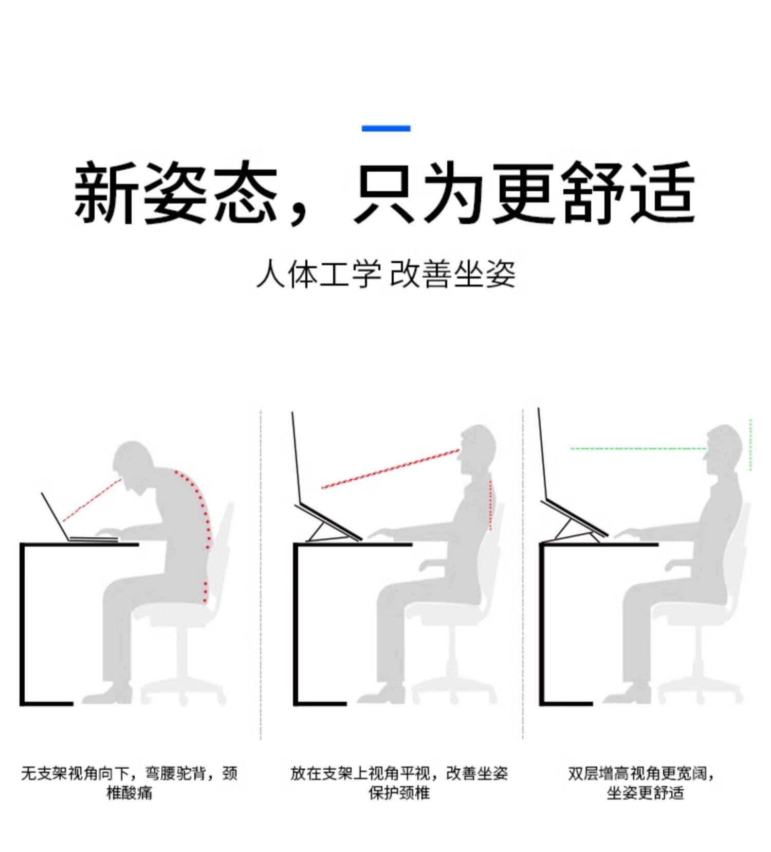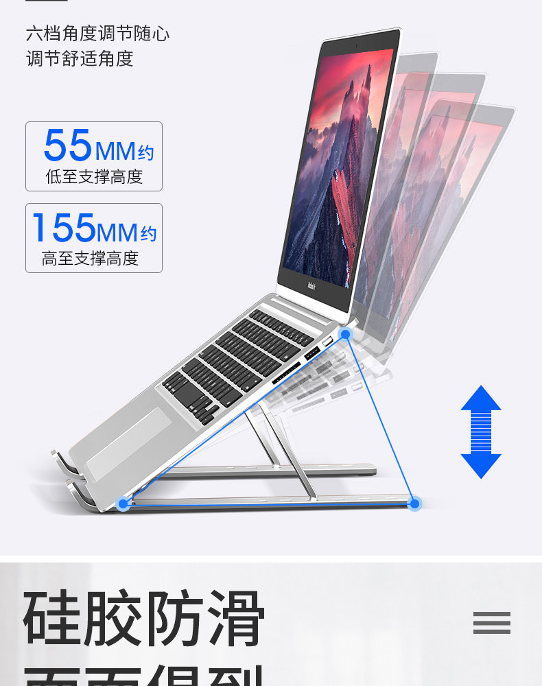 Laptop Stand Bracket Desktop Heightening Radiator Aluminum Alloy Foldable Portable Adjustable Neck Support Office Height Adjustable Base