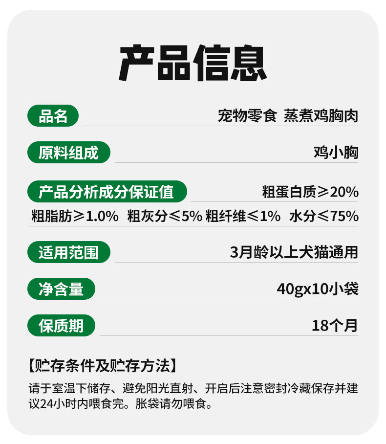 | Taste | [Try It Out] Chicken Breast 40g*10 Packs,[Stock up 50 Packs] Chicken Breast 40g*50 Packs,[Try It Out] Duck Shank/Wing Root 35g*10 Packs,[Double Flavor 20 Packs] 10 Packs of Chicken Breasts + 10 Packs of Duck Shanks,[Double Flavor 60 Packs] 30 Packs of Chicken Breasts + 30 Packs of Duck Shanks |