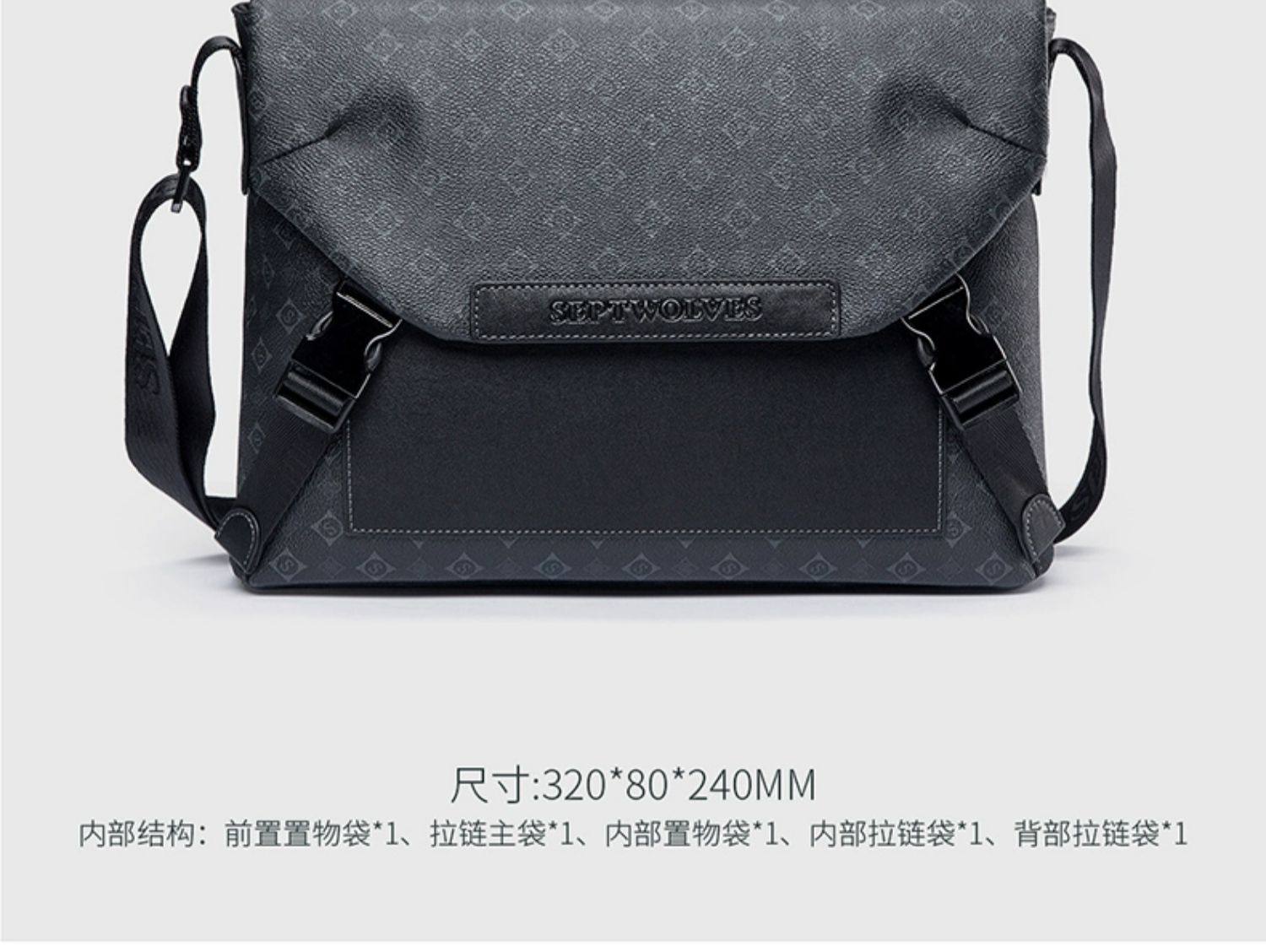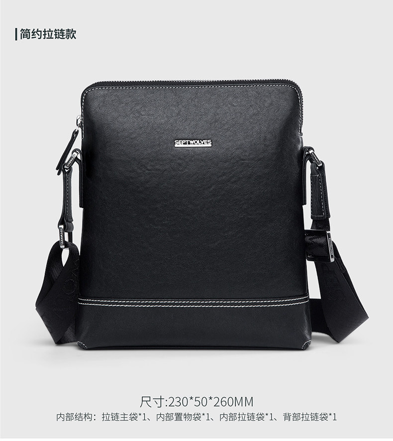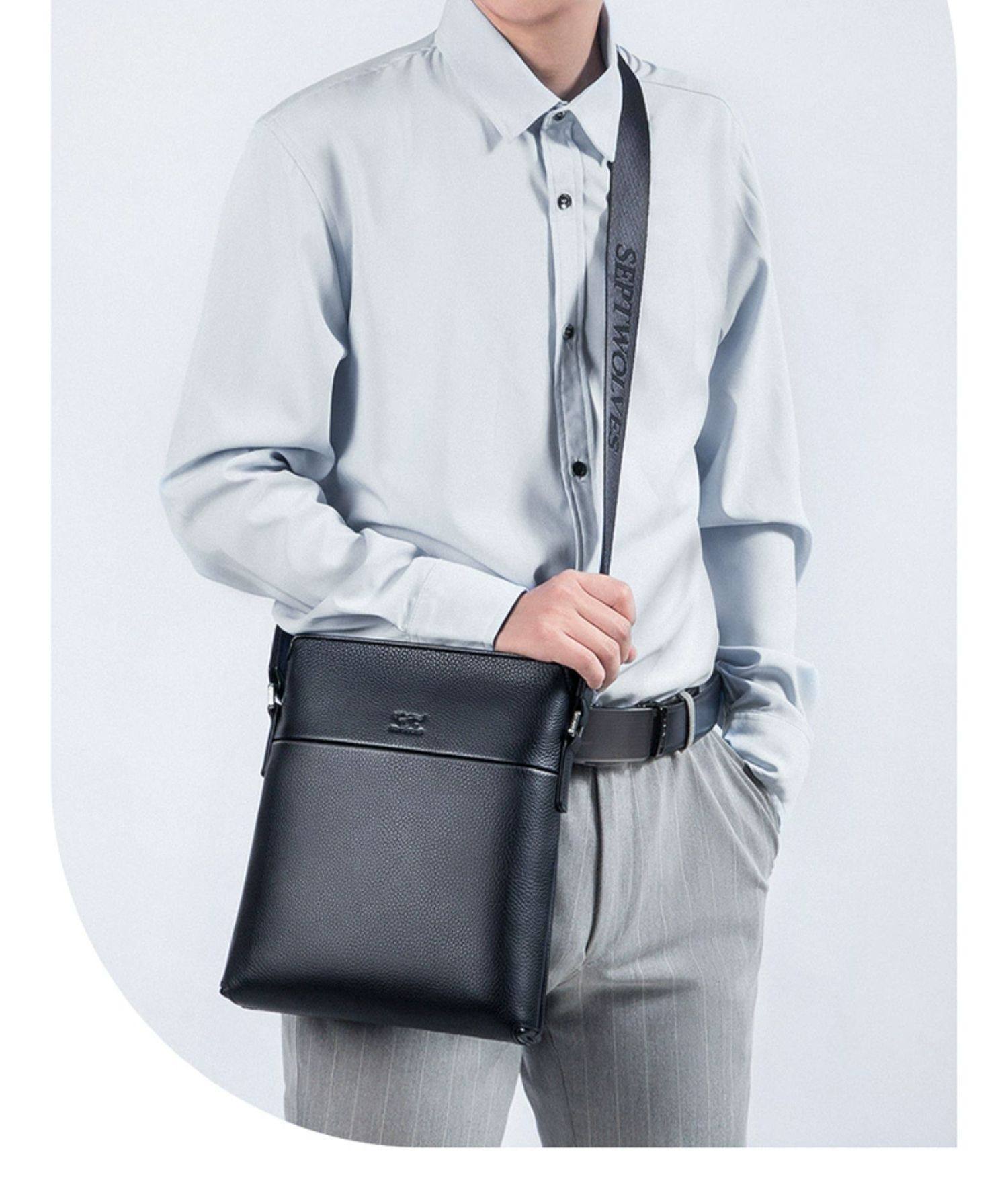 Septwolves Original Genuine Leather Men's Shoulder Crossbody Bag, Designer Niche Cowhide Casual Personalized Lychee Pattern Bag