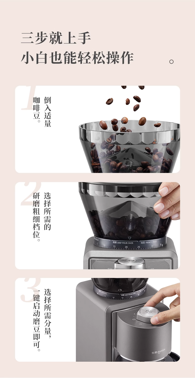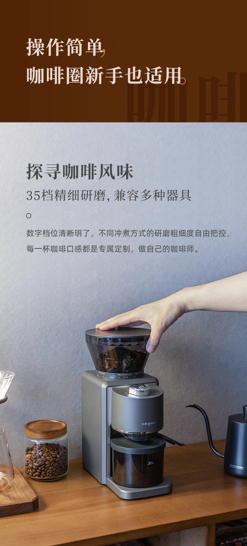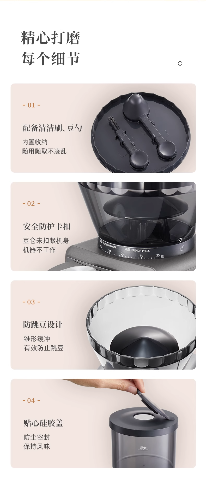 Electric Coffee Bean Grinder for Home Use, Fully Automatic Grinding Machine with Precise Conical Grinder, Powder Box + Stand, Dual-Use